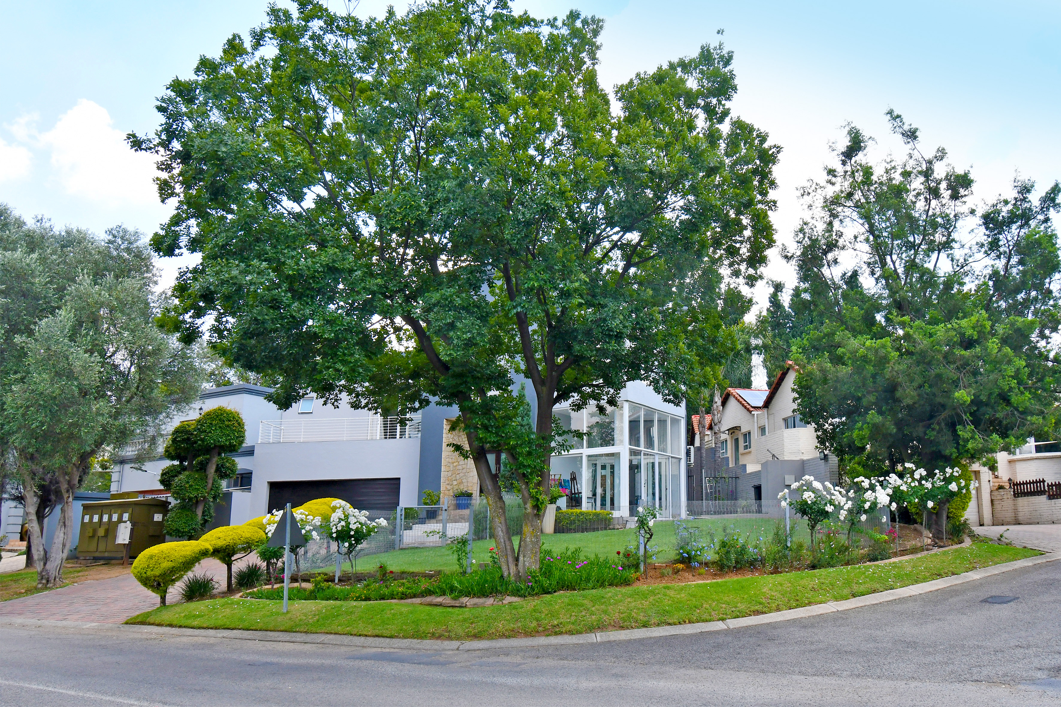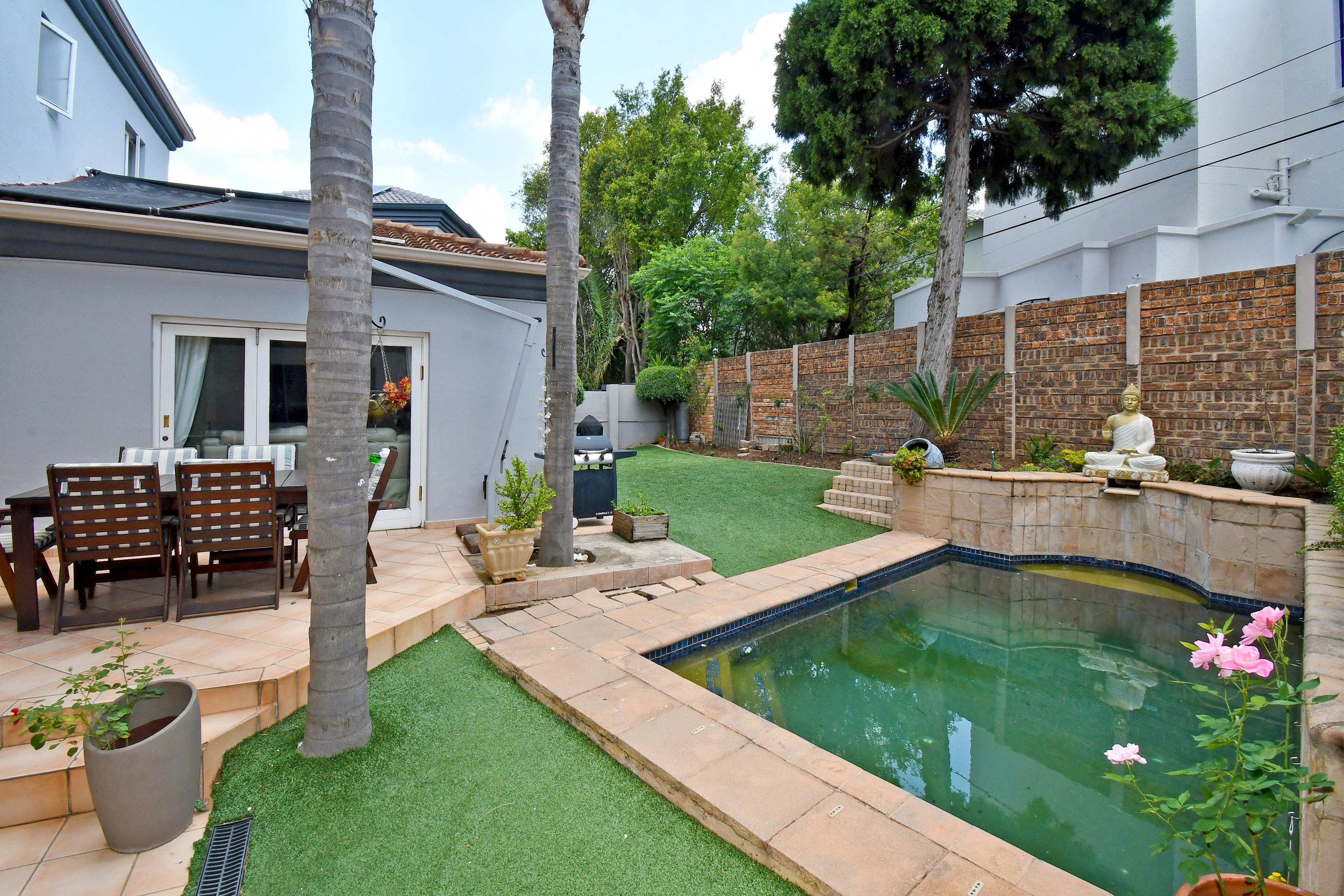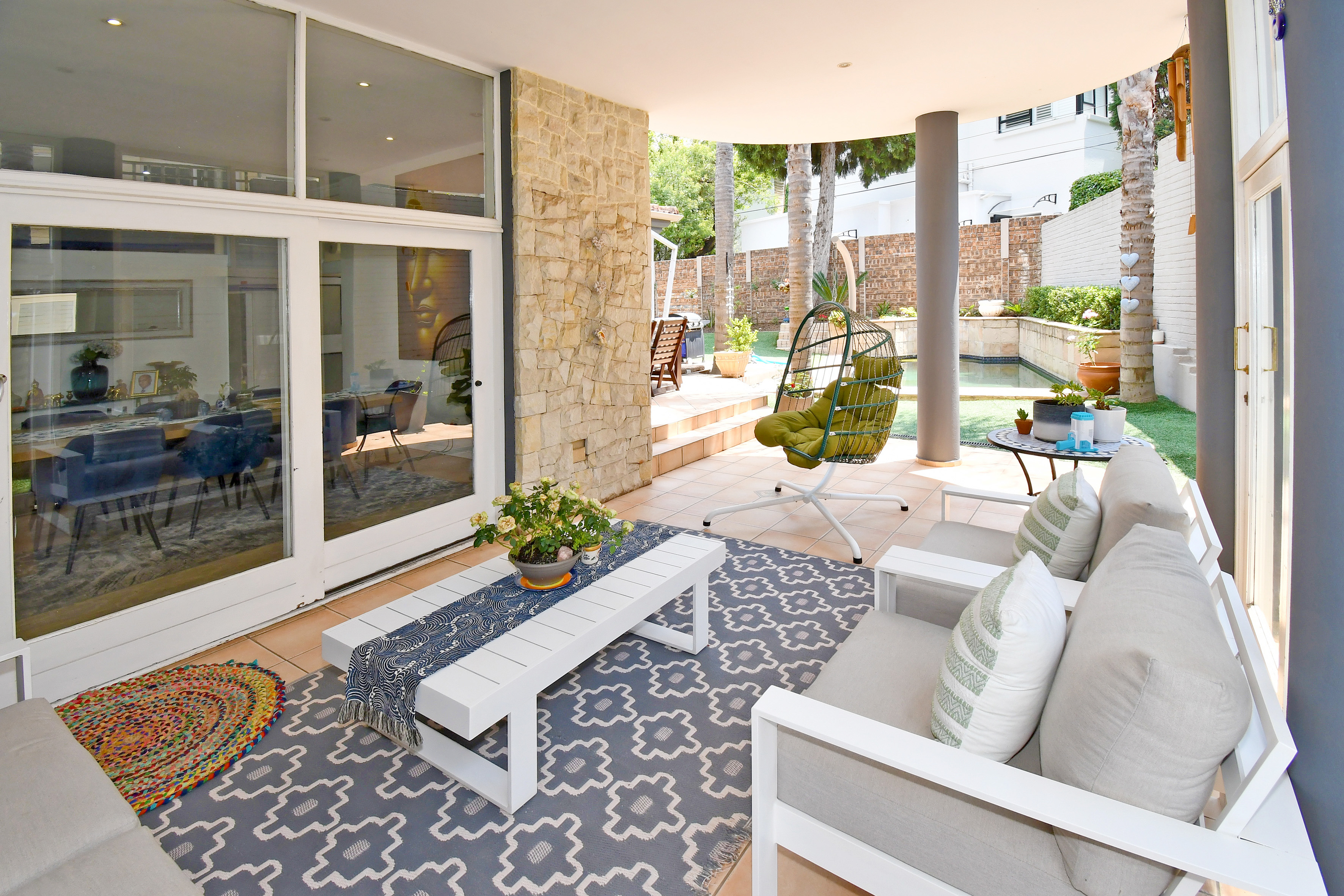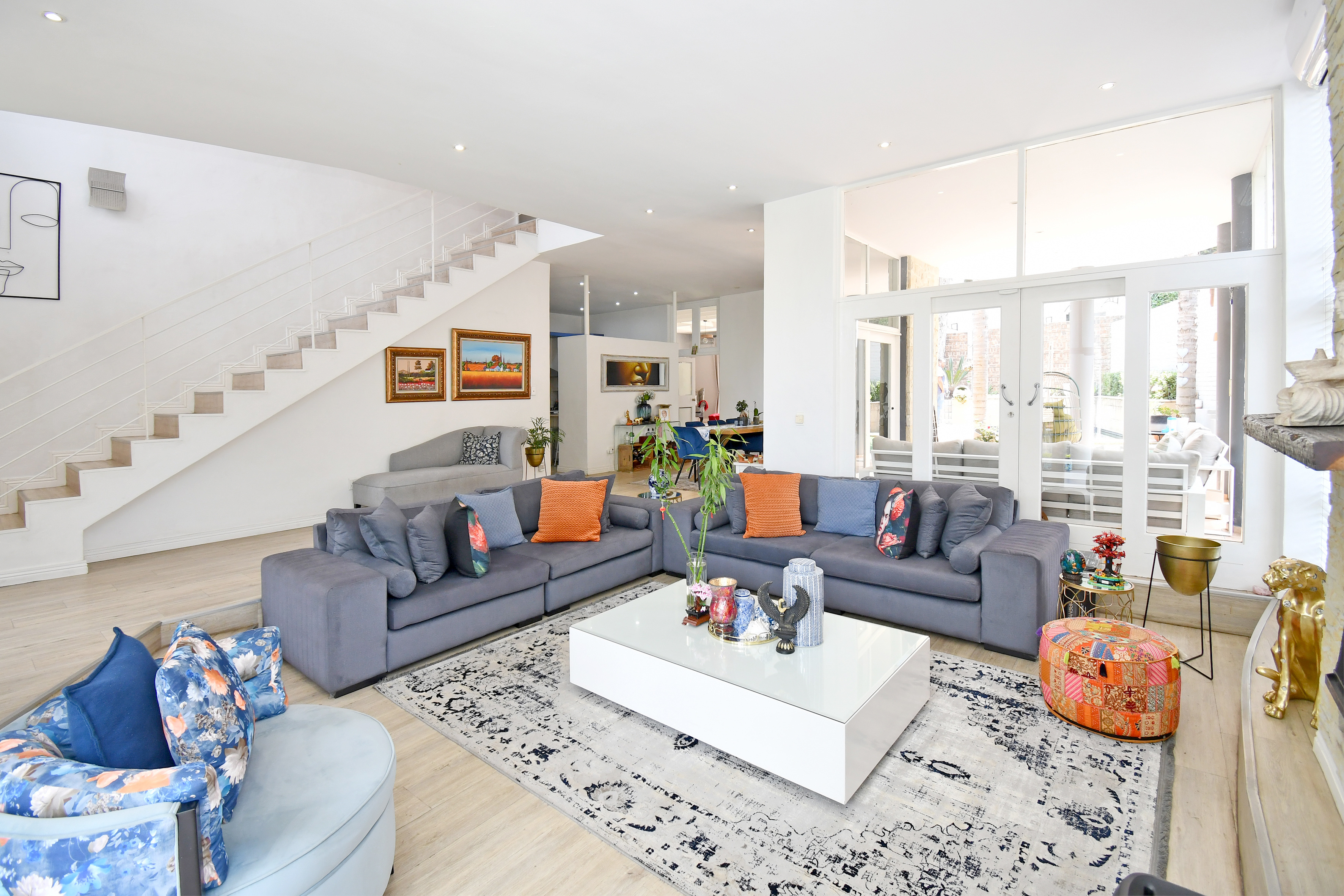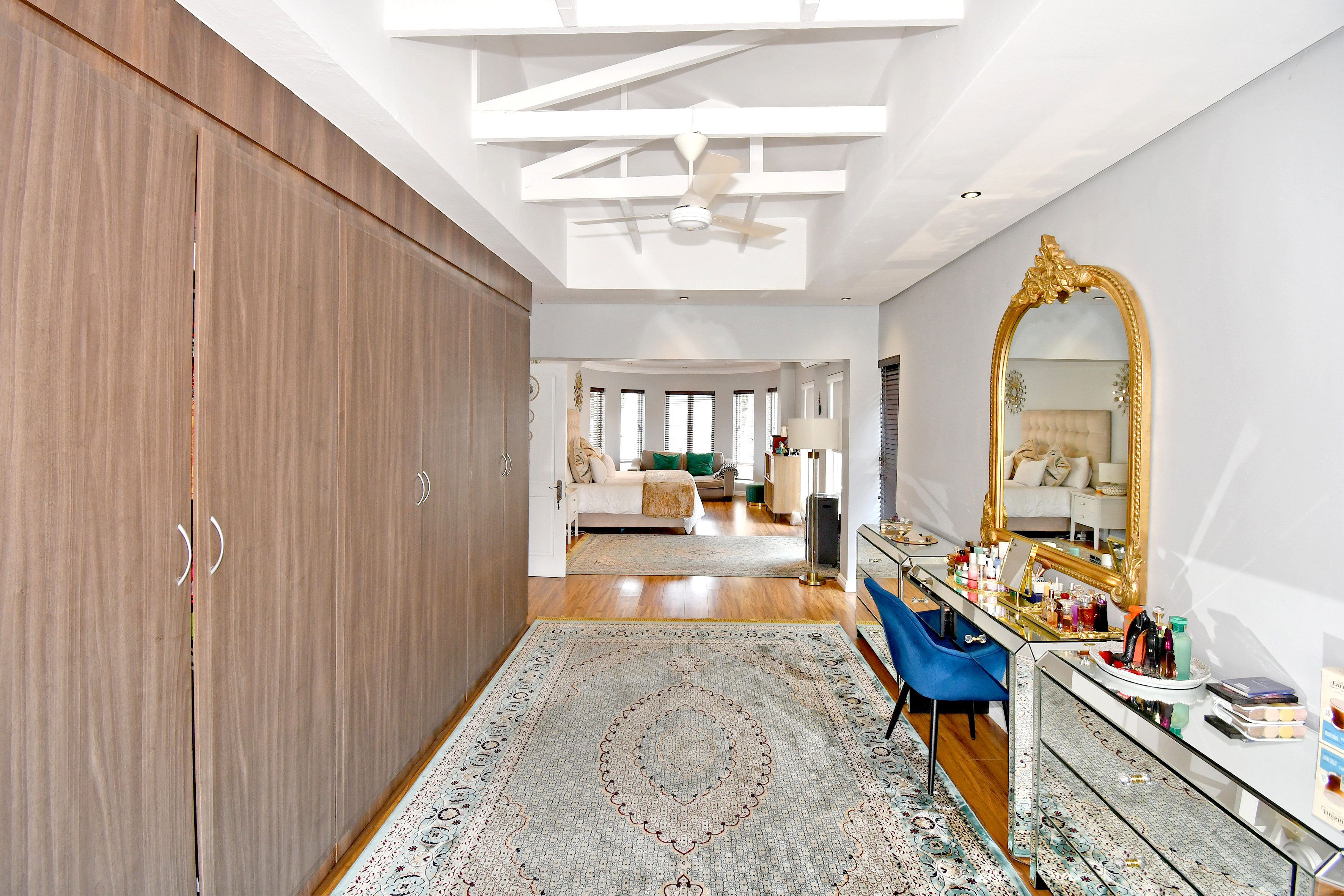 Upstairs is enveloped with light and comfort with 4 deluxe-size bedrooms and 3 bathrooms (2 en suite) as well as a third-story viewing balcony with 360-degree views of Johannesburg - sip on a cocktail while you watch the sunset! The grand master suite is complete with a large walk-in closet, dressing room, space for a private lounge and newly renovated en suite bathroom.
