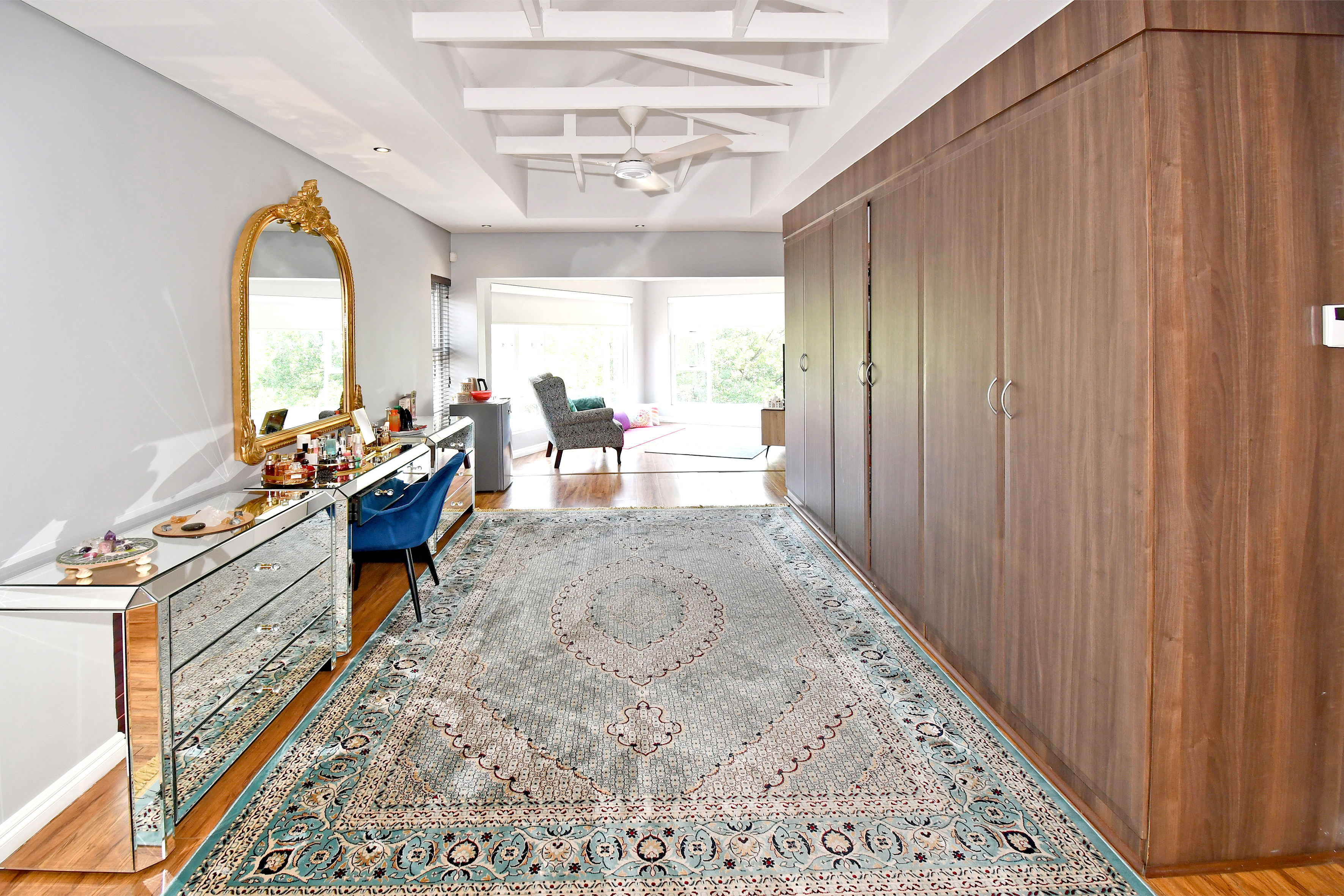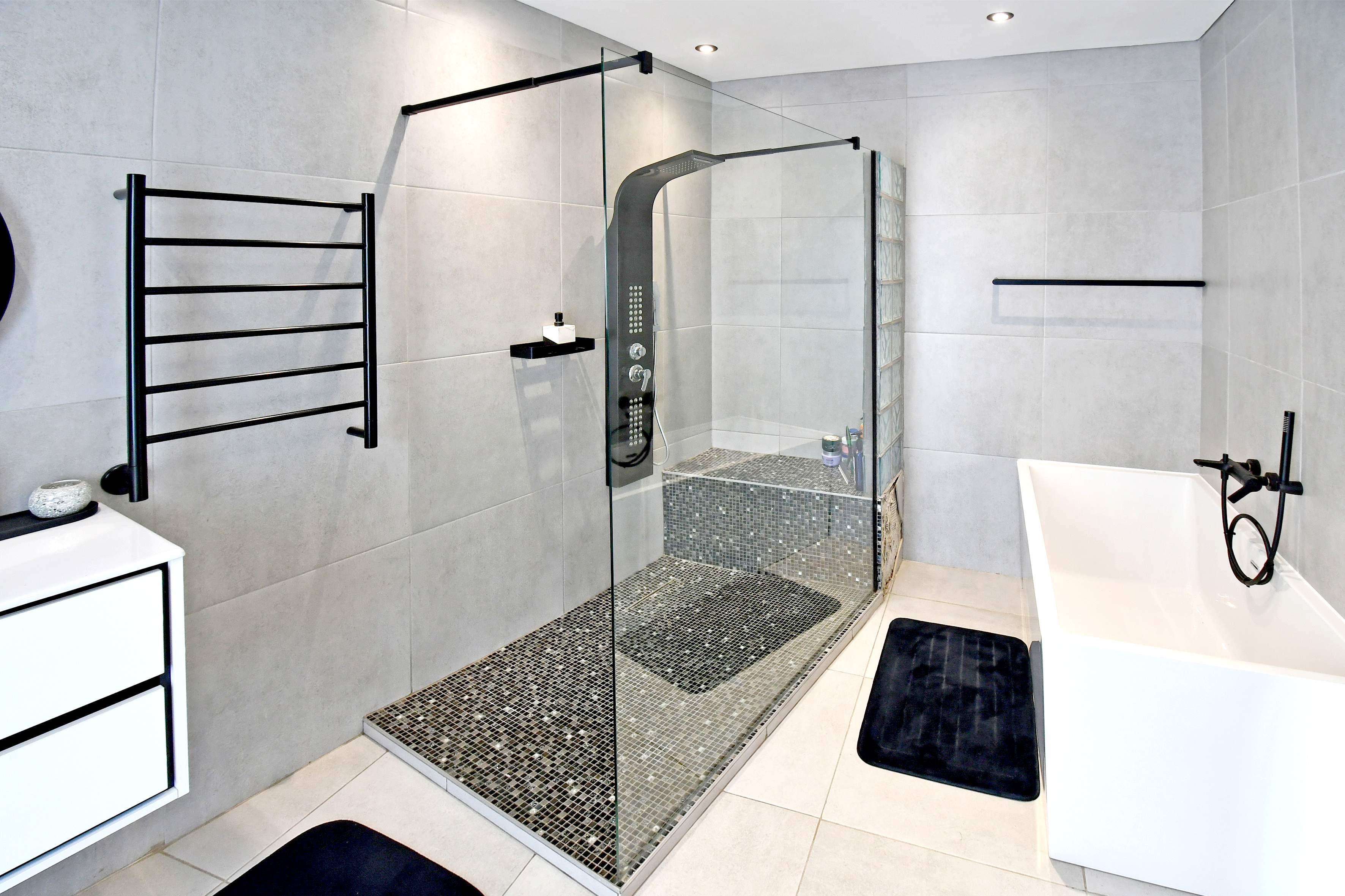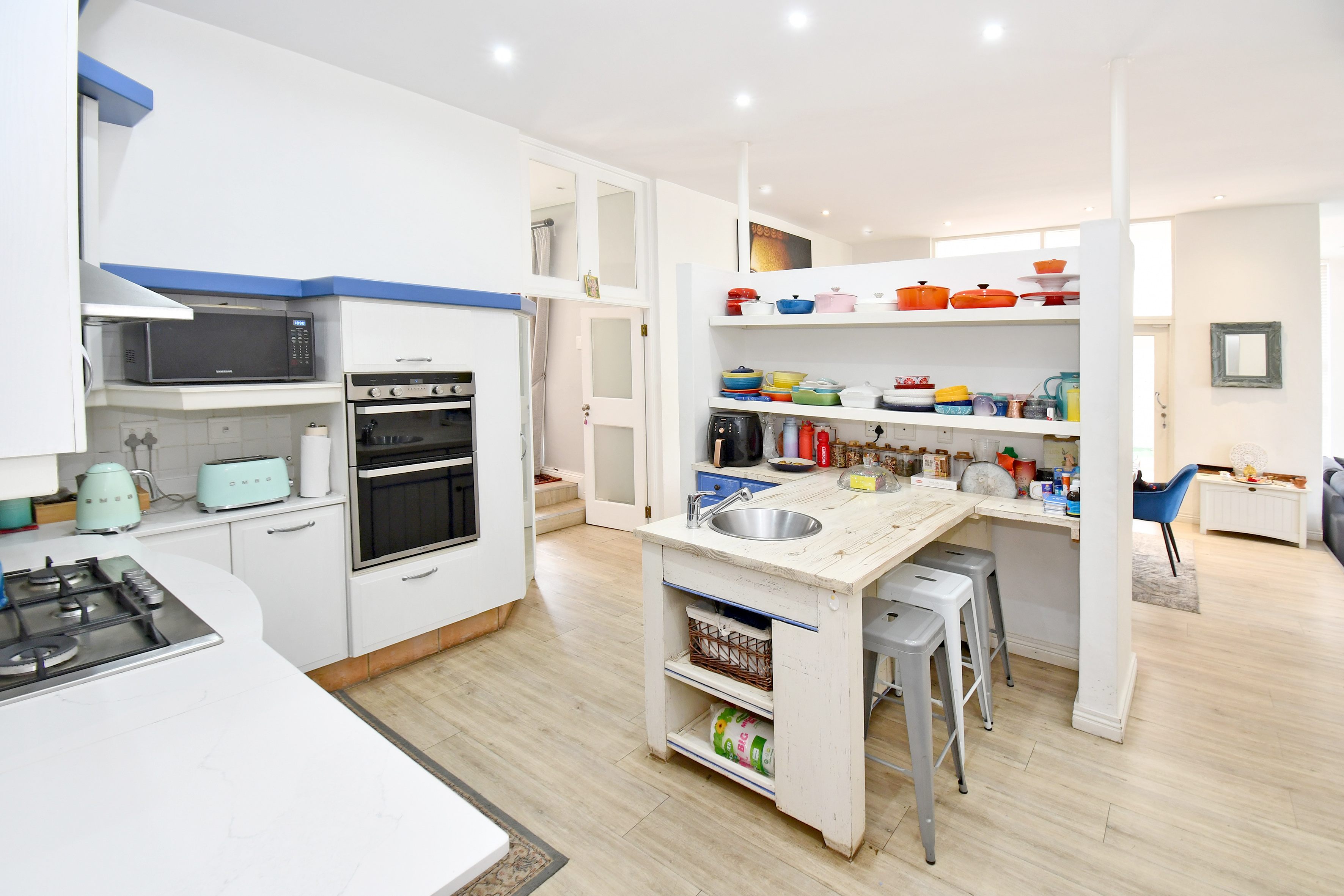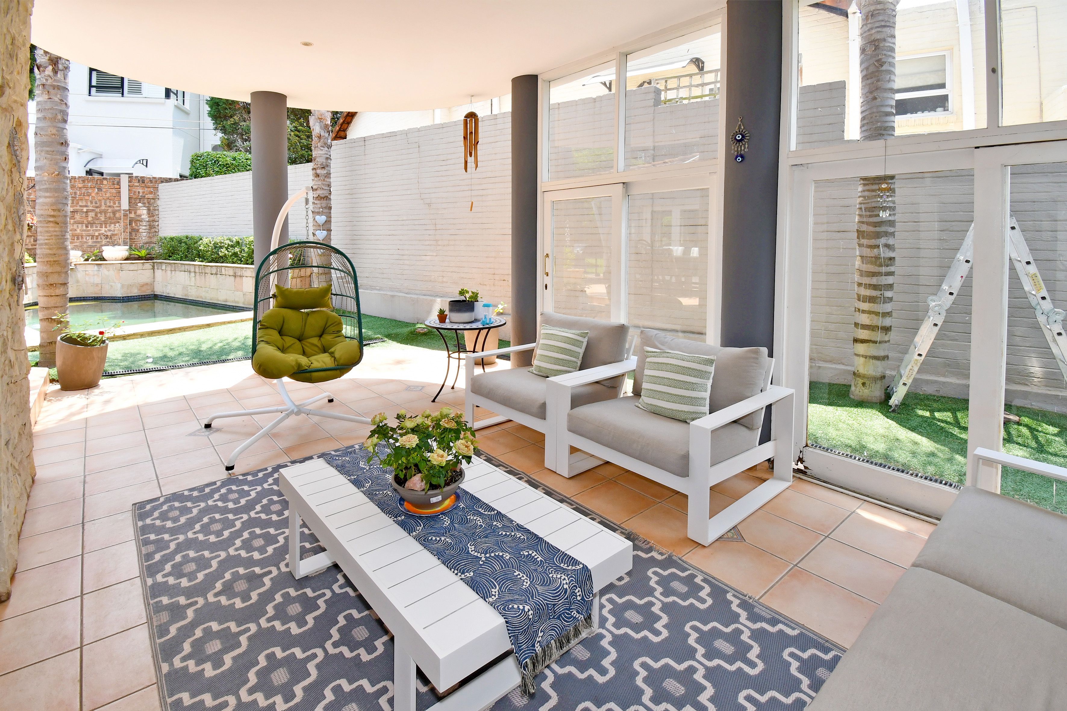 Upstairs is enveloped with light and comfort with 4 deluxe-size bedrooms and 3 bathrooms (2 en suite) as well as a third-story viewing balcony with 360-degree views of Johannesburg - sip on a cocktail while you watch the sunset! The grand master suite is complete with a large walk-in closet, dressing room, space for a private lounge and newly renovated en suite bathroom.