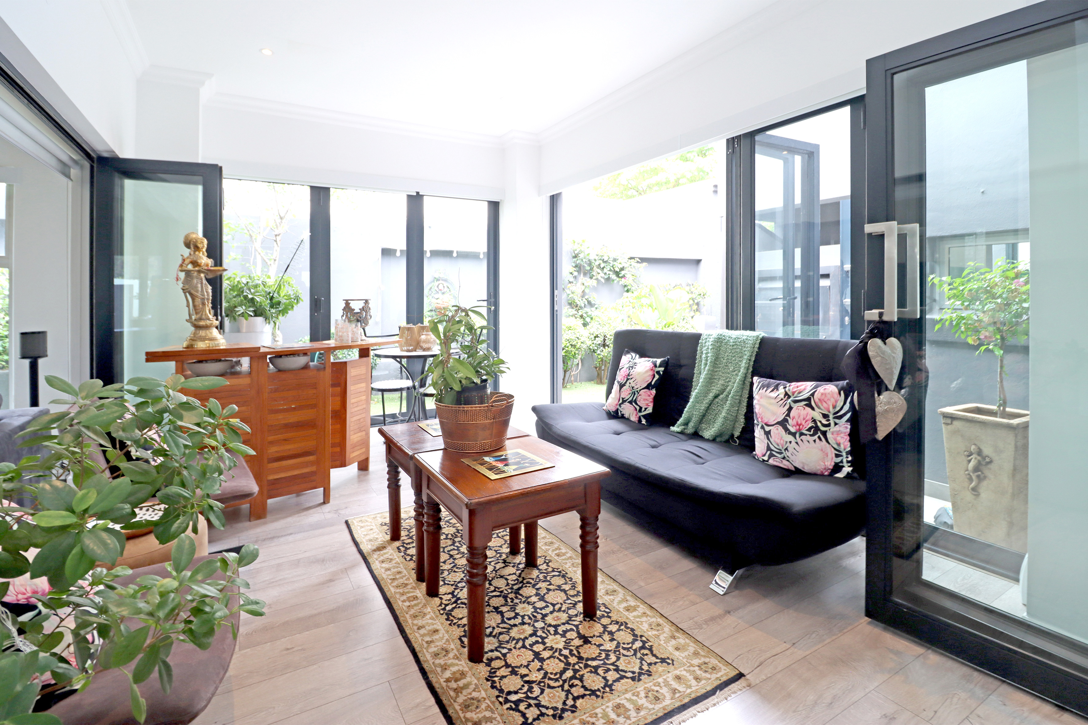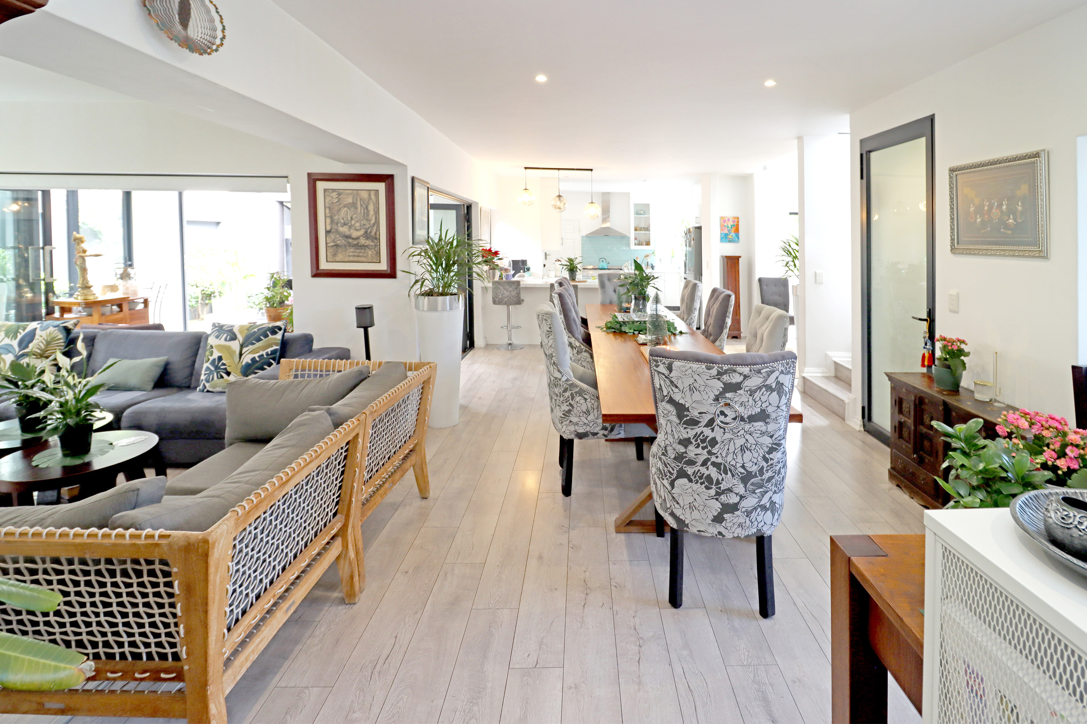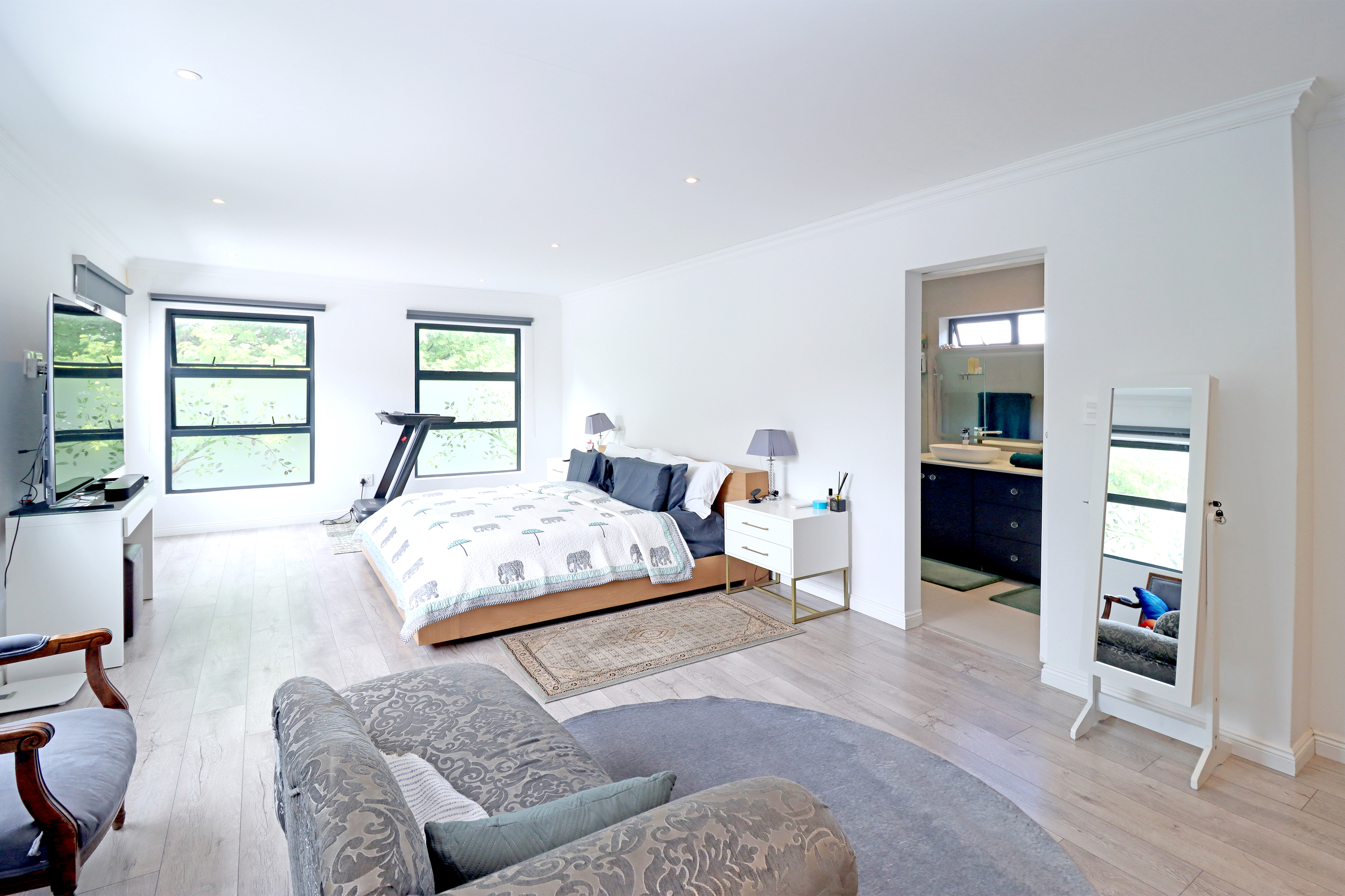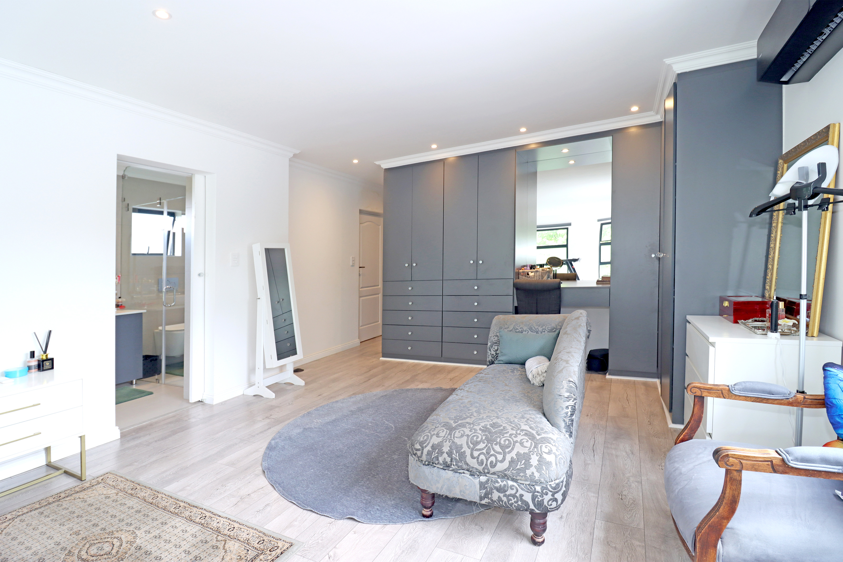 Upstairs is host to 3 bedrooms and 3 full bathrooms (2 rooms are en suite). The grand master suite is nothing short of pure luxury, all finishes from flooring, aircon to cupboards to the divine full en suite bathroom are brand new. Giving you that five star hotel feel! Off the master suite is a private study or private lounge space completing the upstairs space.