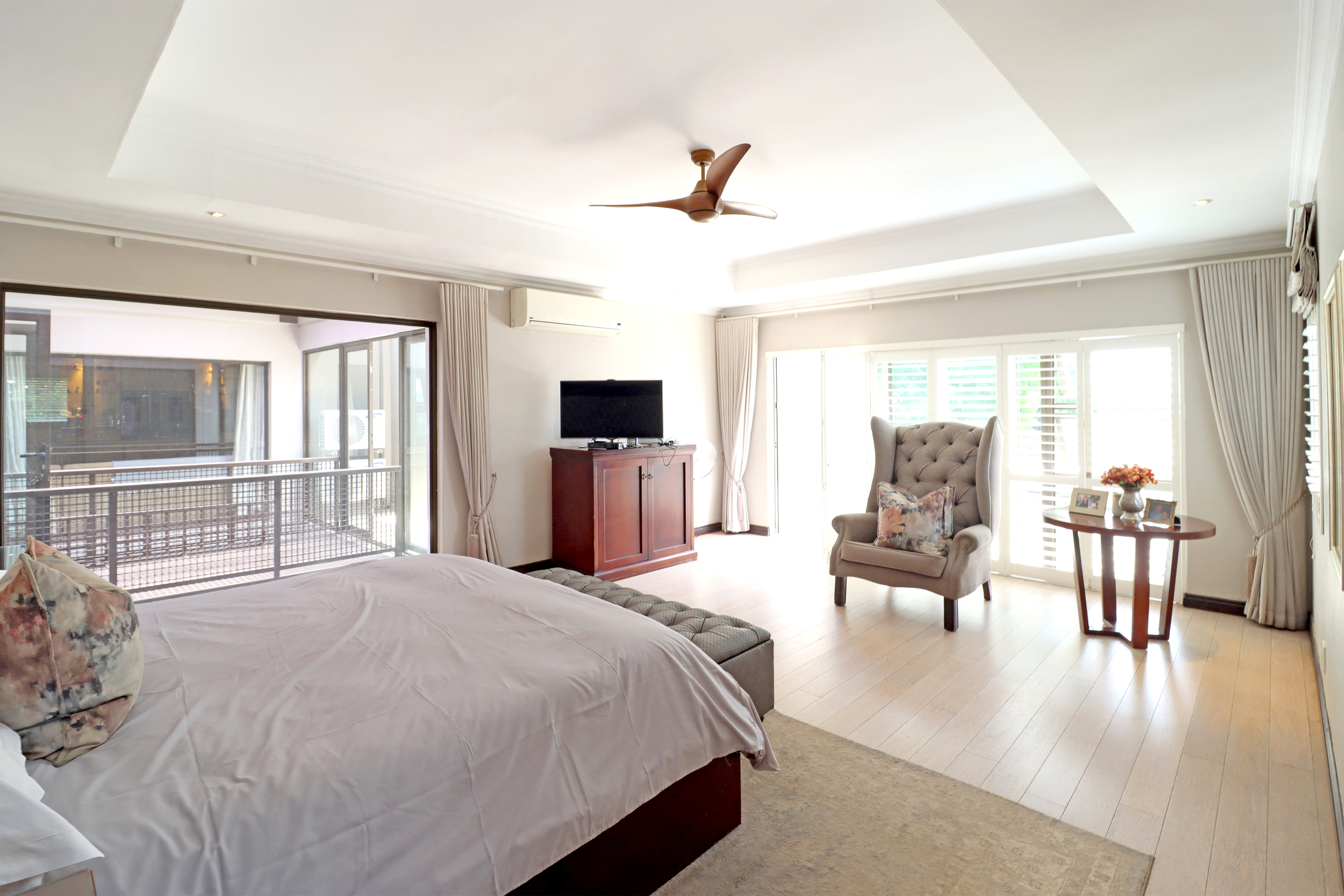 - 5 large deluxe bedrooms and 4 bathrooms (3 rooms en suite) plus a guest cloakroom. One bedroom located downstairs with outside access and an en suite bathroom - perfect spot for guests - they will never want to leave! Grand master suite is to die for with a his and hers dressing room, super-sized en suite bathroom, and a balcony overlooking views to infinity! Upstairs PJ lounge - perfect spot for the kids!