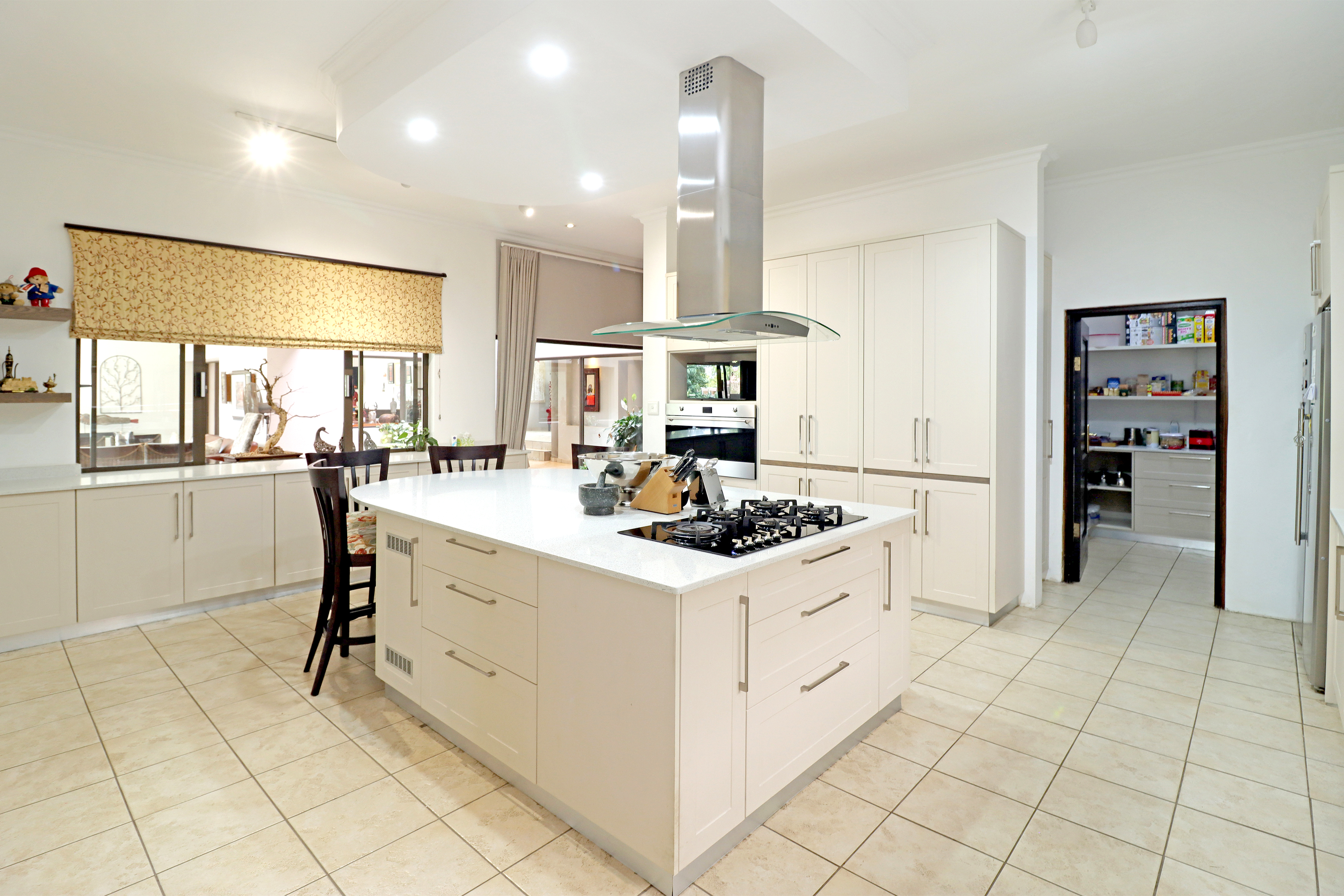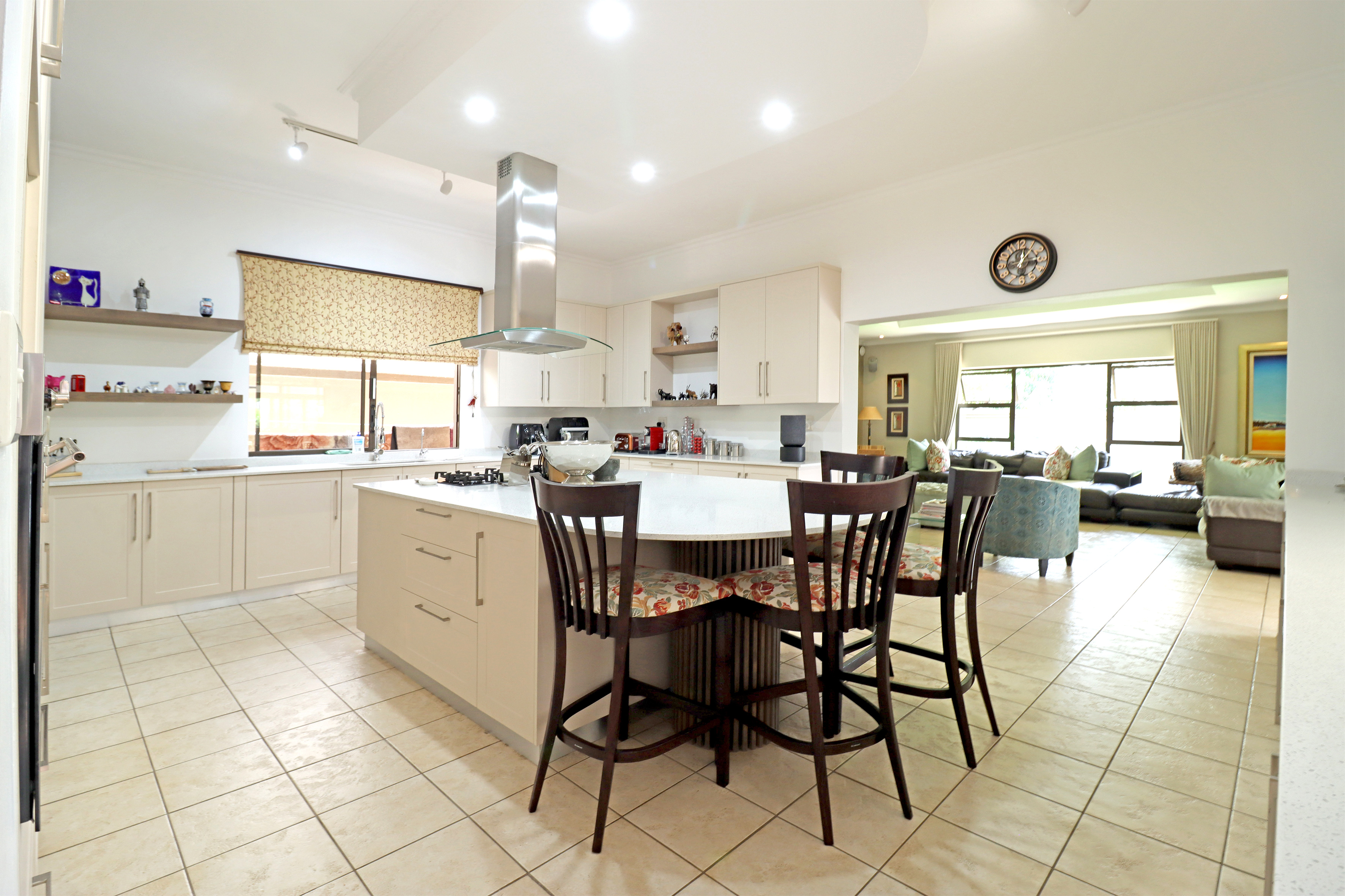 - Kitchen is totally renovated and is a culinary enthusiast's dream! A centre island and breakfast bar fills the middle of the kitchen, Smeg appliances, gas hob, large walk-in pantry, serving hatch with opening windows to the patio - entertaining can't get easier than this! Completely separate scullery. Family/tv room open plan to the kitchen and also opening directly onto the patio. Dining room with fitted wine holder and sideboard.