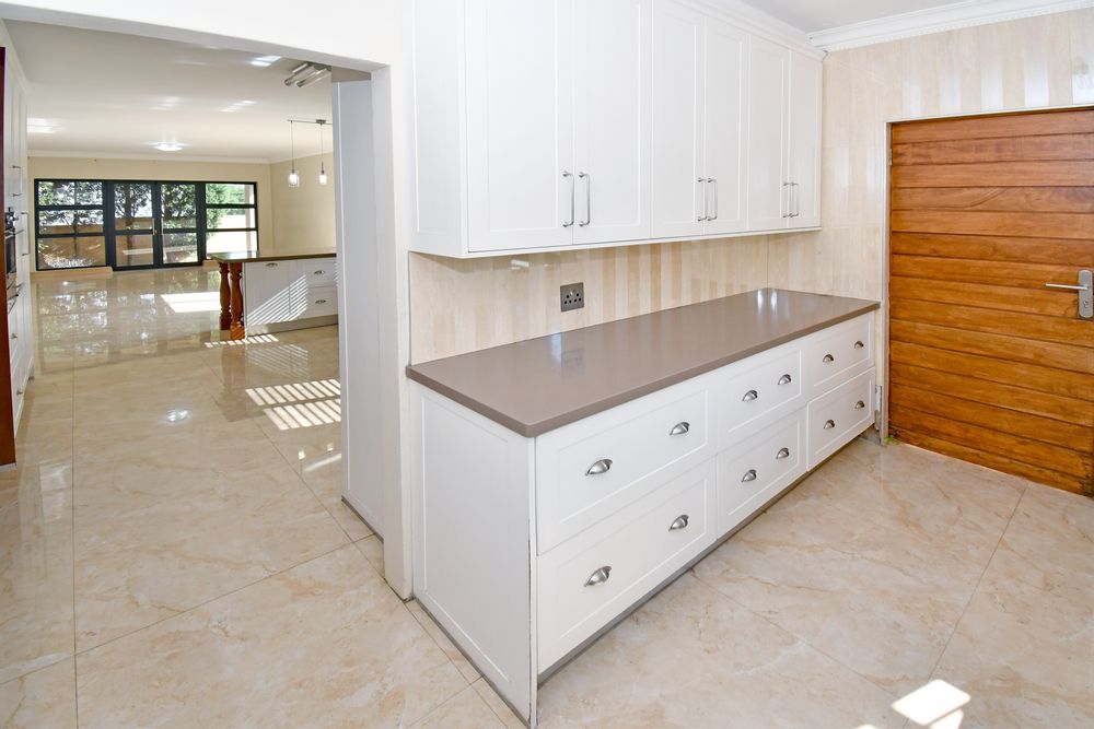 Accommodation offers semi-open plan kitchen with ample cupboard space. There is a scullery with space for two under counter appliances. Spacious lounge and dining room space with sliding door leading unto closed patio with built in braai and swimming pool area . Property offers a Pyjama lounge. All bedrooms are en-suite with built in cupboards. Property offers staff accommodation.