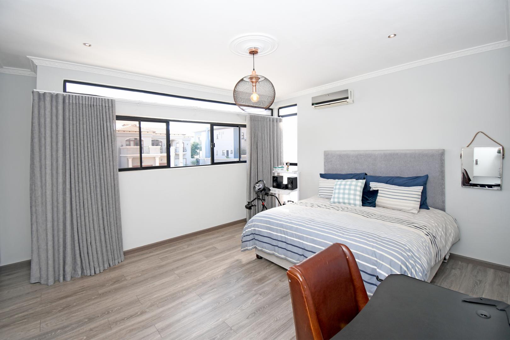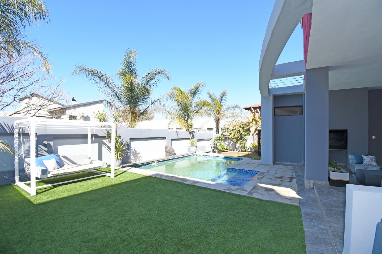 This home is a stone throw away from communal facilities, where one enjoys a variety of amenities including putt-putt, netball, tennis and basketball courts as well as a soccer pitch. Plenty braai facilities and a clubhouse at your disposal. This is the ultimate in estate living — combining contemporary design, practical family features, and luxurious touches throughout.