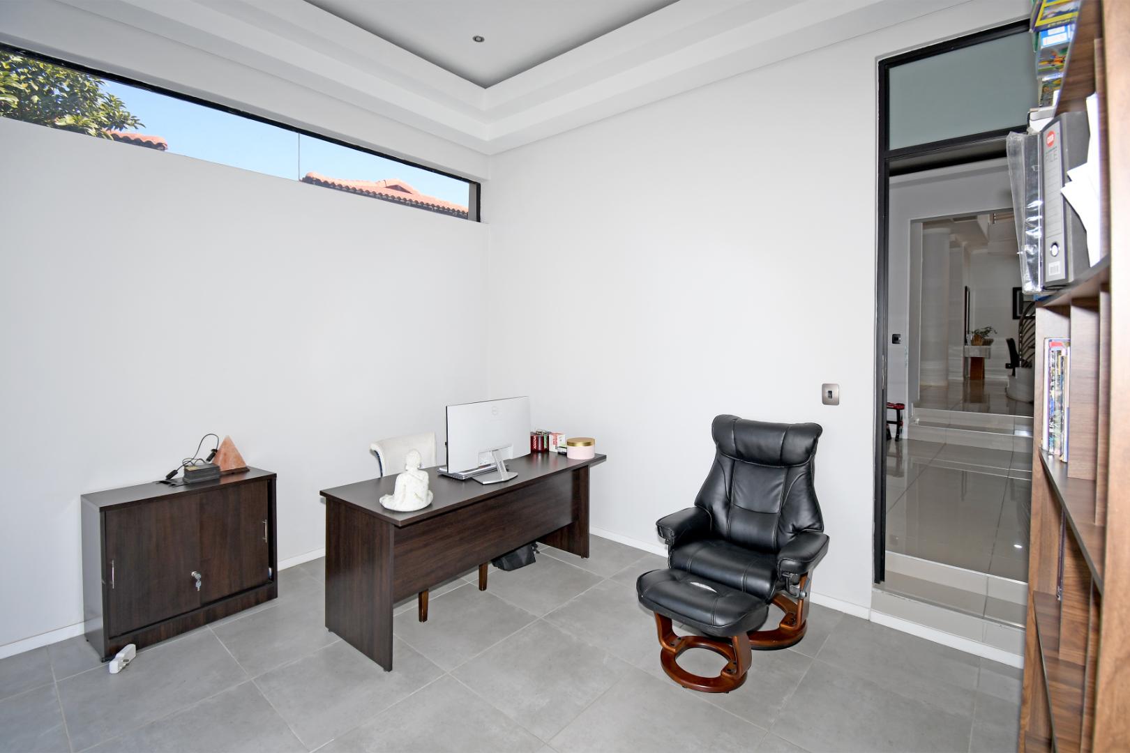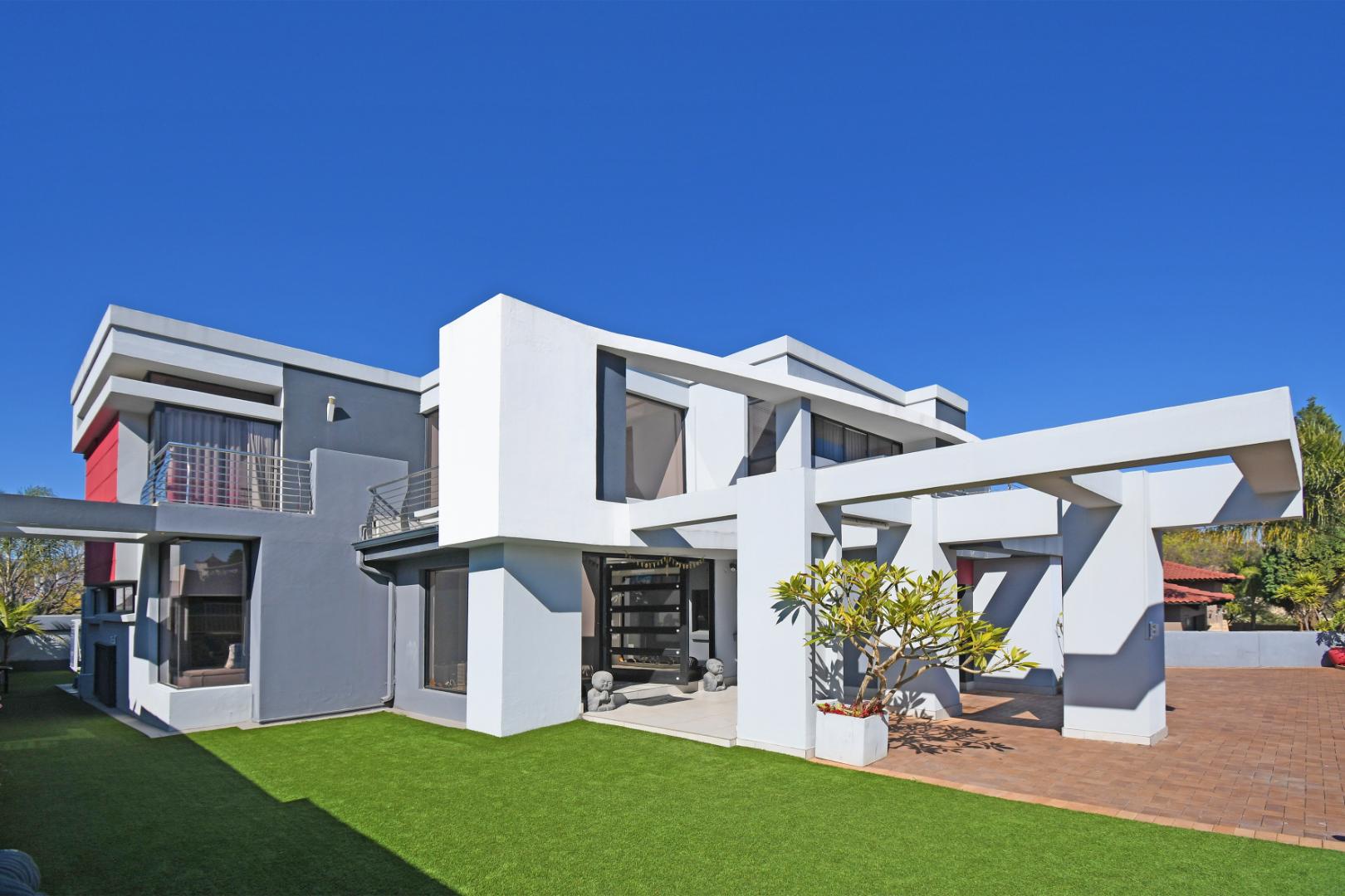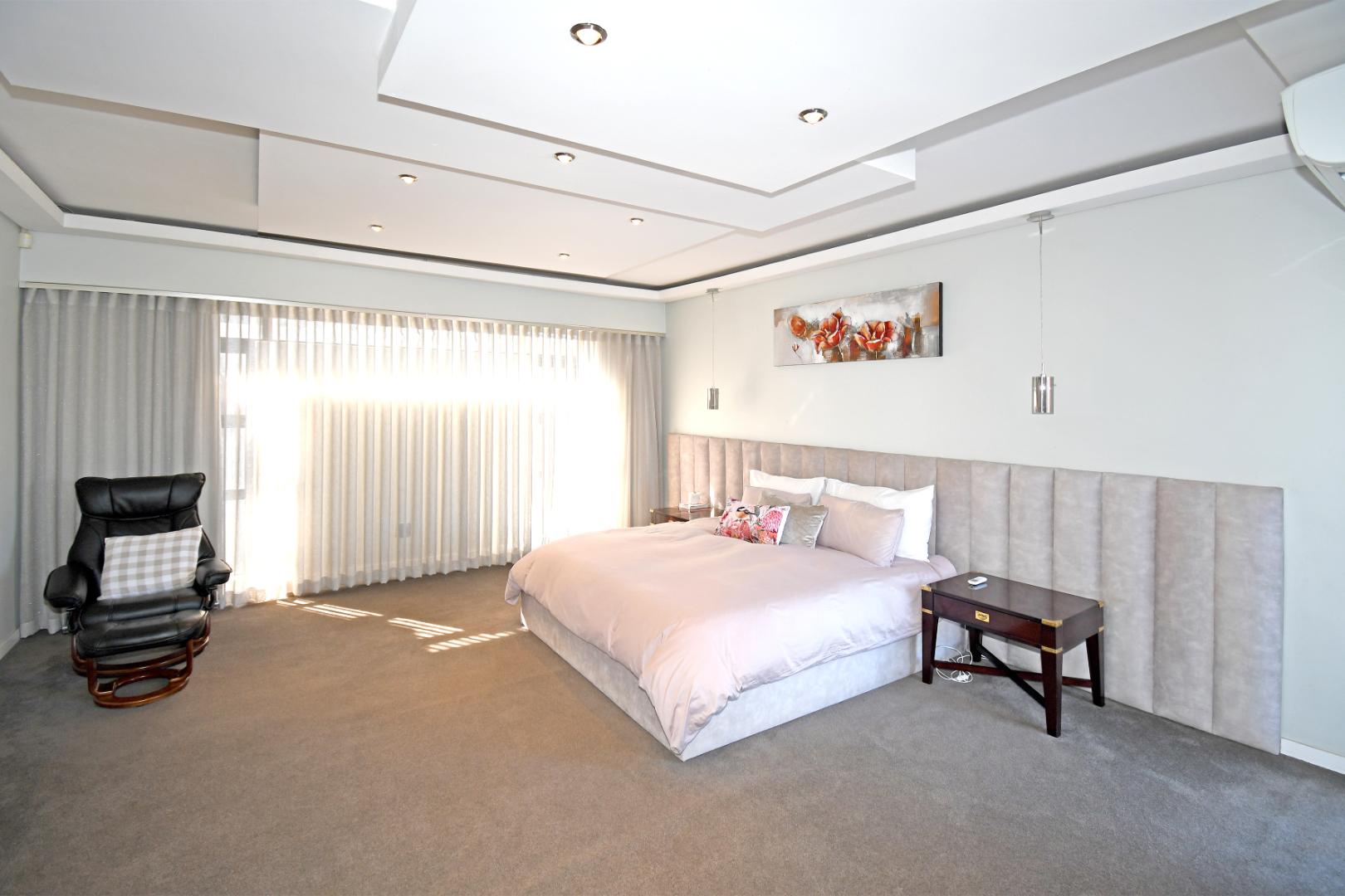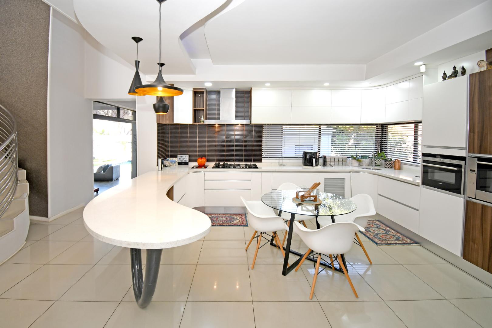 Indulge your culinary desires in the modern open-plan kitchen, complete with a top-of-the-line imported kitchen with Blum fittings, Siemens appliances, including a built-in oven, microwave, and electric and gas hob, seamlessly connected to a pantry and scullery with space for 3 under-counter appliances. Entertain effortlessly in the elegant dining and lounge areas, overlooking a statement patio and sparkling pool. Downstairs includes a versatile playroom, a guest suite or study, a striking bathroom with a glass ceiling, and staff accommodation.