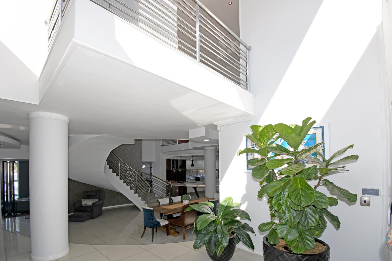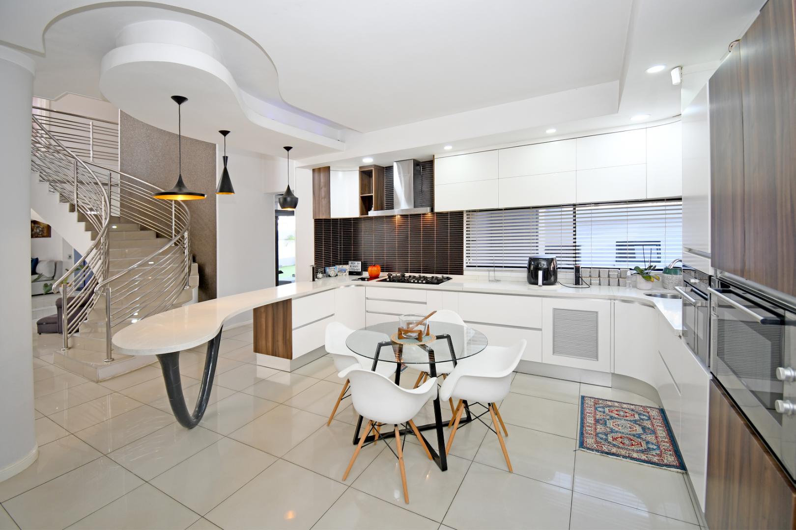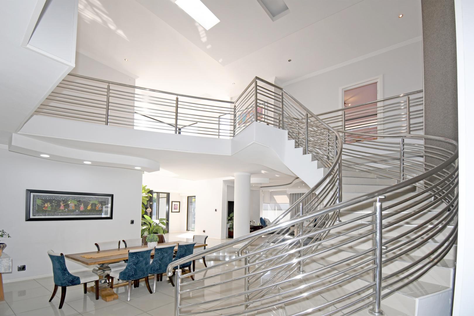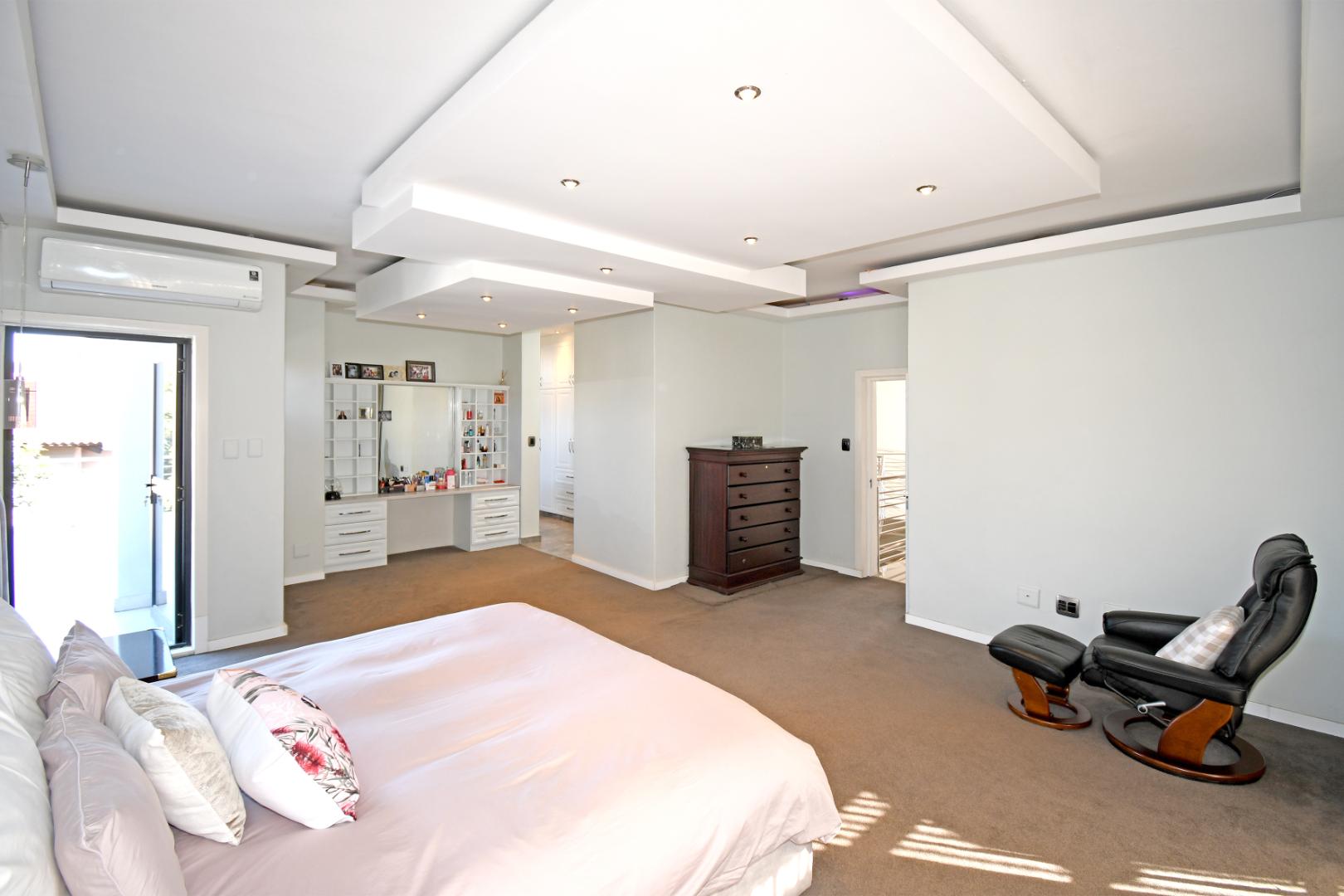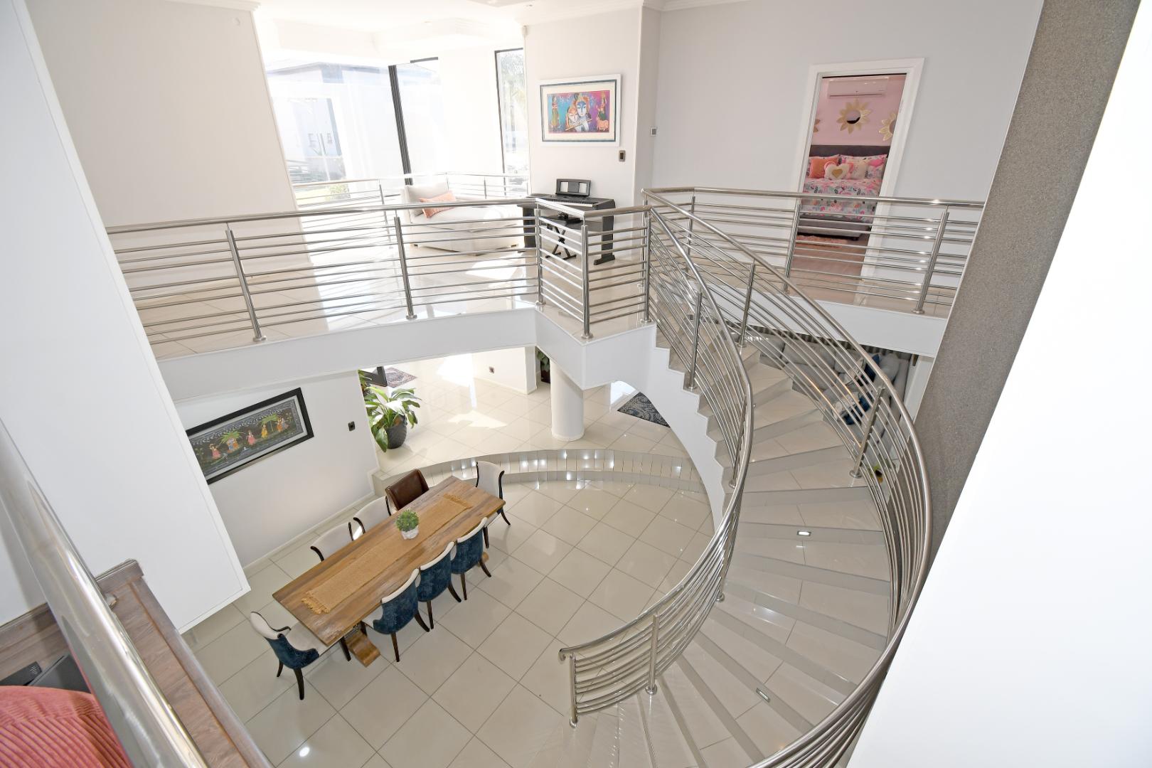 Indulge your culinary desires in the modern open-plan kitchen, complete with a top-of-the-line imported kitchen with Blum fittings, Siemens appliances, including a built-in oven, microwave, and electric and gas hob, seamlessly connected to a pantry and scullery with space for 3 under-counter appliances. Entertain effortlessly in the elegant dining and lounge areas, overlooking a statement patio and sparkling pool. Downstairs includes a versatile playroom, a guest suite or study, a striking bathroom with a glass ceiling, and staff accommodation.