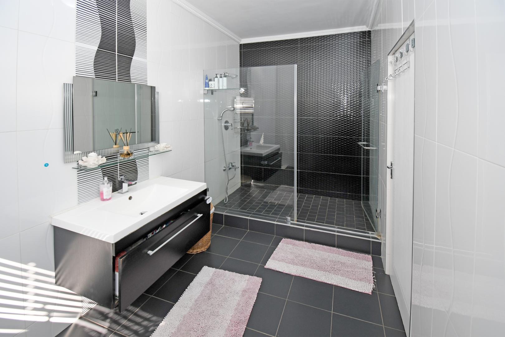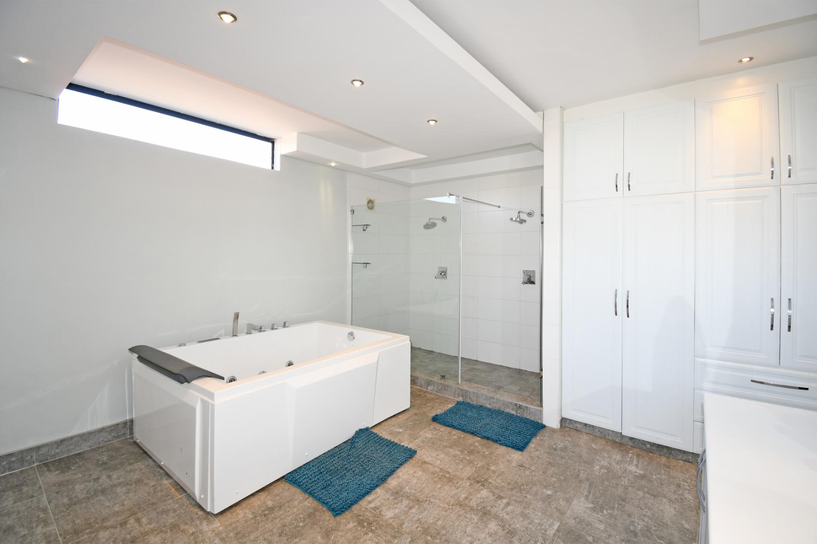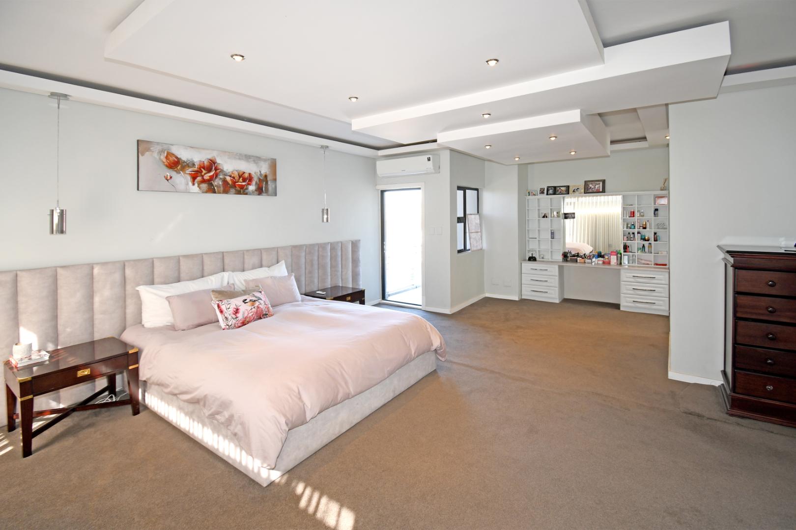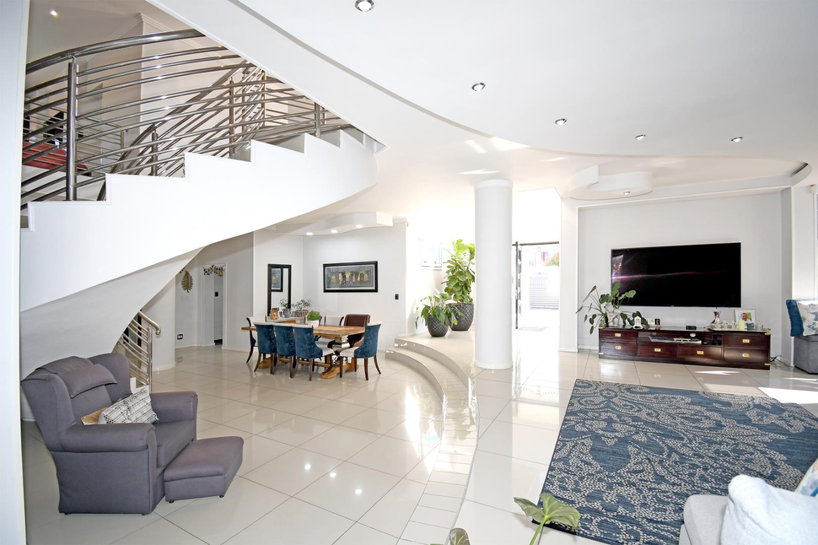 Indulge your culinary desires in the modern open-plan kitchen, complete with a top-of-the-line imported kitchen with Blum fittings, Siemens appliances, including a built-in oven, microwave, and electric and gas hob, seamlessly connected to a pantry and scullery with space for 3 under-counter appliances. Entertain effortlessly in the elegant dining and lounge areas, overlooking a statement patio and sparkling pool. Downstairs includes a versatile playroom, a guest suite or study, a striking bathroom with a glass ceiling, and staff accommodation.