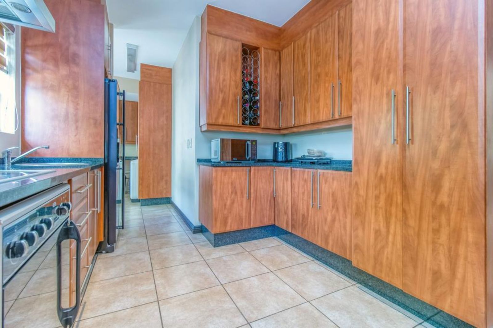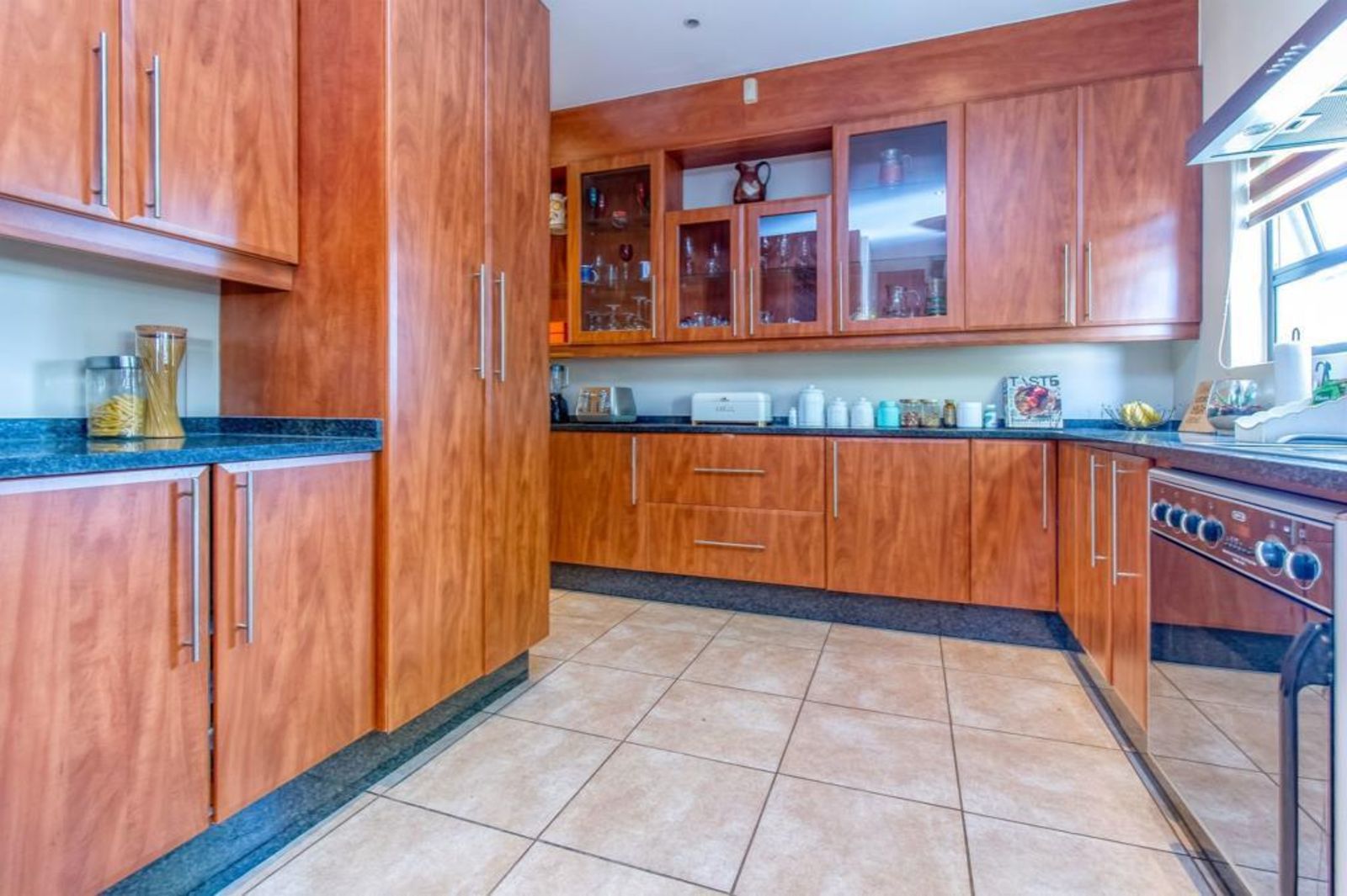 The lower level features three generous living areas, a state of the art kitchen with a separate scullery, and a guest bathroom. The living areas flow seamlessly onto a covered patio with a built in braai, ideal for entertaining.