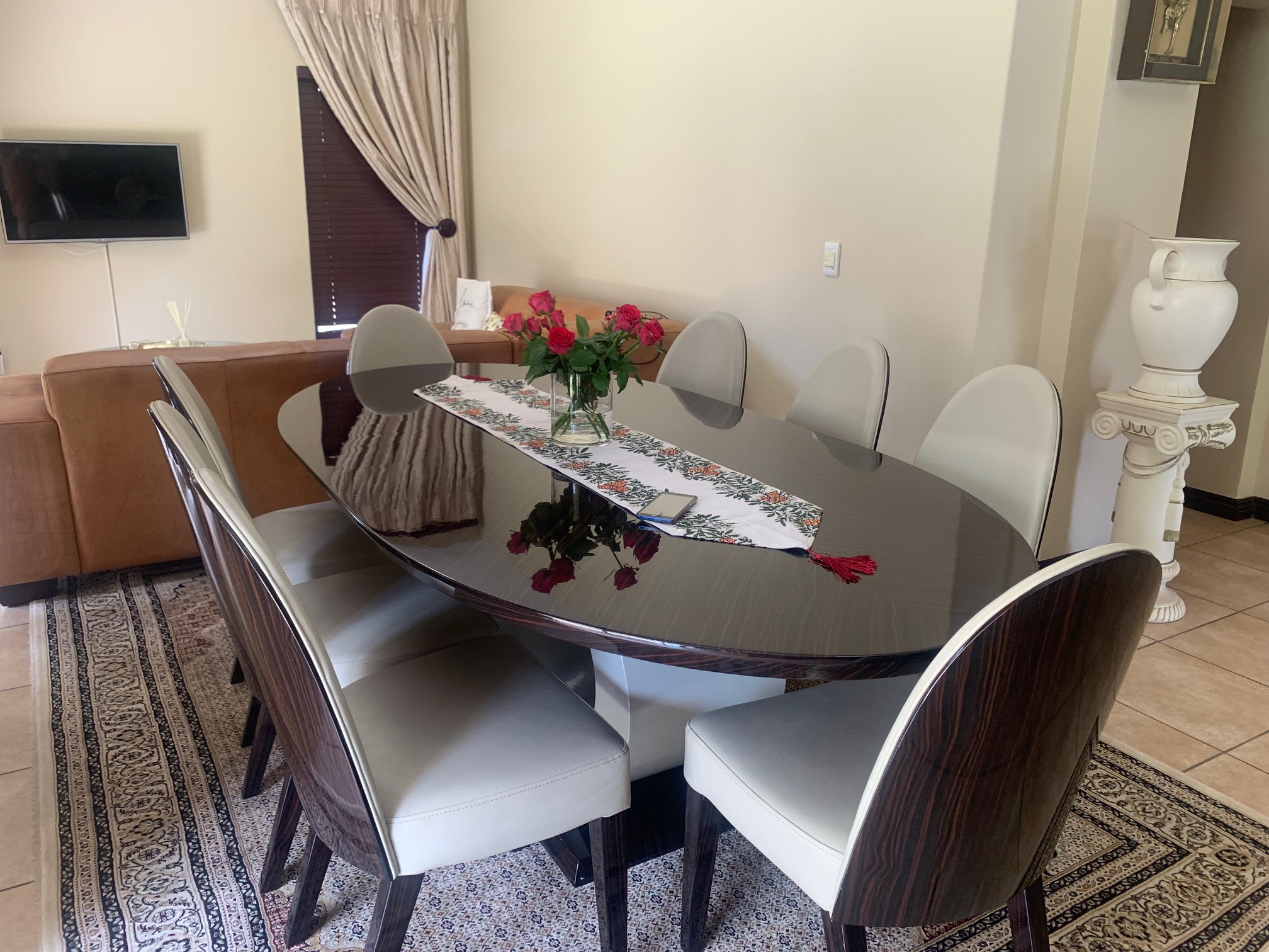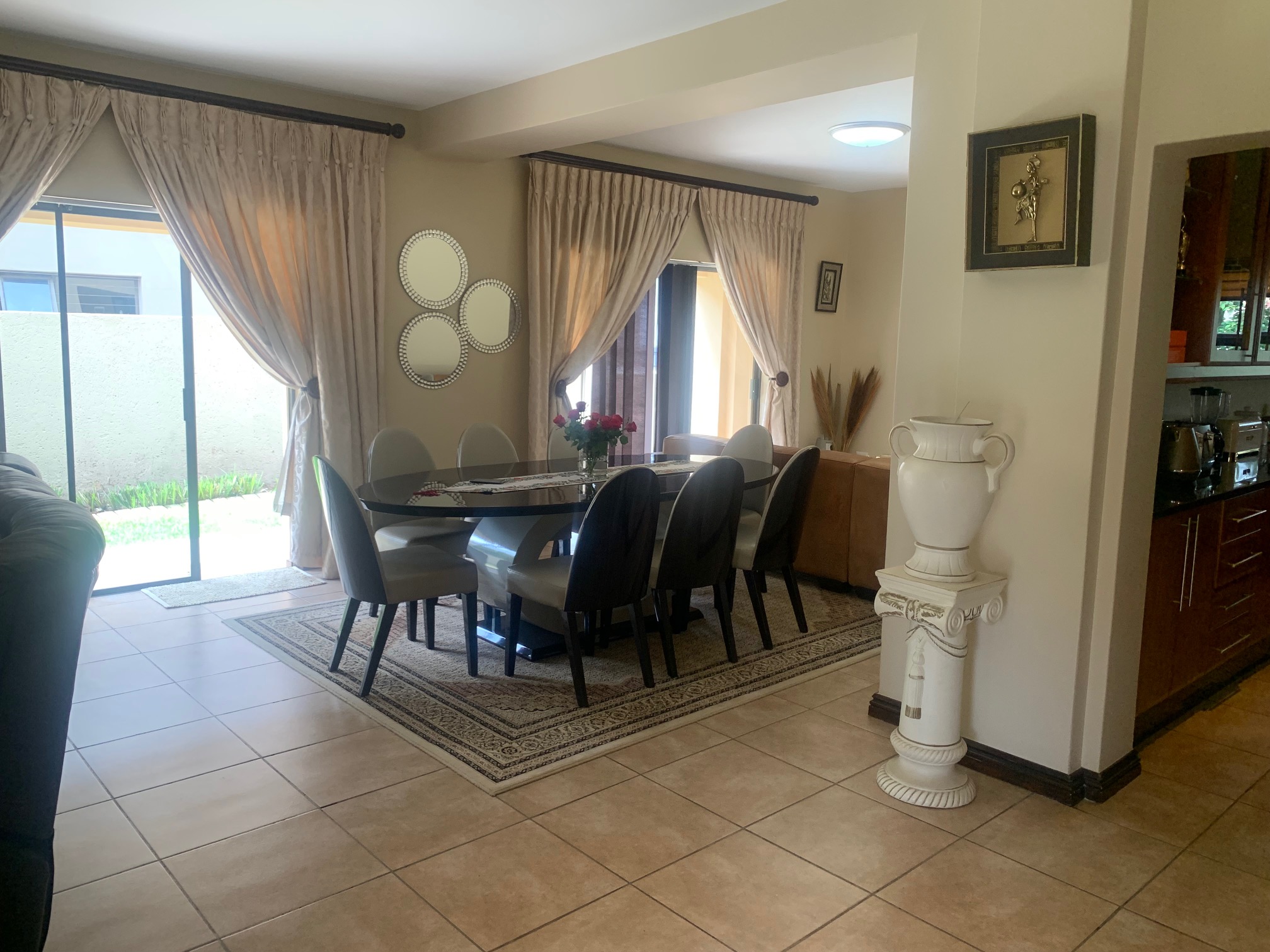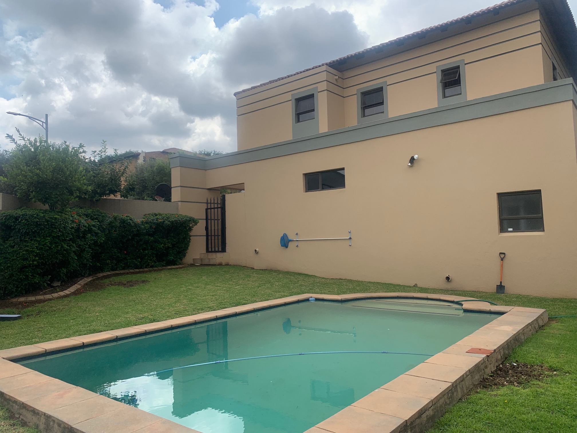A Contemporary Haven of Luxury and Elegance (Fully Furnished) Nestled within the prestigious Kyalami Glen Estate, this exquisite double-storey residence is a masterpiece of modern design, seamlessly blending style and functionality. Crafted for those who appreciate fine living and effortless entertaining, every space within this home is designed to inspire. Step through the grand entrance and into an expansive open-plan living area, where natural light cascades through generous windows, illuminating the sophisticated lounge, dining, and TV areas. The seamless flow creates a sense of warmth and openness, perfect for both relaxed evenings and grand gatherings. At the heart of the home lies the gourmet kitchen—an entertainer’s delight—boasting sleek cabinetry, ample counter space, and a separate scullery with provisions for all appliances. Ascending the staircase, you’ll discover four beautifully appointed bedrooms, each a private sanctuary of comfort. The primary suite is a retreat unto itself, featuring a spacious dressing room, a luxuriously designed en-suite bathroom with both tub and shower, and direct access to a private balcony. Two additional bedrooms, equally striking, share balcony access, while a further two bathrooms cater to family and guests with ease. Outdoors, a lush landscaped garden envelops the sparkling pool, creating a tranquil setting for al fresco evenings under the stars. Additional features include an automated double garage with space for extra parking, as well as access to the estate’s 24-hour security, ensuring both privacy and peace of mind. Ideally located with easy access to Waterfall, Sunninghill, Mall of Africa, and Sandton, as well as top-tier schools and major transport routes, this home is a rare gem in a sought-after address. Schedule your private viewing today and experience unparalleled elegance.