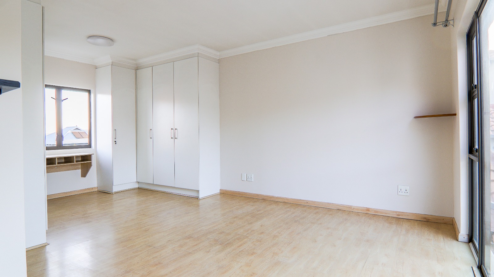 Upstairs features four beautifully finished bedrooms, all with laminated flooring, built-in cupboards, and fitted work desks.