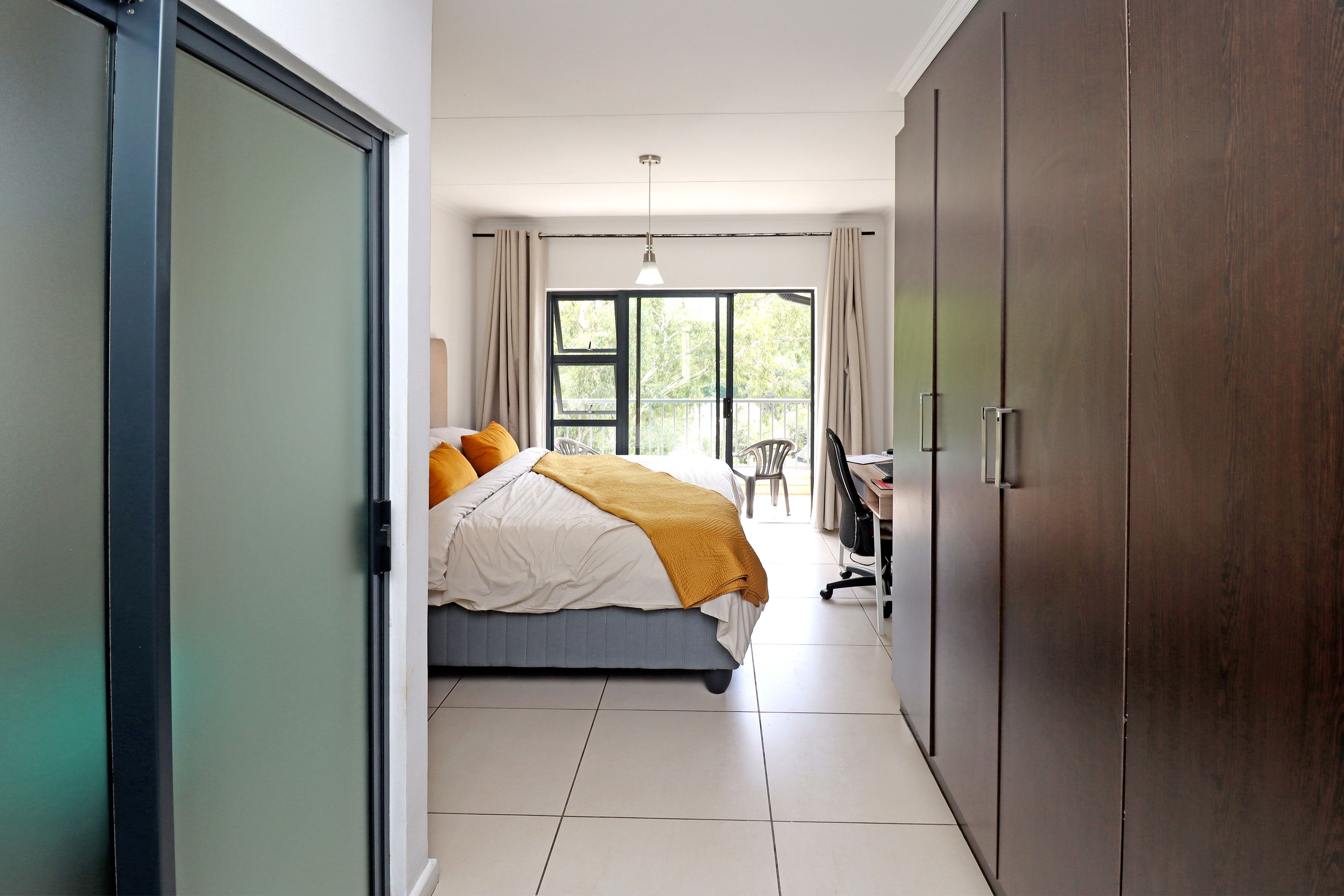 The open-plan living area flows seamlessly onto a private balcony, perfect for enjoying scenic views. Both bedrooms are generously sized with built-in storage, while the sleek bathroom showcases contemporary design.