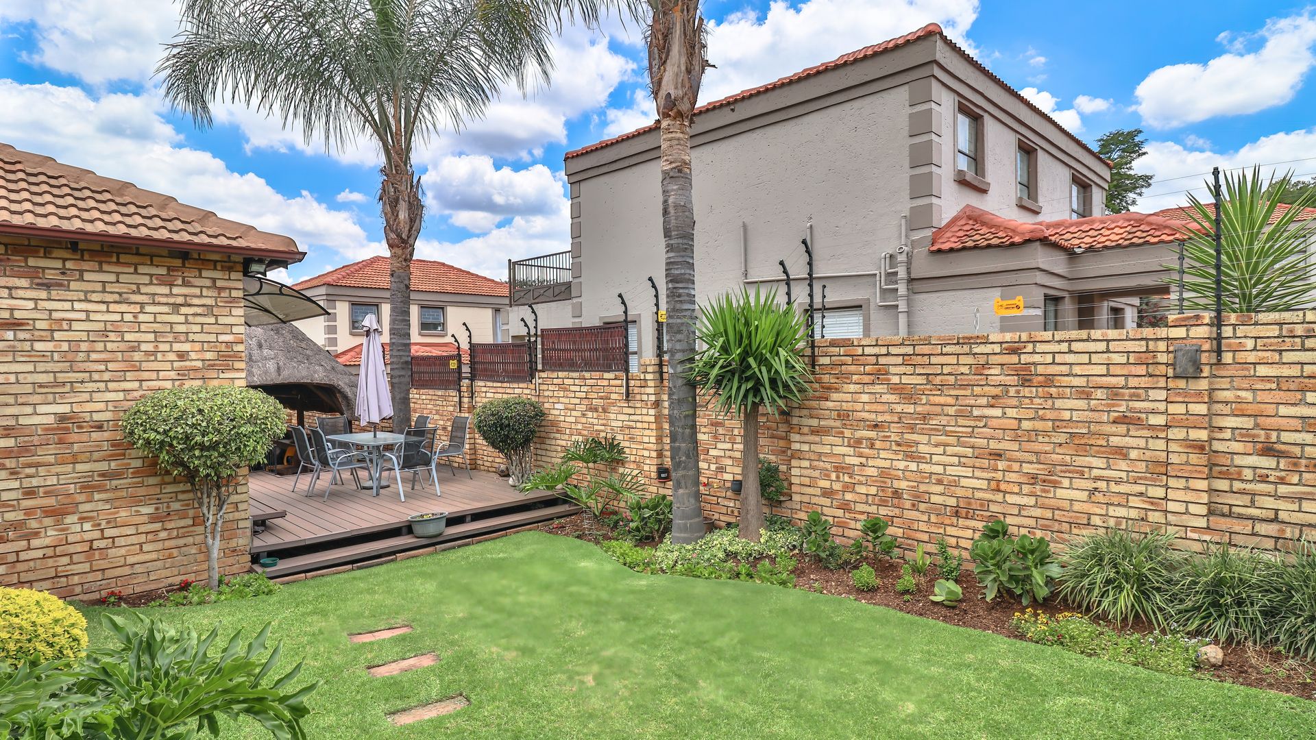 This immaculate 3-bedroom cluster home is set in a small, secure complex, offering privacy, comfort, and modern living. The home features a modern kitchen with ample cupboard space, flowing seamlessly into an open-plan lounge and dining area. The living space leads out to a covered patio and lapa with a jacuzzi, perfect for entertaining and relaxing. The beautifully landscaped garden creates a tranquil outdoor setting and is easy to maintain. All three bedrooms are well sized and fully tiled, with the main bedroom en suite. The home is further enhanced by an inverter system, ensuring uninterrupted power supply. Additional features include a double garage and excellent security within the complex. Key features: 3 well-sized bedrooms (main en suite) 2 bathrooms Modern kitchen with ample cupboards Open-plan lounge and dining area Patio, lapa & jacuzzi Beautiful, landscaped garden Inverter system Double garage Contact me today to arrange a private viewing of this exceptional home.