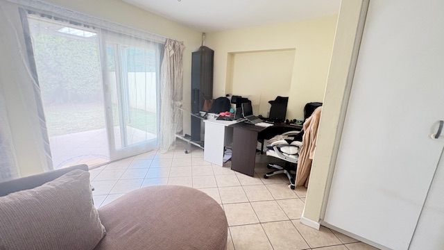 The main bedroom boasts a full en-suite bathroom and opens onto a private balcony overlooking the large garden, perfect for relaxing.