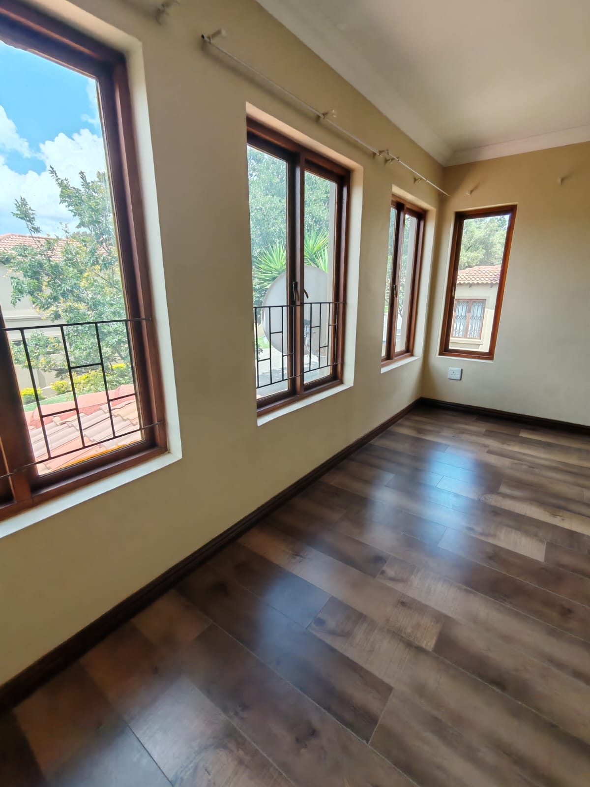 Home for your Peace of Mind Nestled in the so loved and sought after tranquil estate of Kyalami Hills, Midrand, is this stunning 3 bedroom house everyone would like to own. When you enter this elegant home you are greeted by the spacious open plan lounge, dining area seamlessly flowing into this fitted kitchen. You can easily access the double garage from the kitchen. For convenience , there is also a guest toilet right on this floor. The lovely staircase then takes you to the first floor where you are welcome by the pyjama lounge or TV room. The three bedrooms are located here. The master bedroom boasts an en-suite with bathtub and a shower. The other 2 bedrooms share a bathroom. All rooms are well sized yet the master one is generously spacious. The massive garden space is perfect for entertaining the family and friends as well as good relaxation moments. The property features a wrap-around garden and is pet-friendly. This is a great estate for raising kids as it has a play area for children. It is perfectly located a few minutes away from Mall of Africa, Kyalami Corner, Waterfall Corner, Sandridge, and Carlswald shopping complexes. There is 24-hours access control and CCTV cameras for your peace of mind. The complex is close to Allandale Road for easy access to all major routes. Do not waste any more time.....ring the bell ....