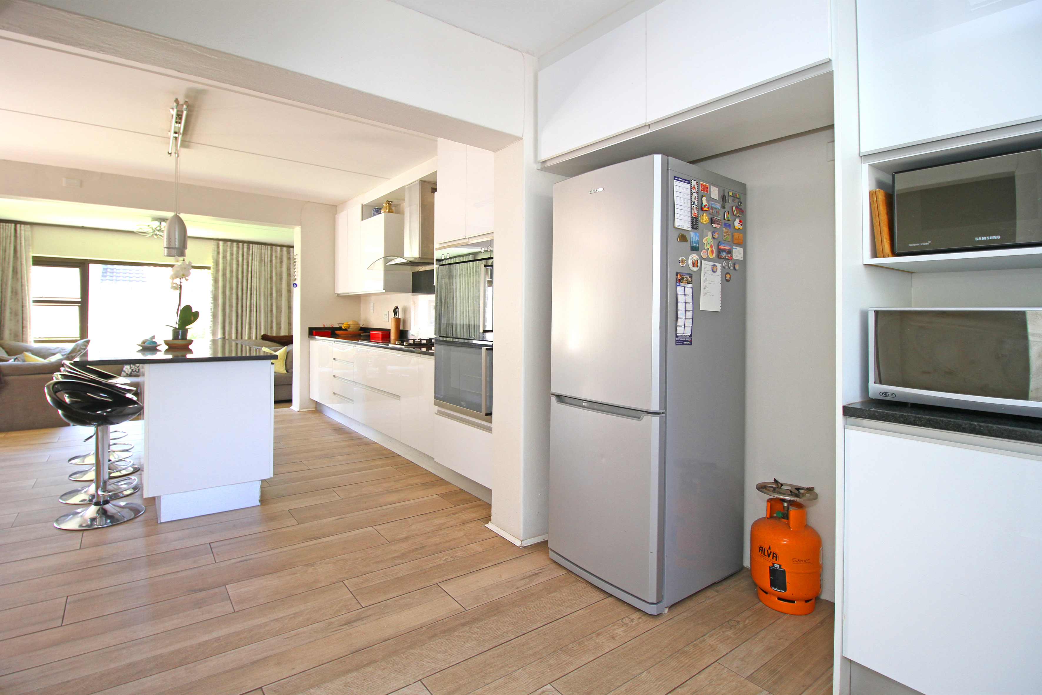 This beautifully presented home boasts 3 cozy bedrooms with built-in cupboards and 2 modern bathrooms, 1 of which is en suite and a lovely guest bathroom conveniently located downstairs, perfectly designed for comfortable family living. The heart of the home is a fully renovated open-plan kitchen, featuring a central island, sleek finishes, and ample storage space — ideal for both everyday living and entertaining.