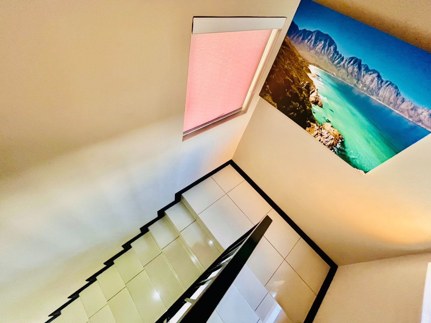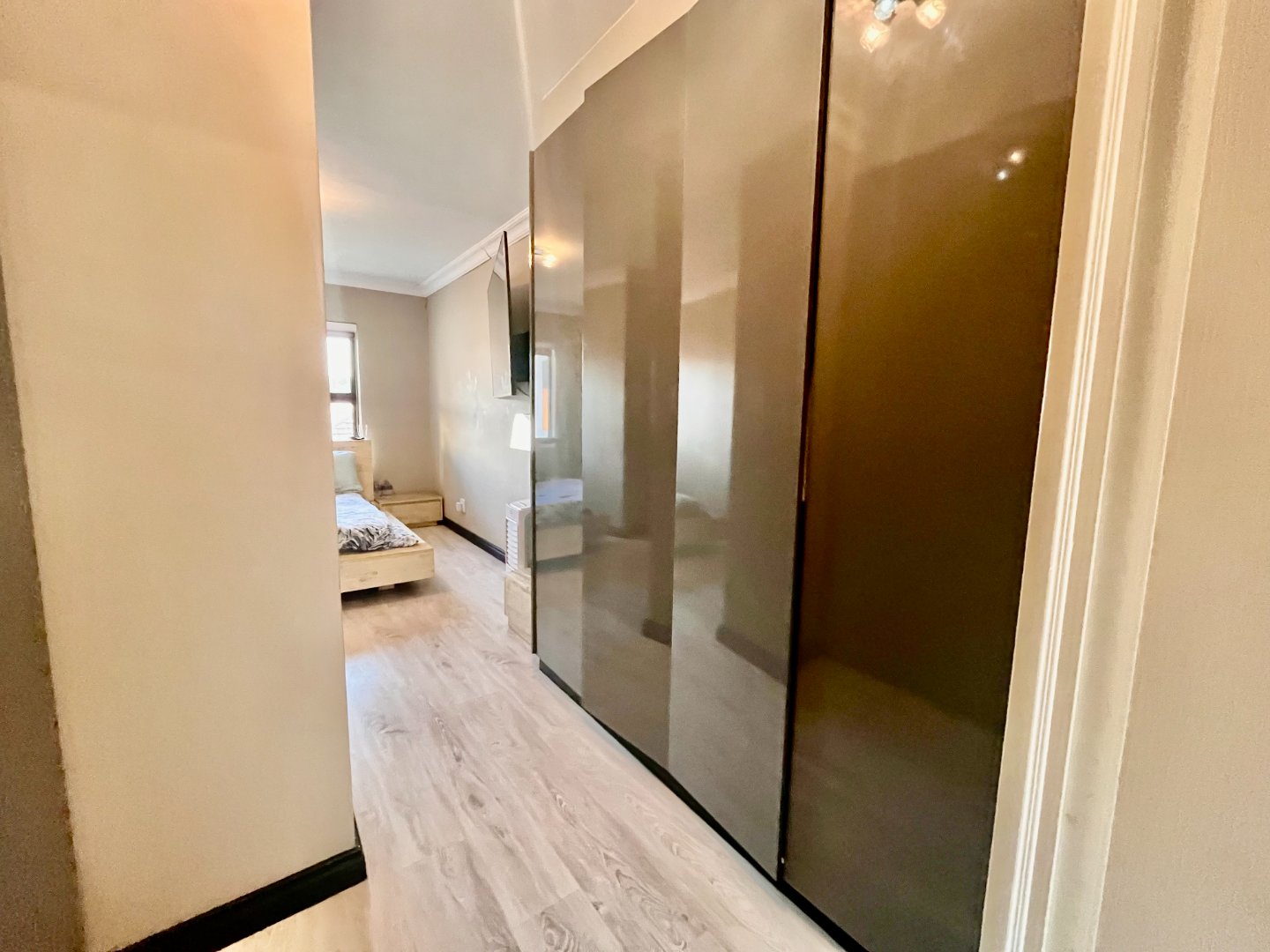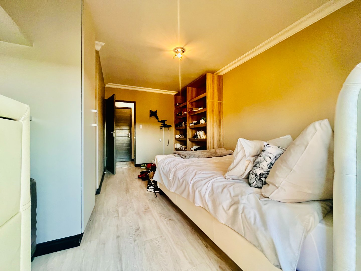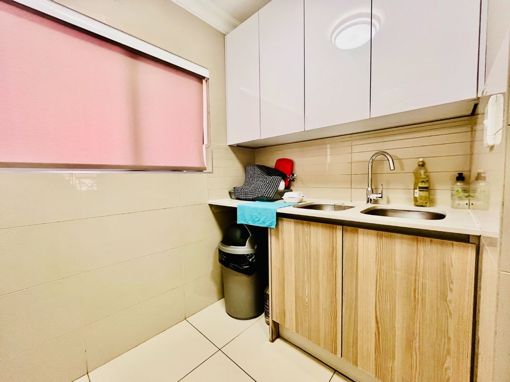 All bedrooms are located on the top floor, designed with comfort in mind. The main bedroom offers ample built-in cupboards and a luxurious en-suite bathroom with a bathtub, shower, toilet, and basin — all with high-end modern finishes. The laminated flooring adds warmth and durability throughout. The two additional bedrooms feature built-in cupboards, with one enjoying its own private balcony. They share a sleek, modern bathroom with a shower, toilet, and basin.