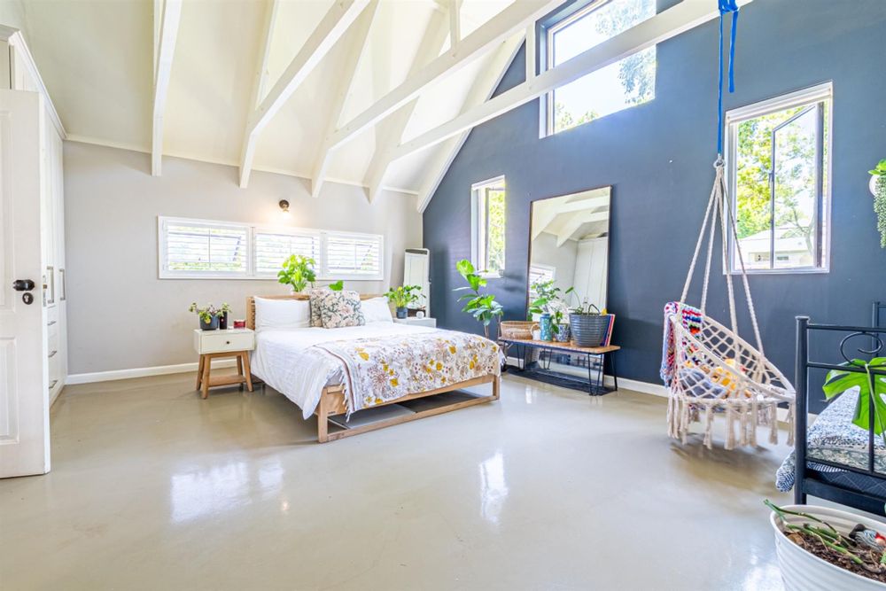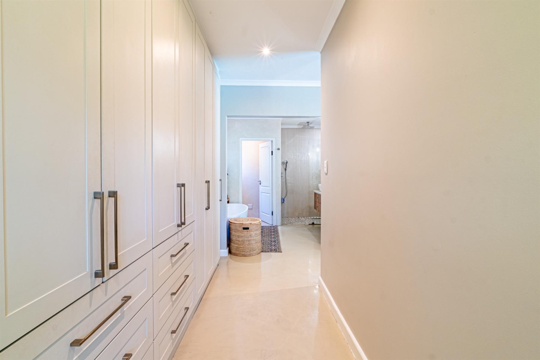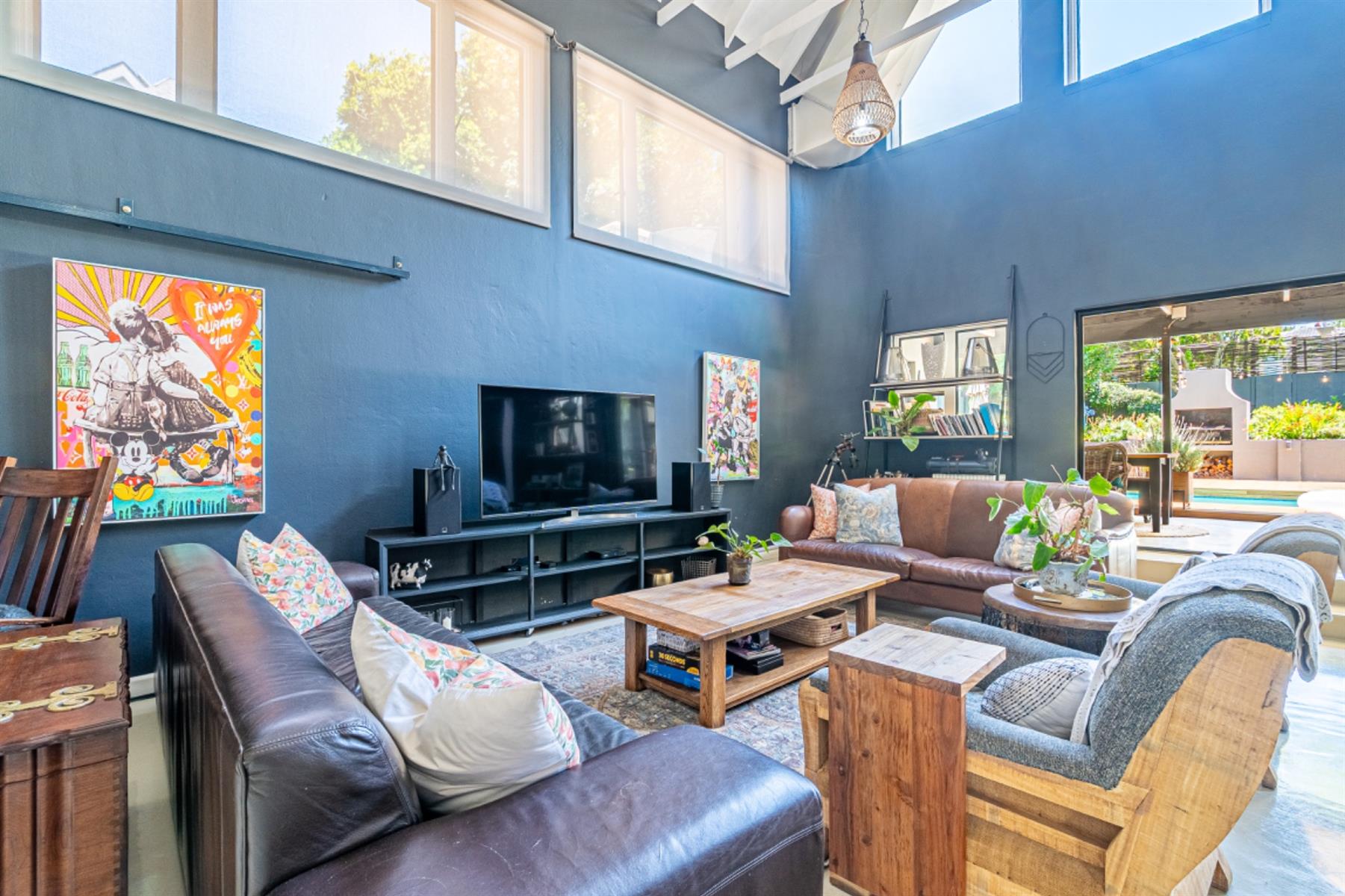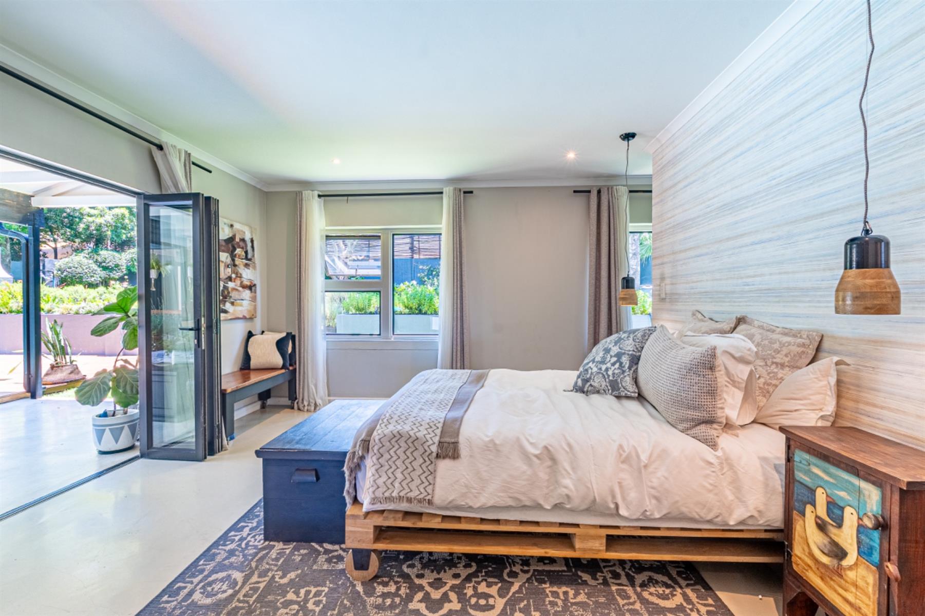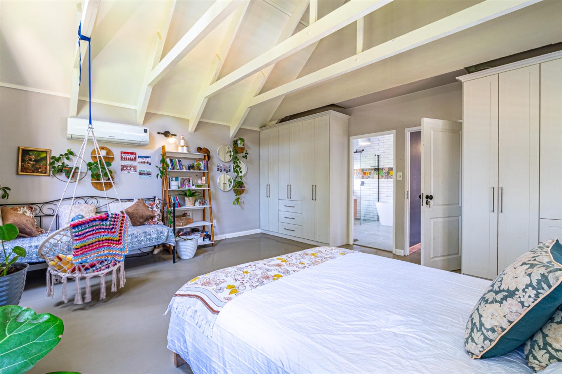 The expansive covered patio is designed for year-round enjoyment, complete with a fitted bar and seamless flow onto a wooden deck, boma, and braai area. The heated swimming pool anchors the landscaped garden with elegance, creating a luxurious outdoor oasis ideal for gatherings or quiet relaxation.
