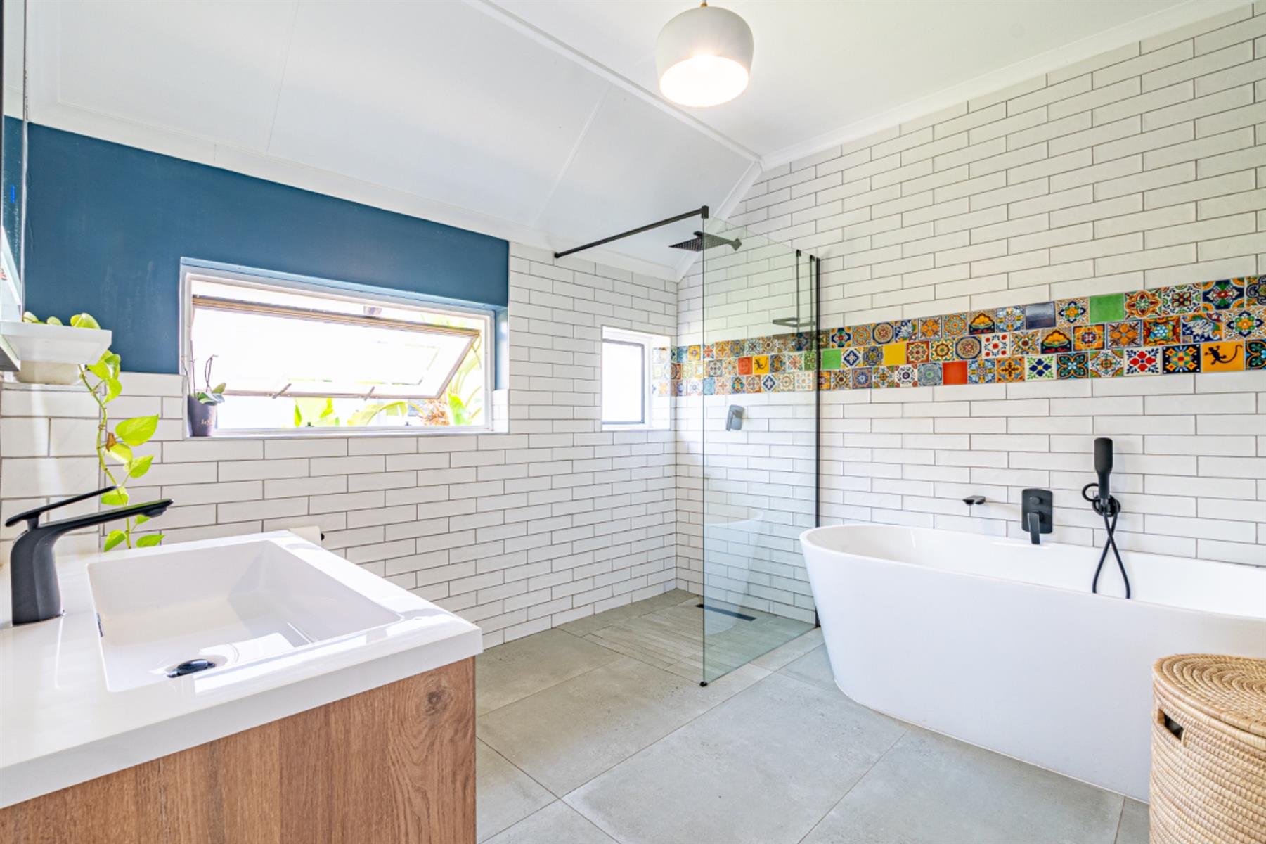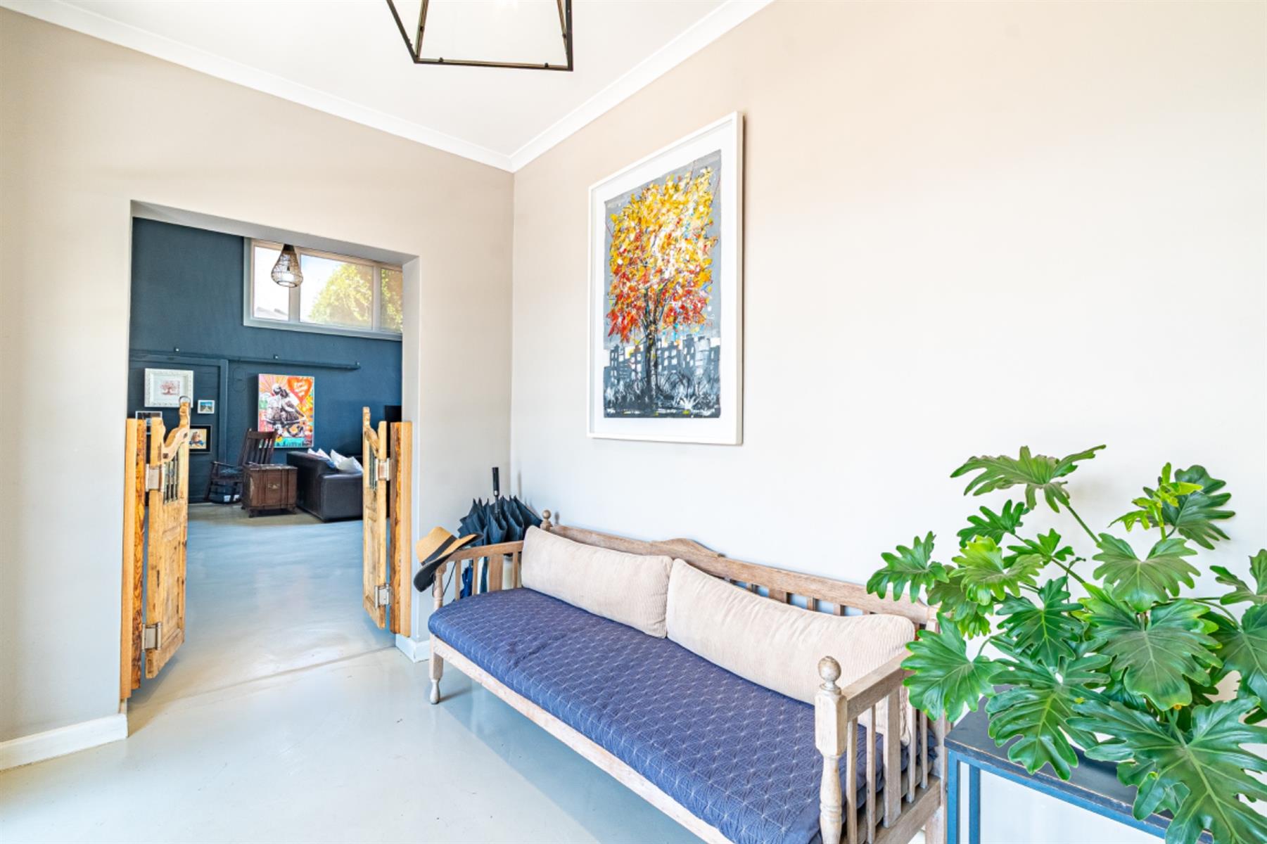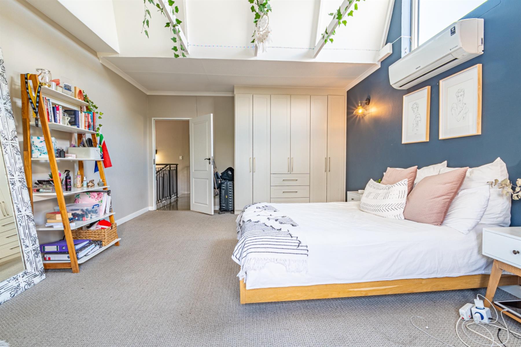 The kitchen is a centrepiece of style and function, featuring a central island, breakfast bar, Caesarstone countertops, gas hob, and a well-equipped scullery. This space has been thoughtfully designed to cater to busy family routines and effortless hosting.