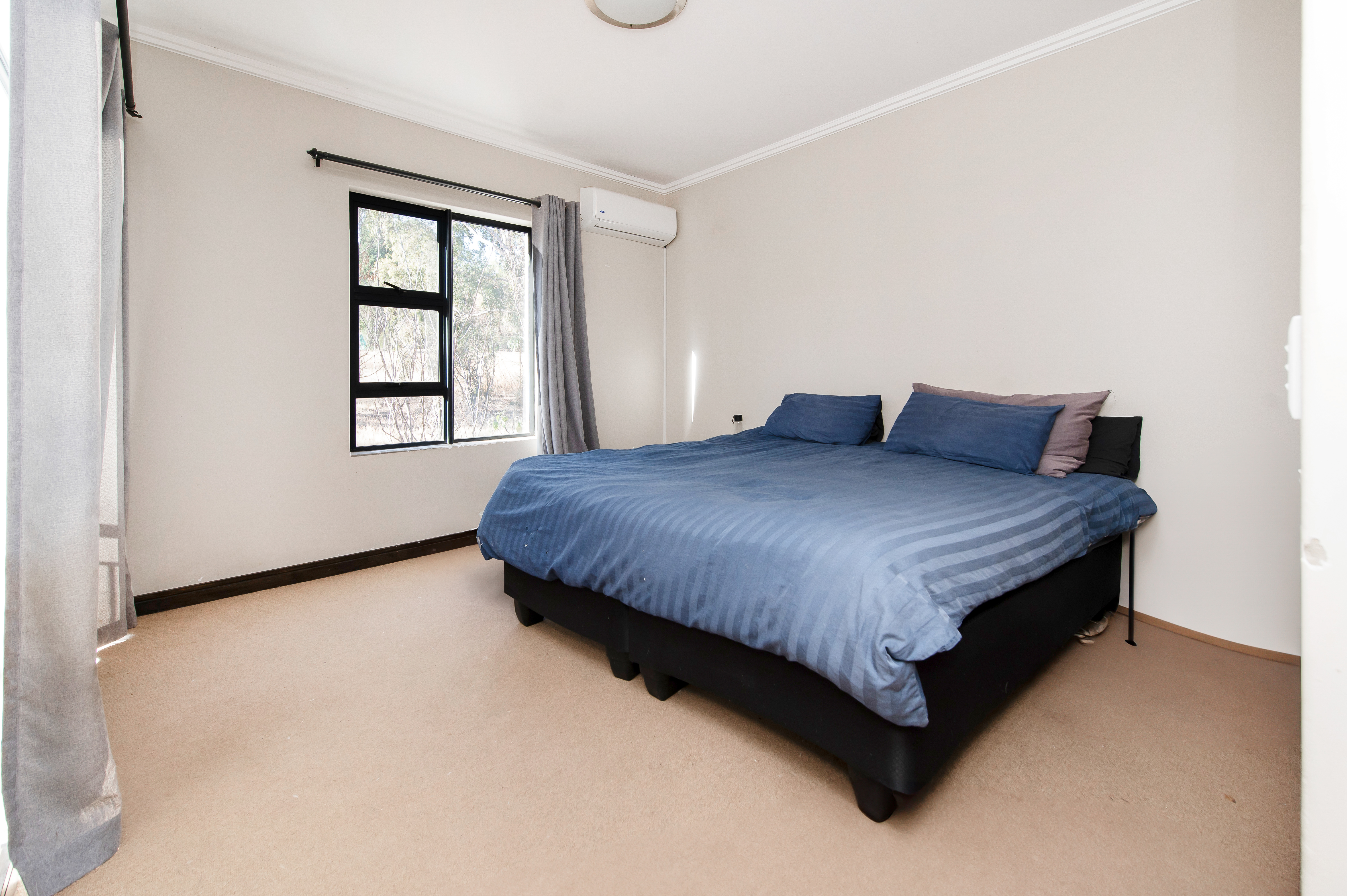 The kitchen features an electric stove cooking area, oven and a scullery with a space for all your appliances. The beautifully designed living space is divided by a sliding door which offers an enclosed entertainment/dining area with a built-in braai stand which leads into their pet friendly garden