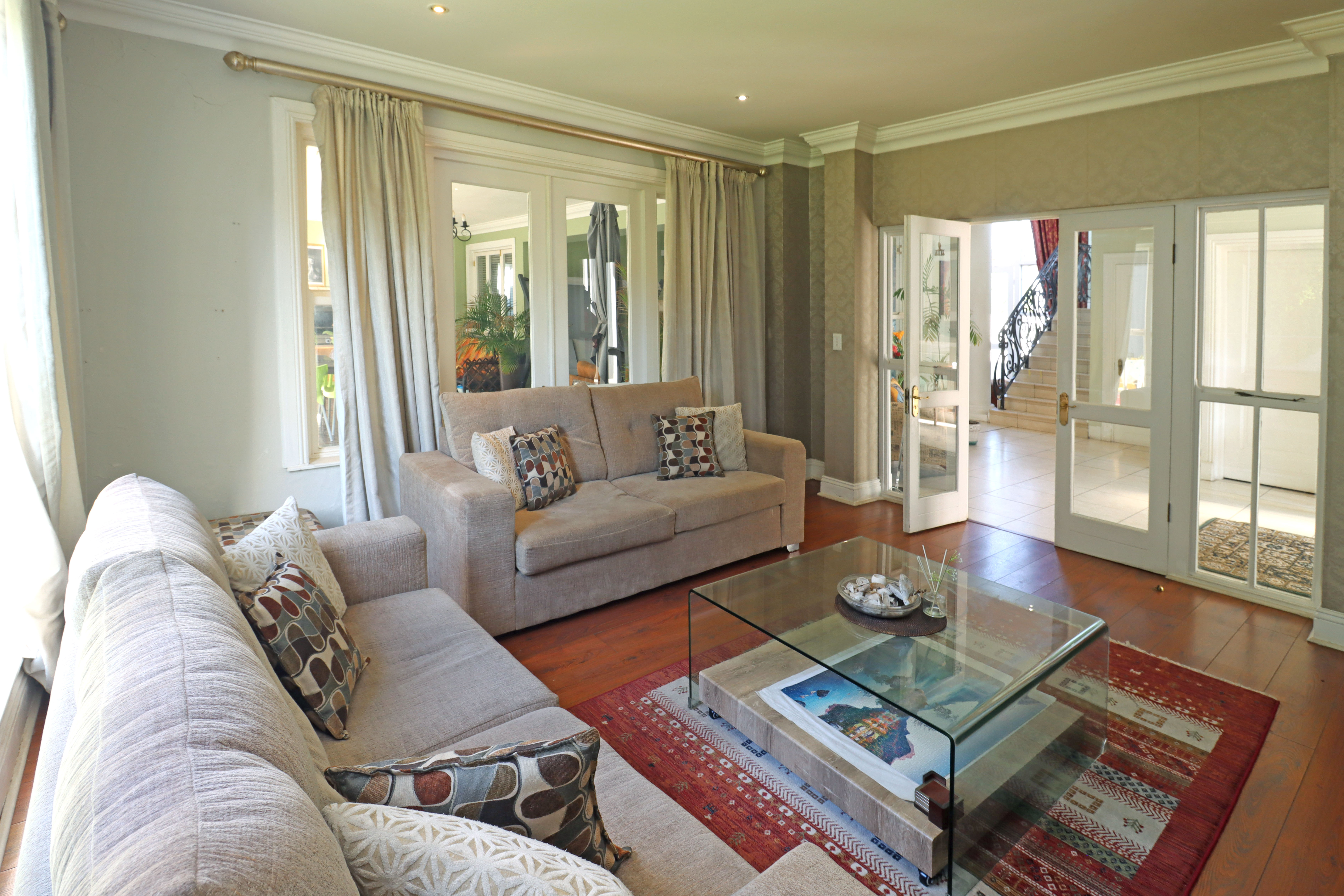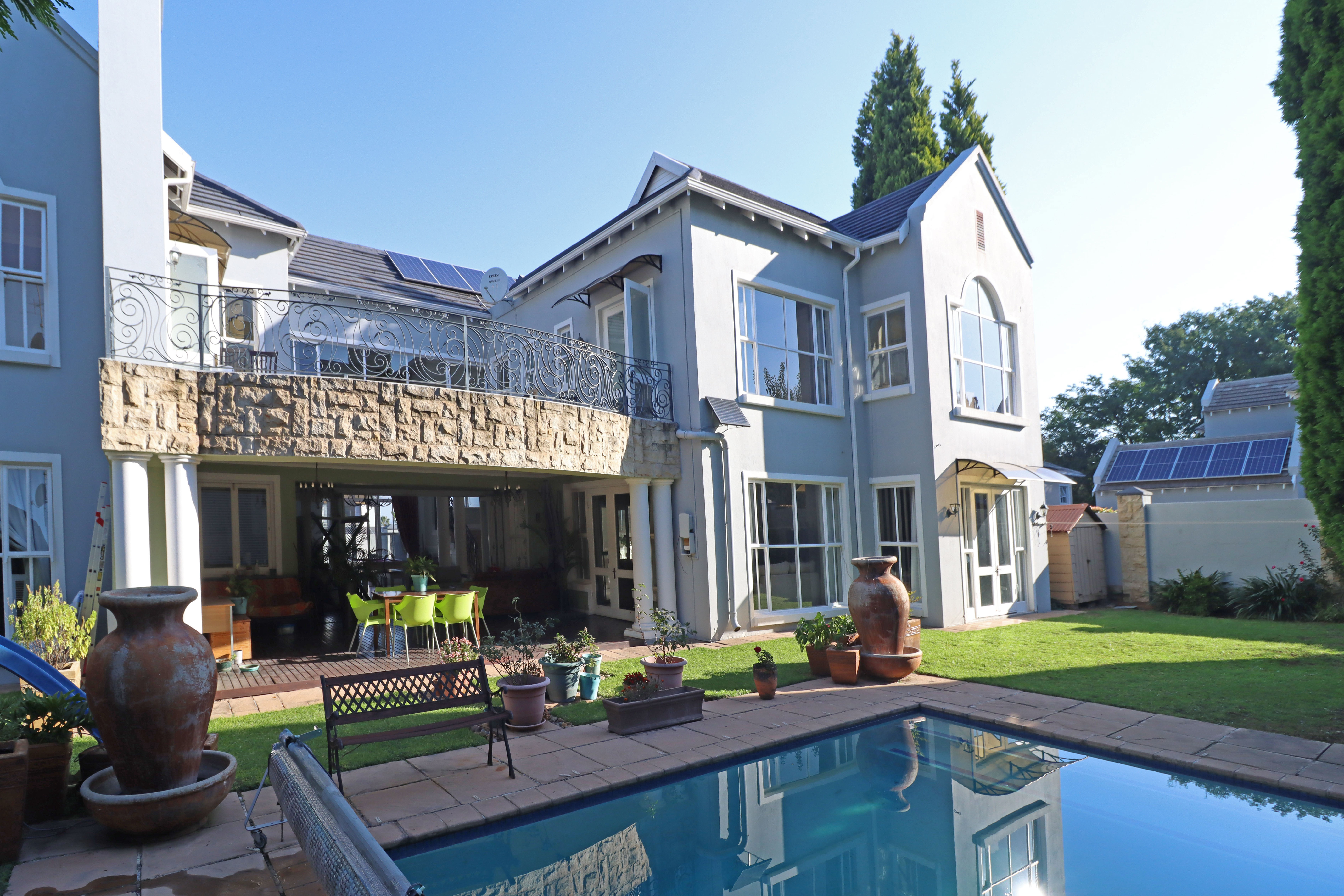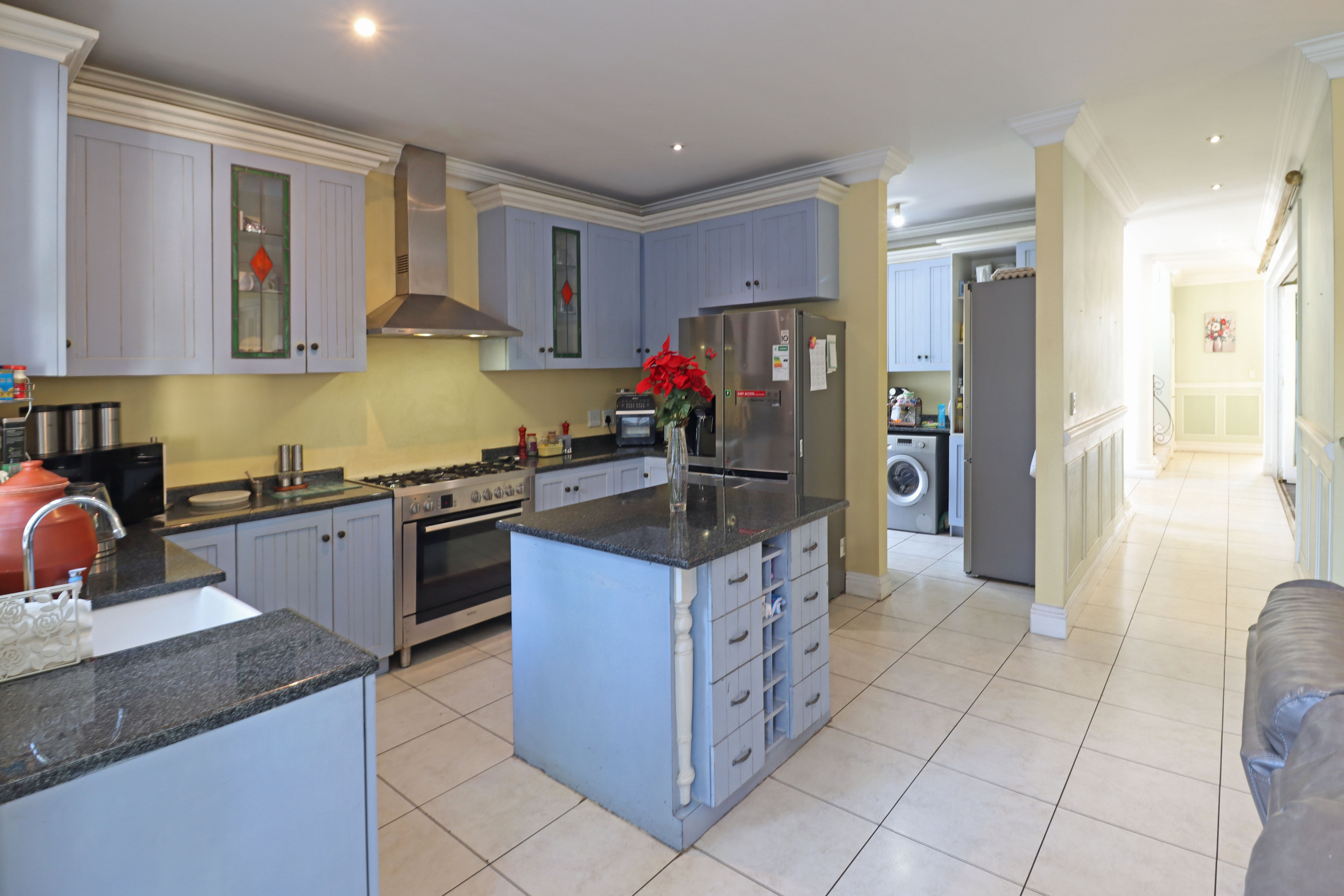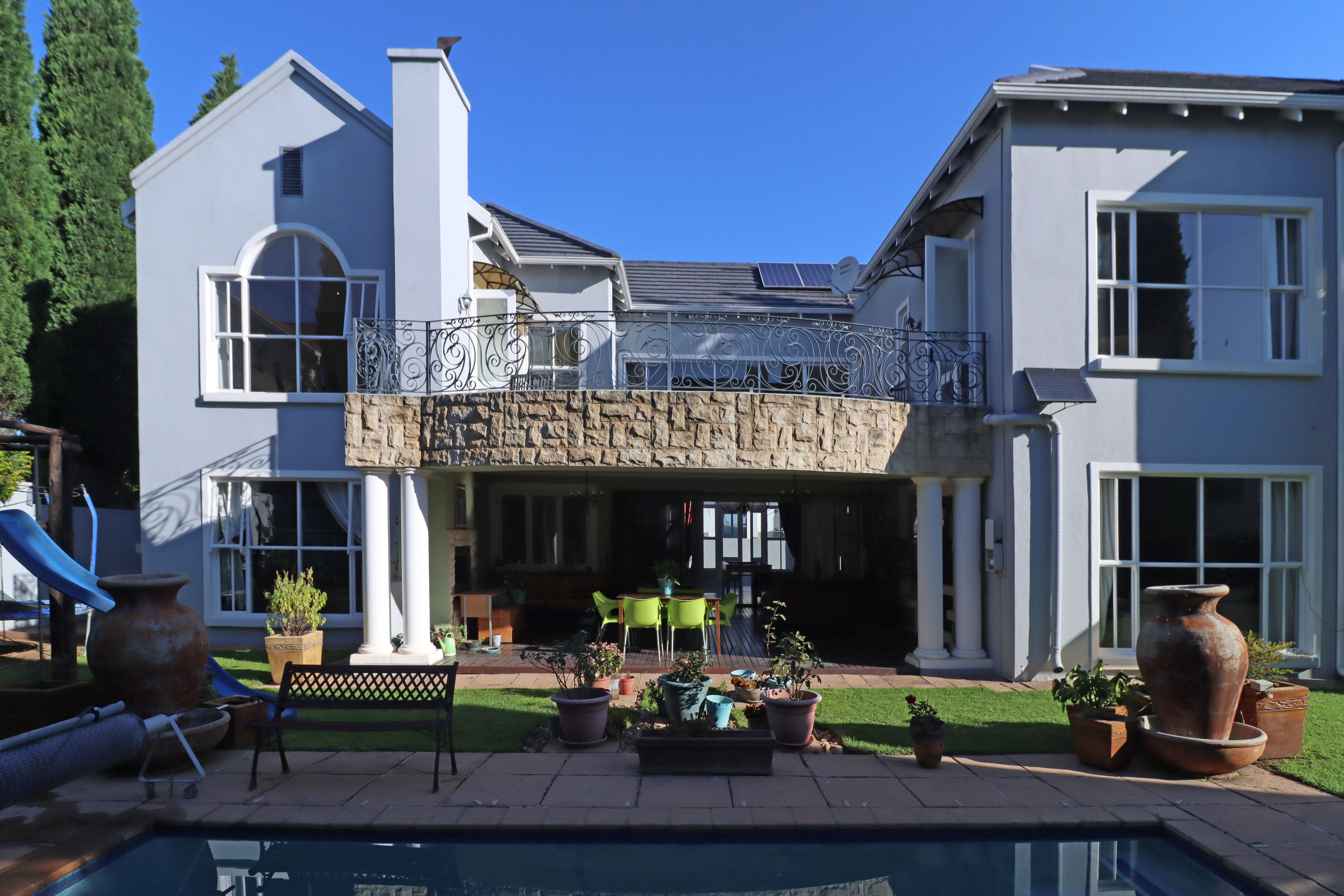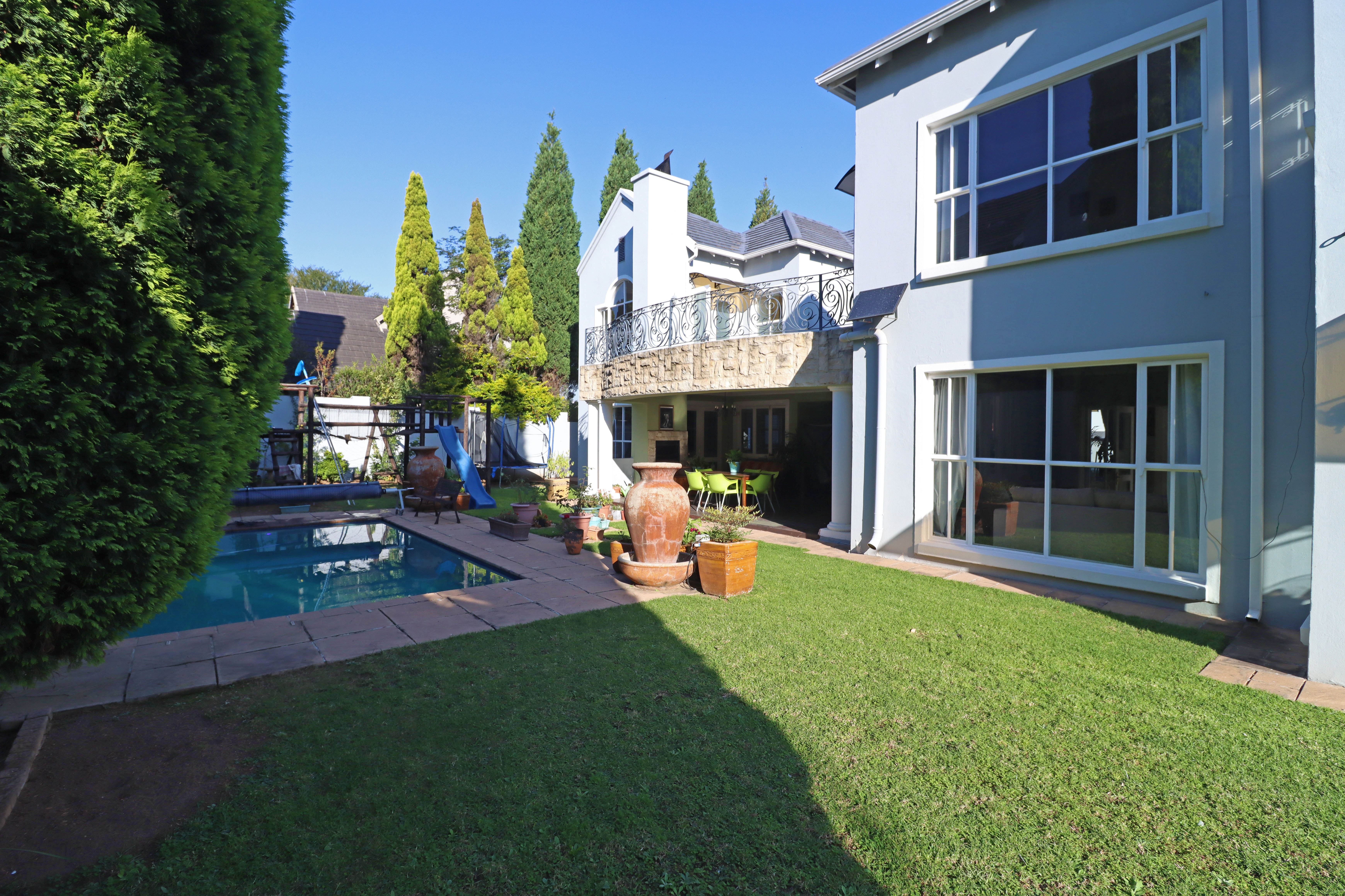 Big entertainers, this home is for you! Lounge with gas fireplace, built in bar and serving hatch to the patio as well as opening doors and open plan to the divine kitchen. The kitchen boasts a centre island, gas hob, space for a double door fridge, ample cupboard space and a separate scullery. Formal lounge and formal dining seamlessly flow through stack-away doors to the patio. Patio is to die for with a large decked area and fully covered with built-in gas braai and overlooking the sparkling heated pool and manicured garden.