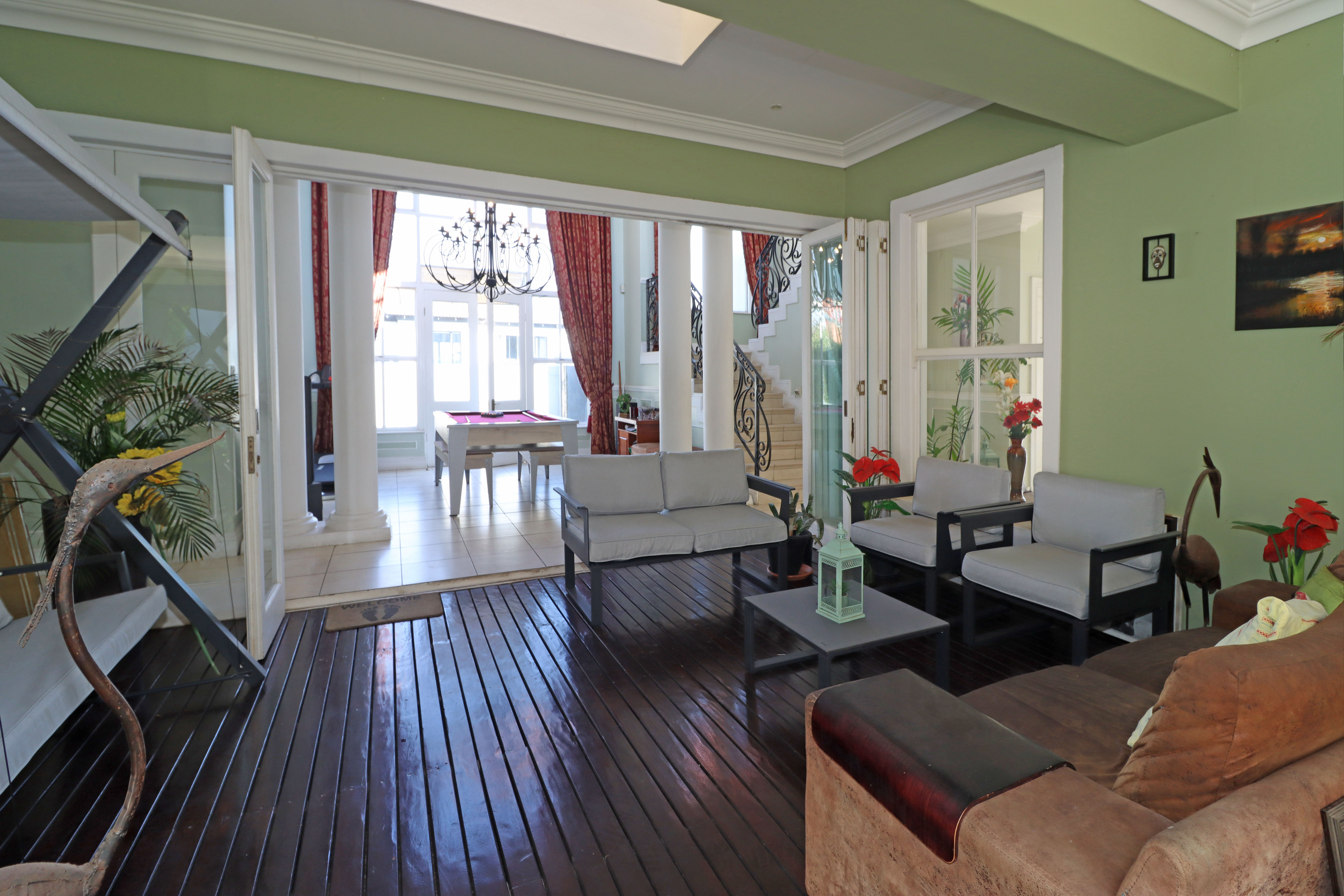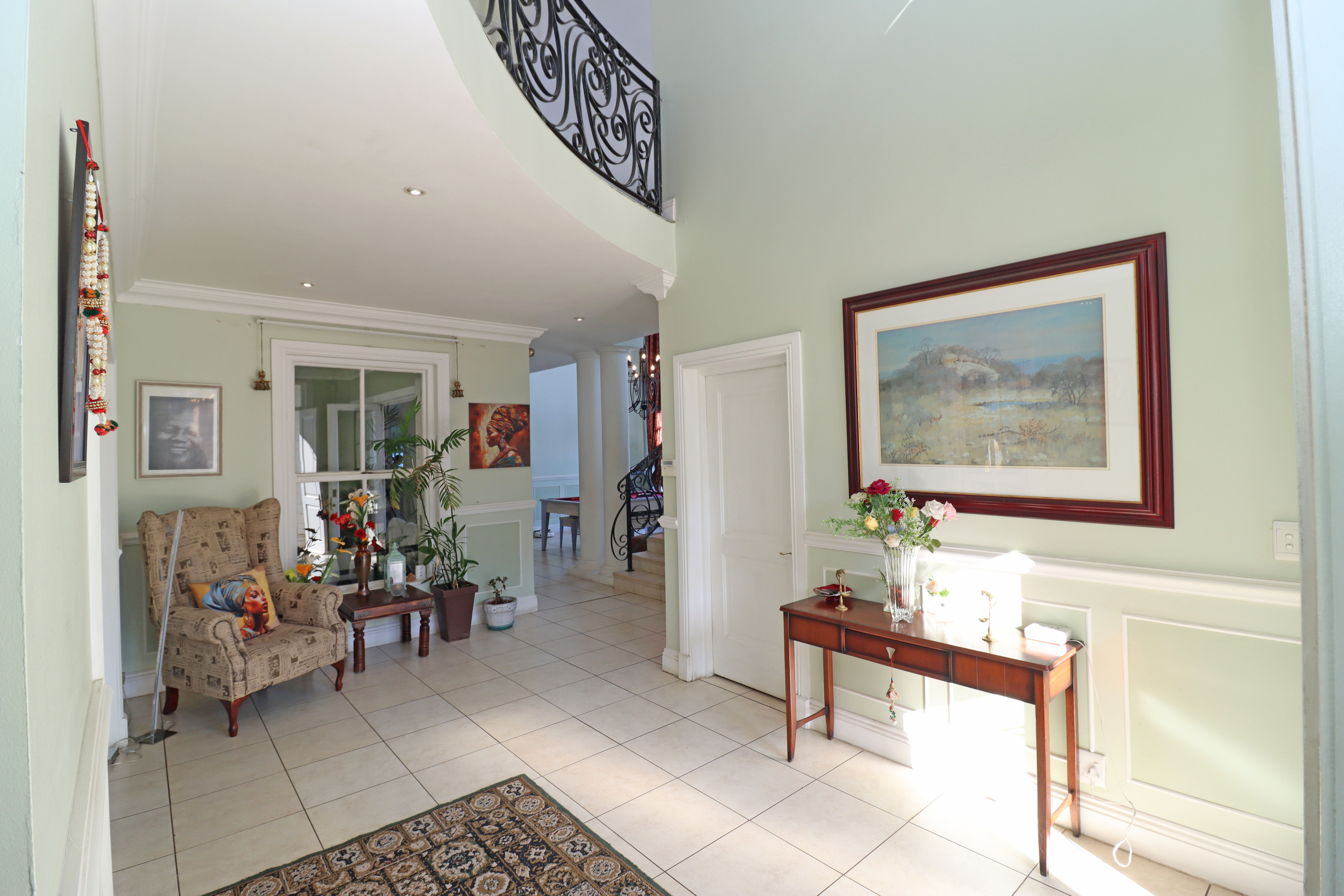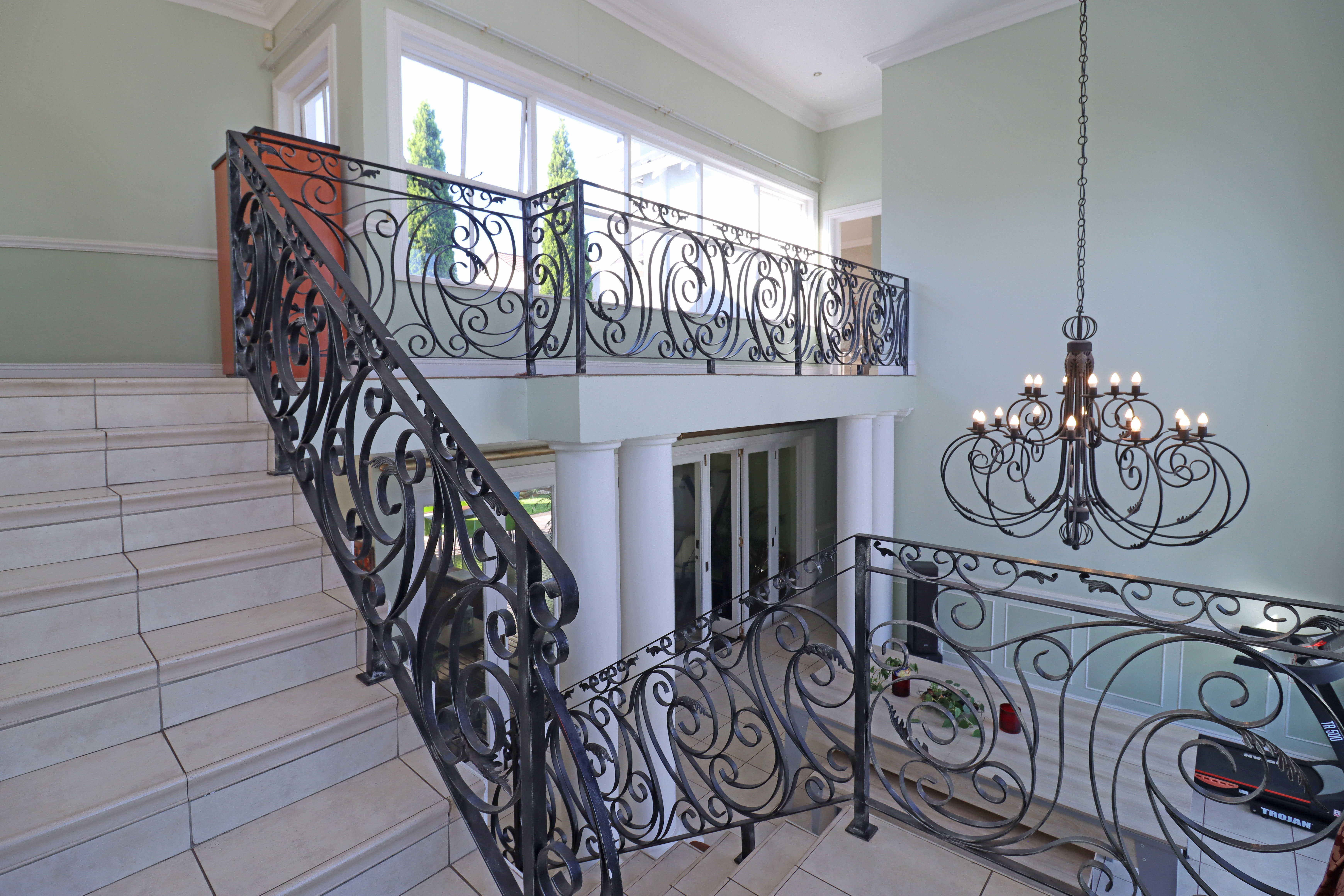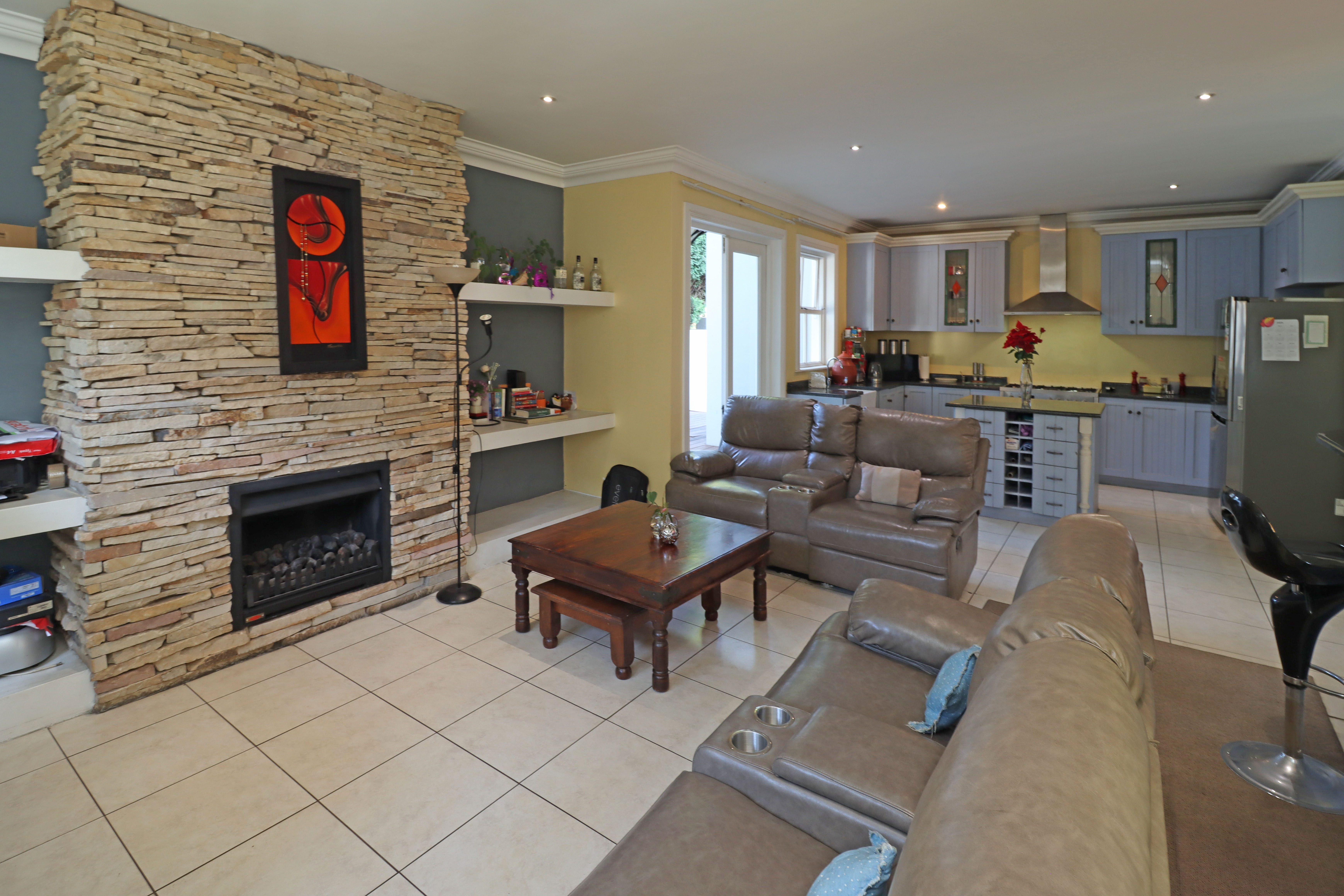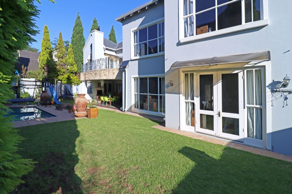 Big entertainers, this home is for you! Lounge with gas fireplace, built in bar and serving hatch to the patio as well as opening doors and open plan to the divine kitchen. The kitchen boasts a centre island, gas hob, space for a double door fridge, ample cupboard space and a separate scullery. Formal lounge and formal dining seamlessly flow through stack-away doors to the patio. Patio is to die for with a large decked area and fully covered with built-in gas braai and overlooking the sparkling heated pool and manicured garden.