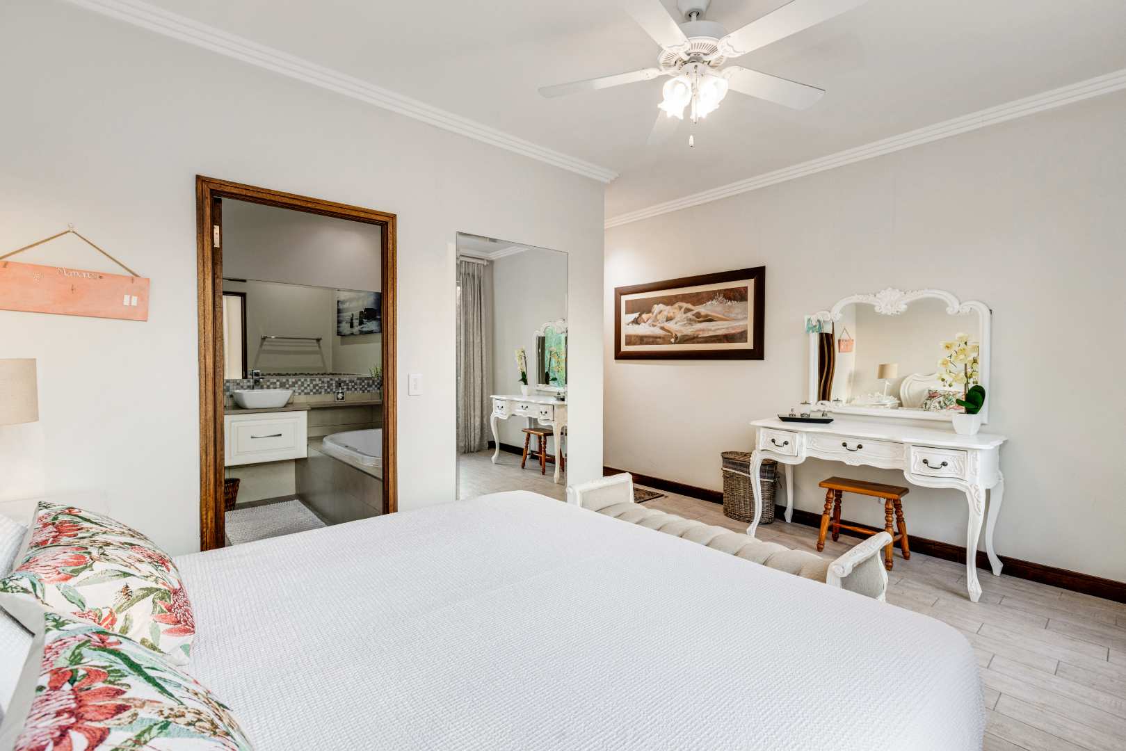 The primary suite includes an impressive sizeable headboard, full en-suite bathroom, as well as a dressing area.
