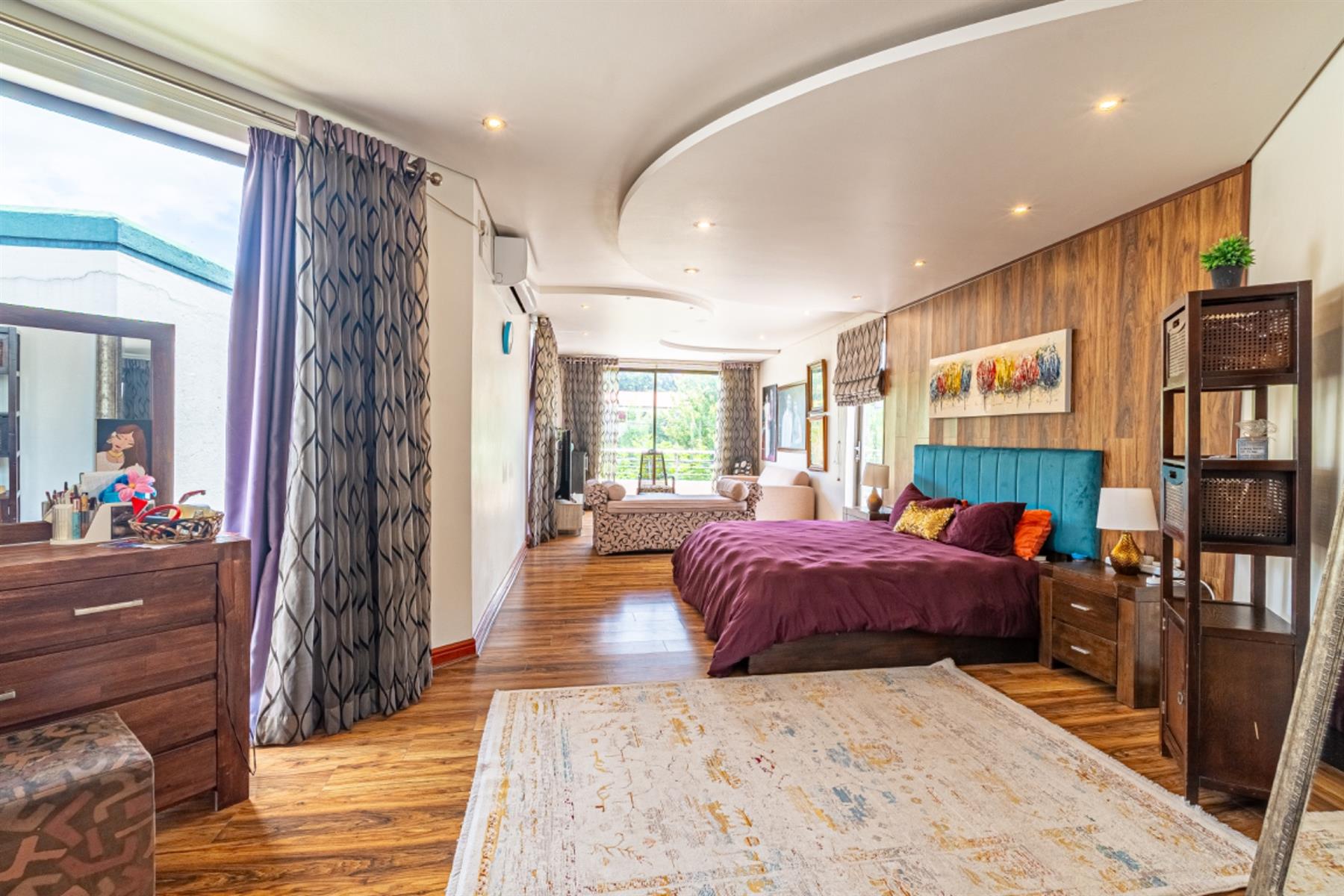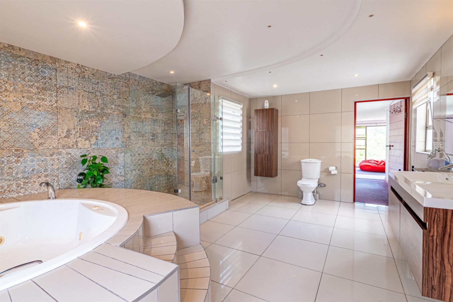 Accommodation is equally impressive. A guest bedroom with en-suite bathroom opens directly onto the pool area, offering privacy and comfort for visitors. The master suite is truly extraordinary—featuring its own private lounge, luxurious dressing room, full en-suite bathroom, and a private gym, creating a sanctuary within the home. Additional bedrooms are generously proportioned, supported by a total of 4.5 bathrooms and a conveniently placed linen cupboard.