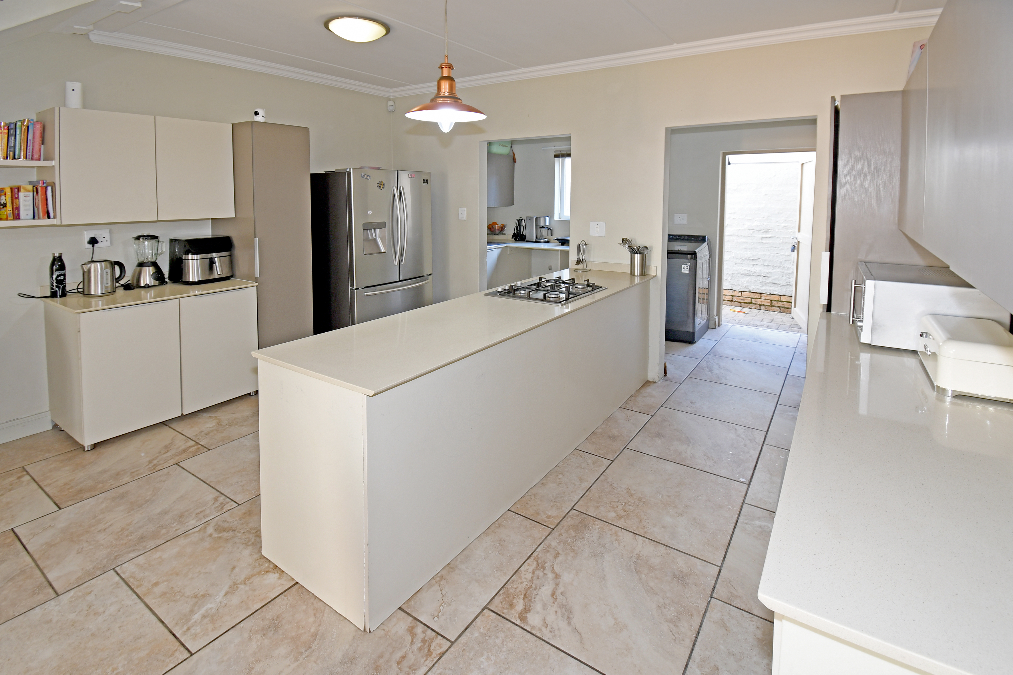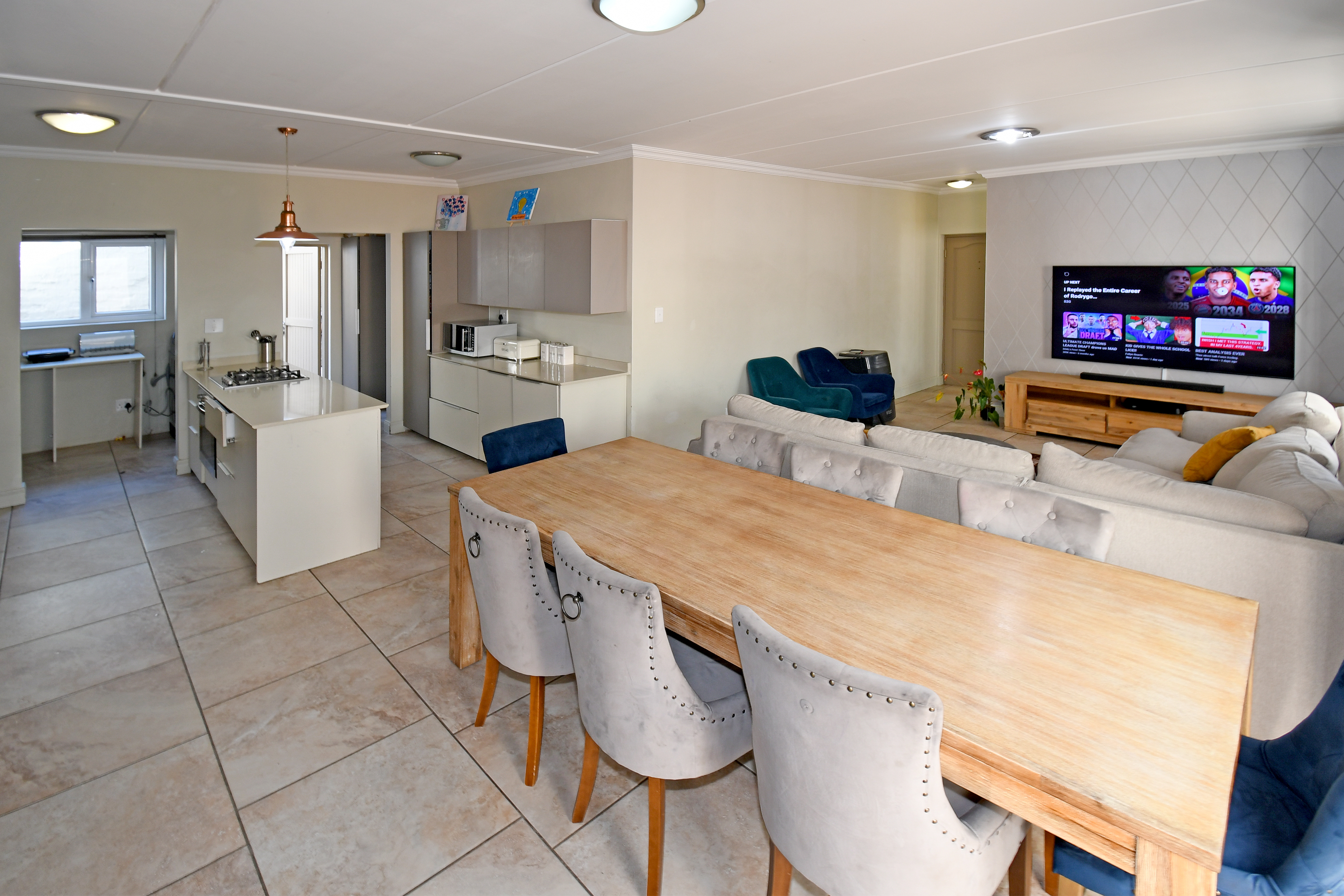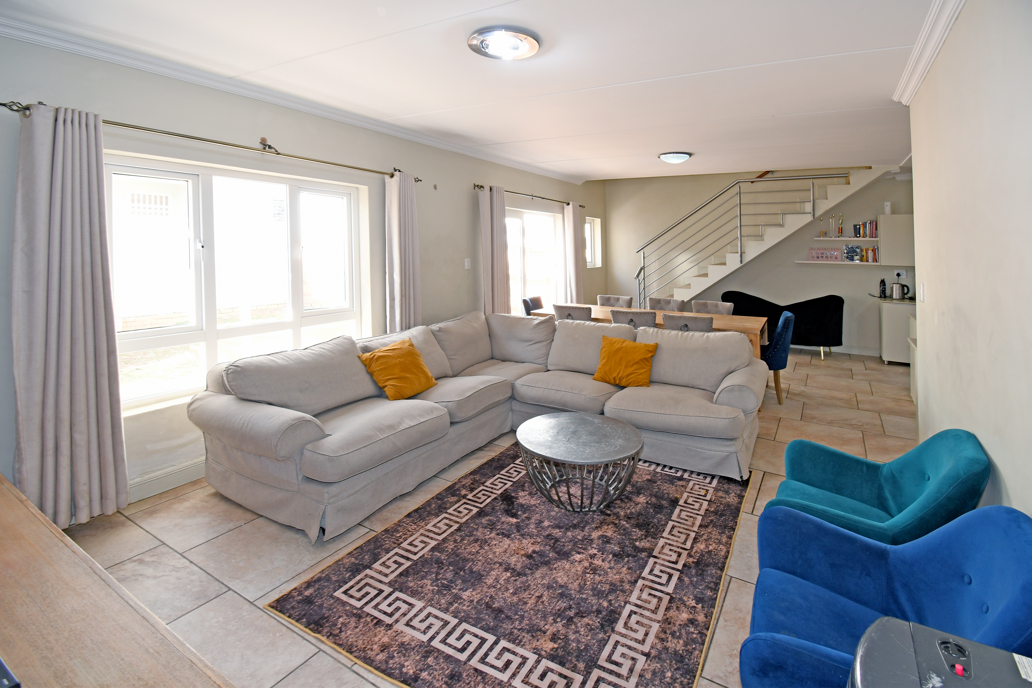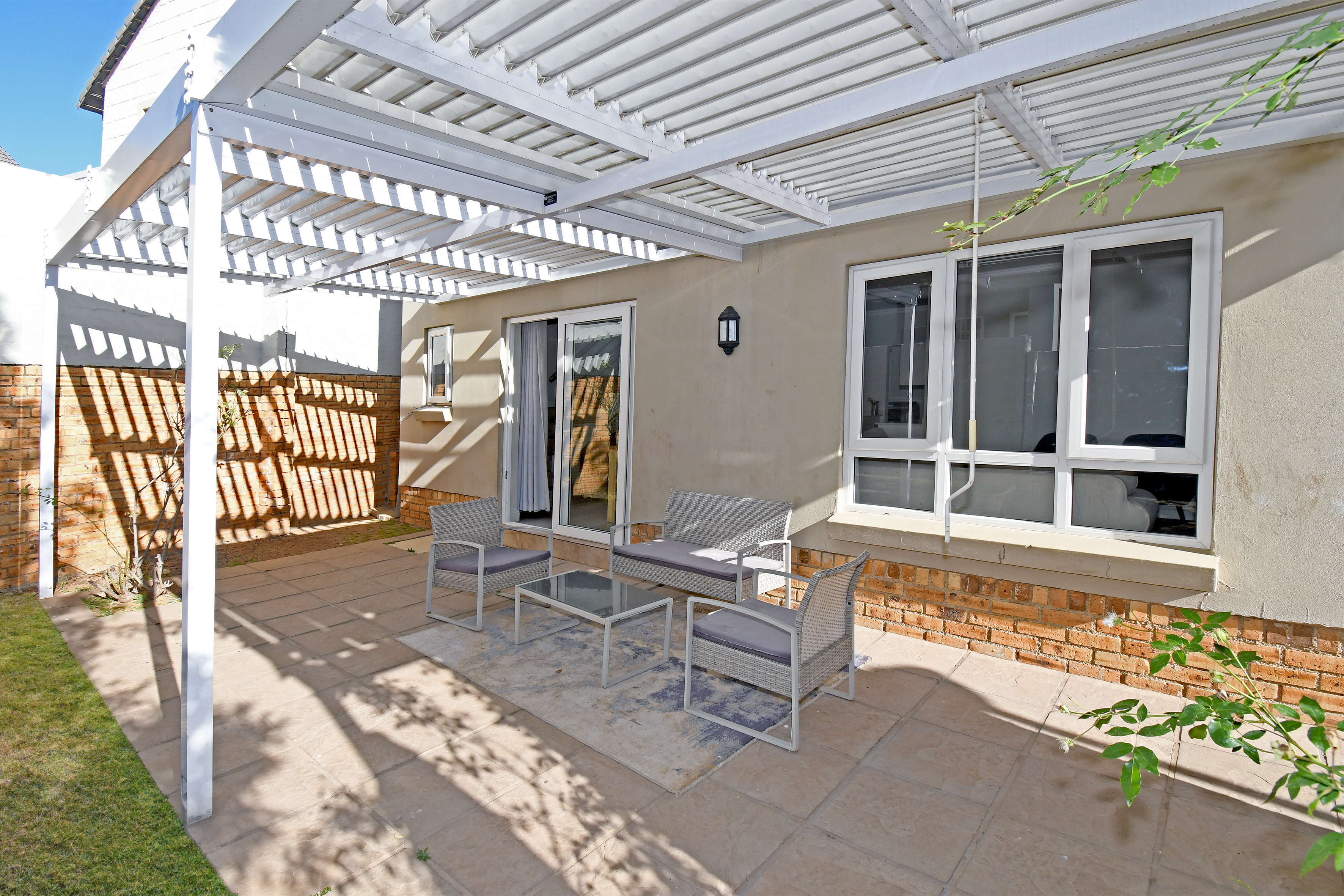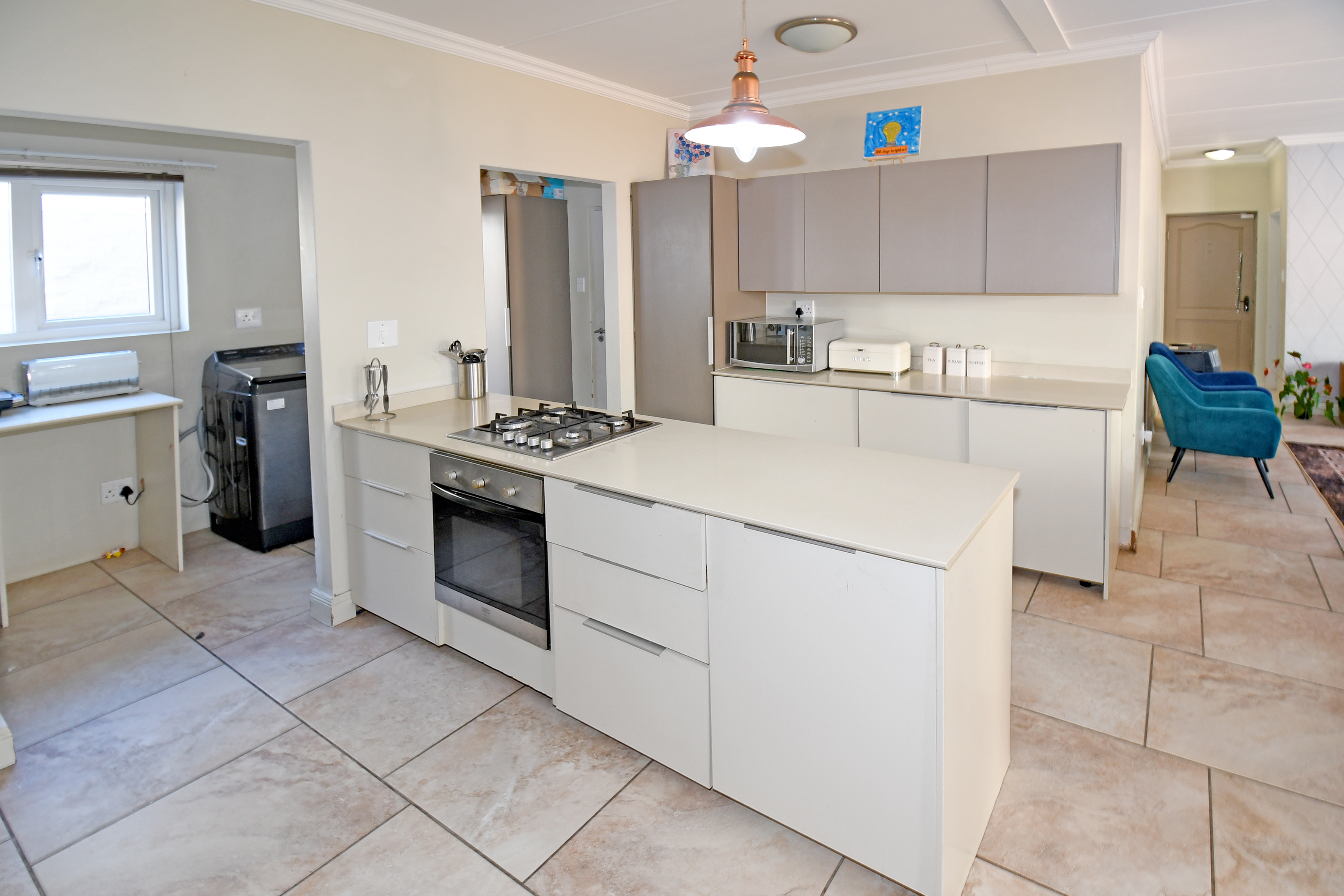 Discover this beautiful, airy residence perfect for a modern lifestyle. Located in a secure estate, this lock-up-and-go home features an expansive open-plan living area, ideal for dining and lounging. Sliding doors seamlessly connect the living space to a covered patio, complete with a built-in braai—perfect for entertaining! The stunning kitchen boasts a centre island, gas hob, electric oven, separate scullery and space for three under-counter appliances.