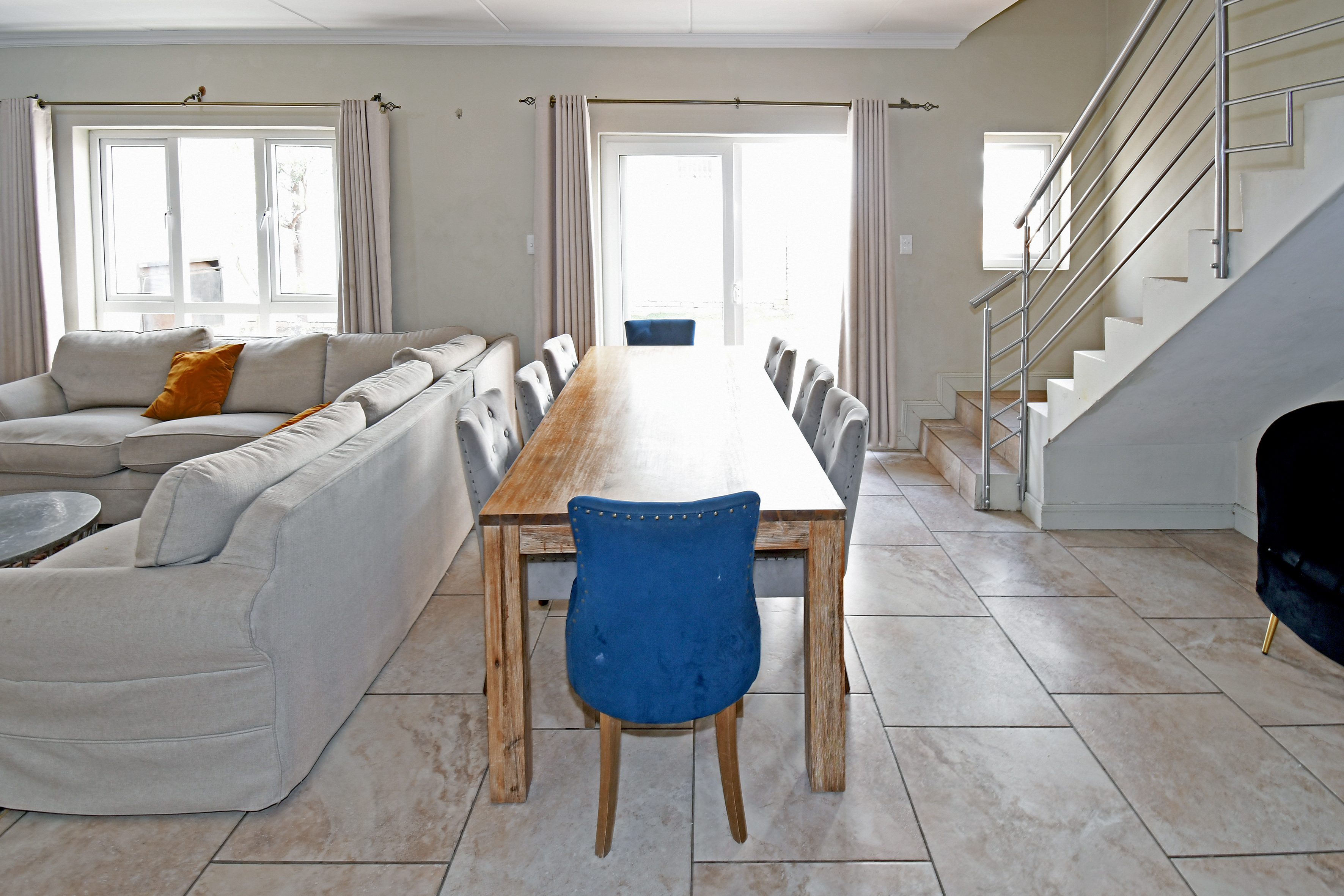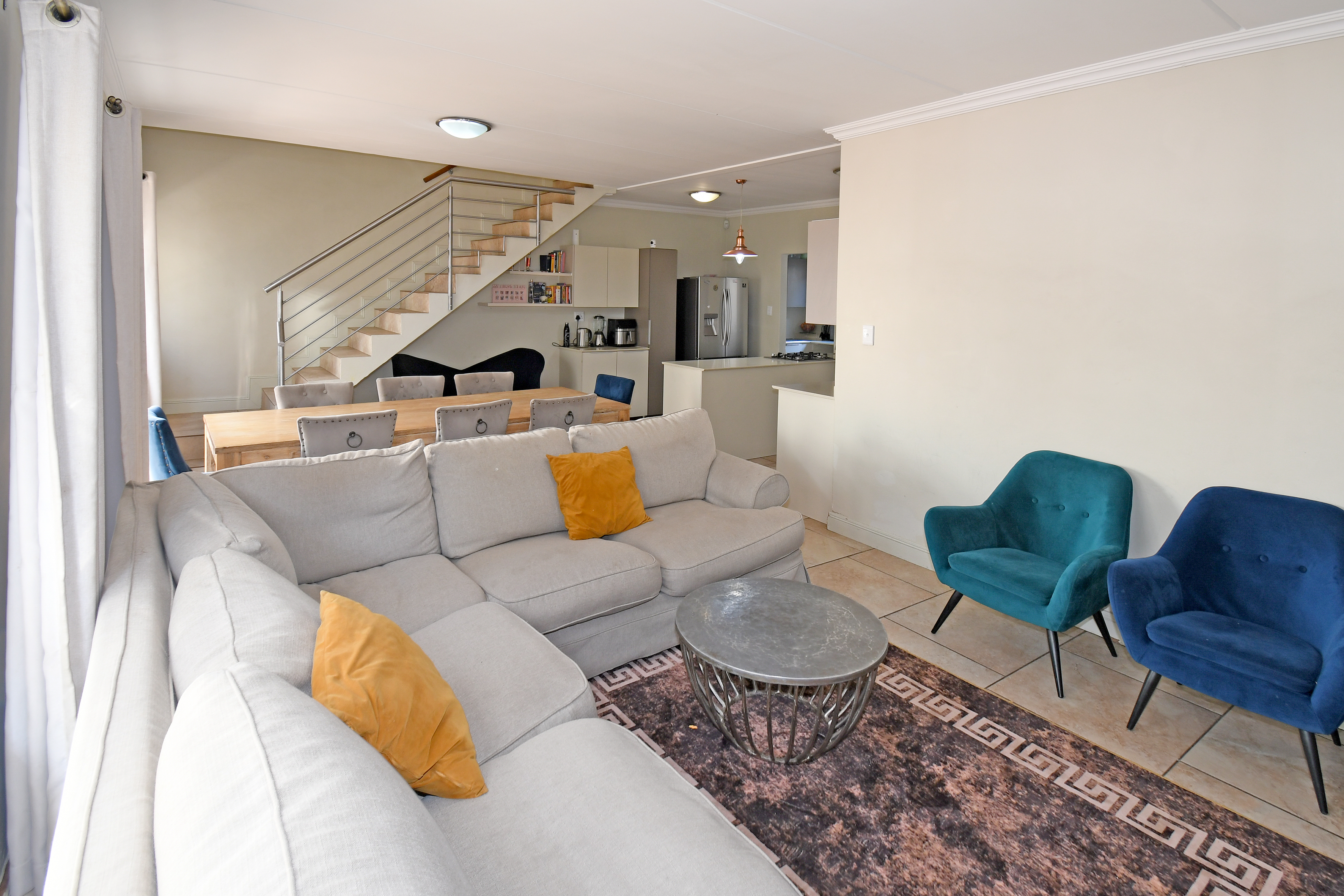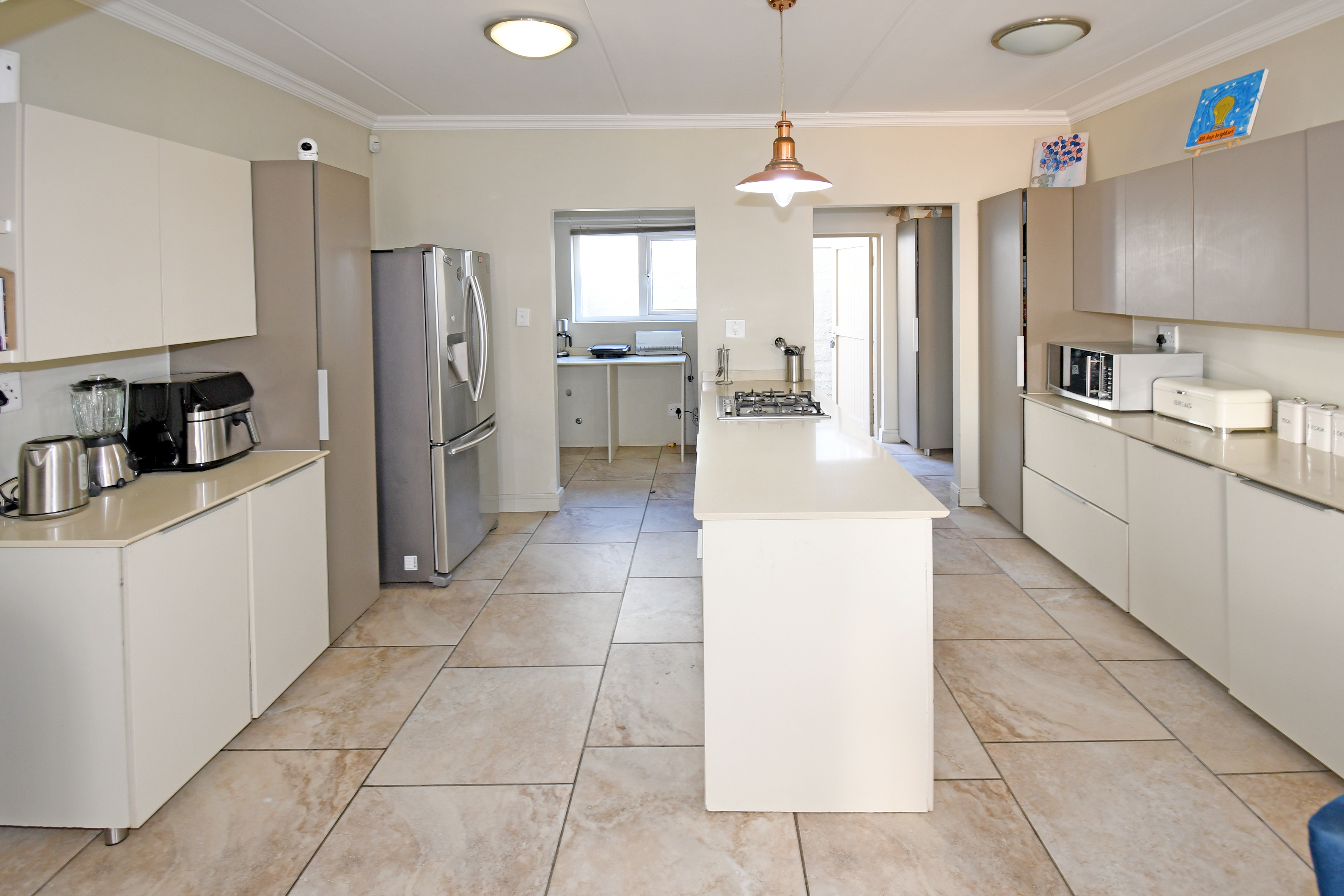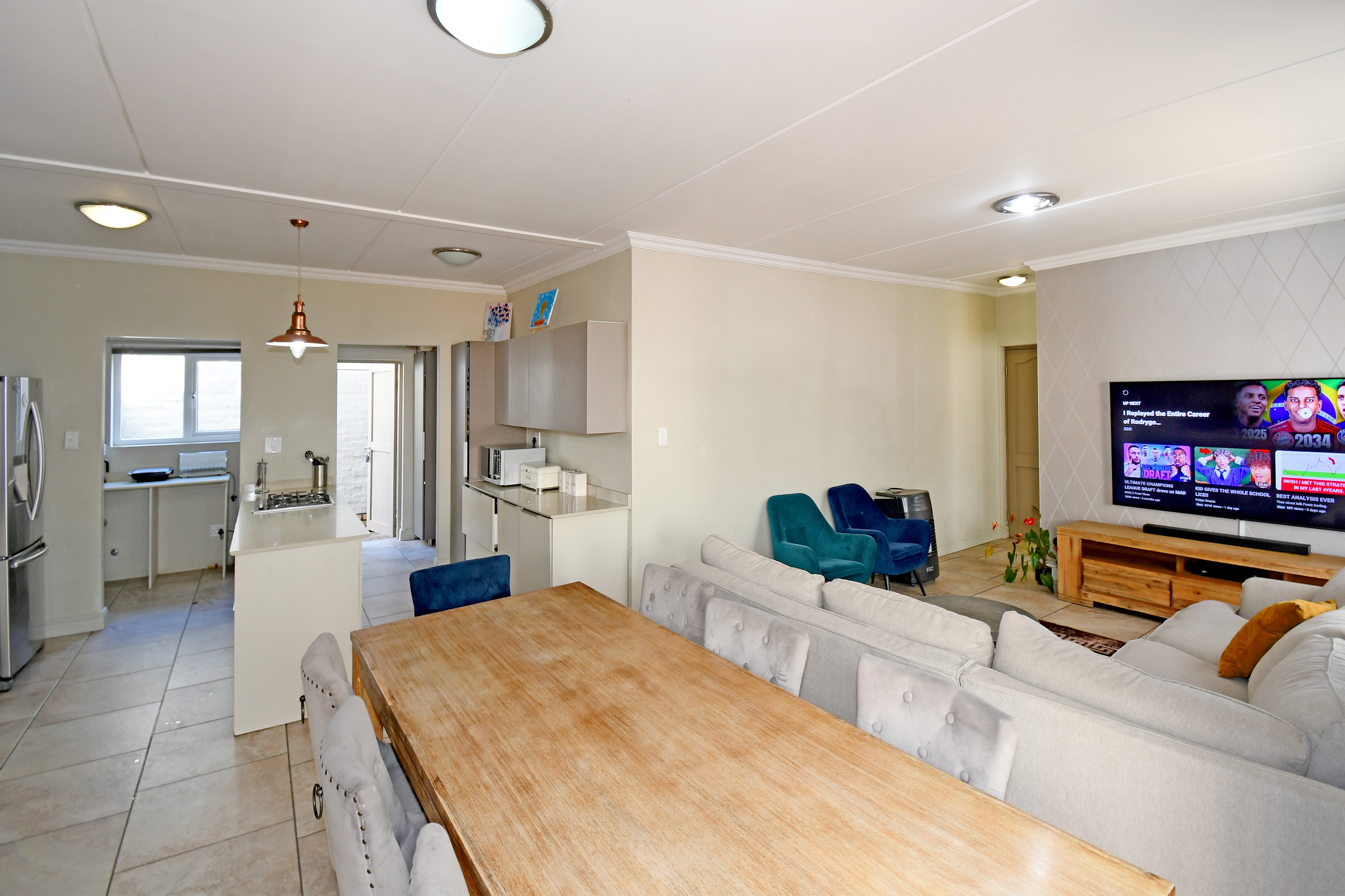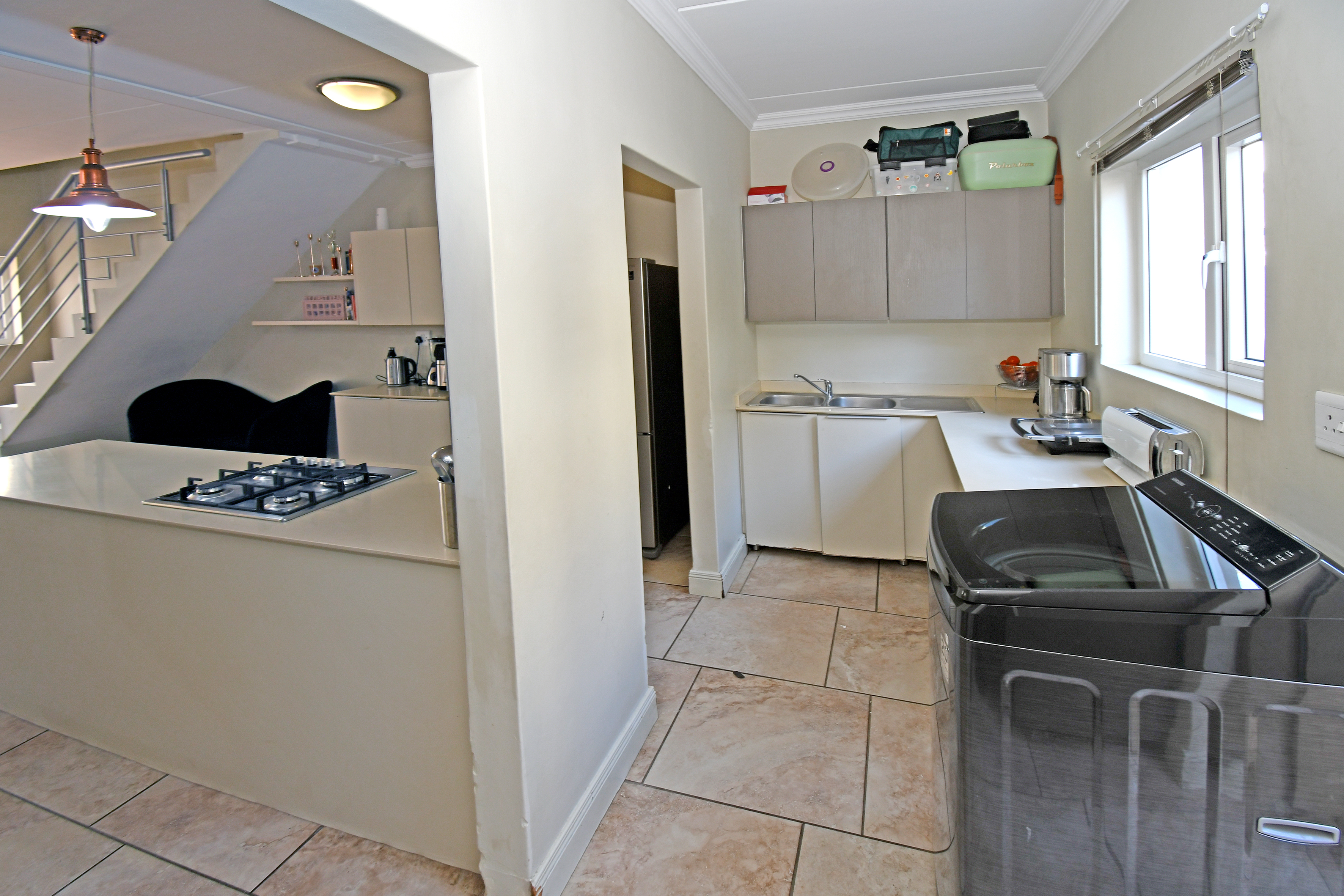 Discover this beautiful, airy residence perfect for a modern lifestyle. Located in a secure estate, this lock-up-and-go home features an expansive open-plan living area, ideal for dining and lounging. Sliding doors seamlessly connect the living space to a covered patio, complete with a built-in braai—perfect for entertaining! The stunning kitchen boasts a centre island, gas hob, electric oven, separate scullery and space for three under-counter appliances.