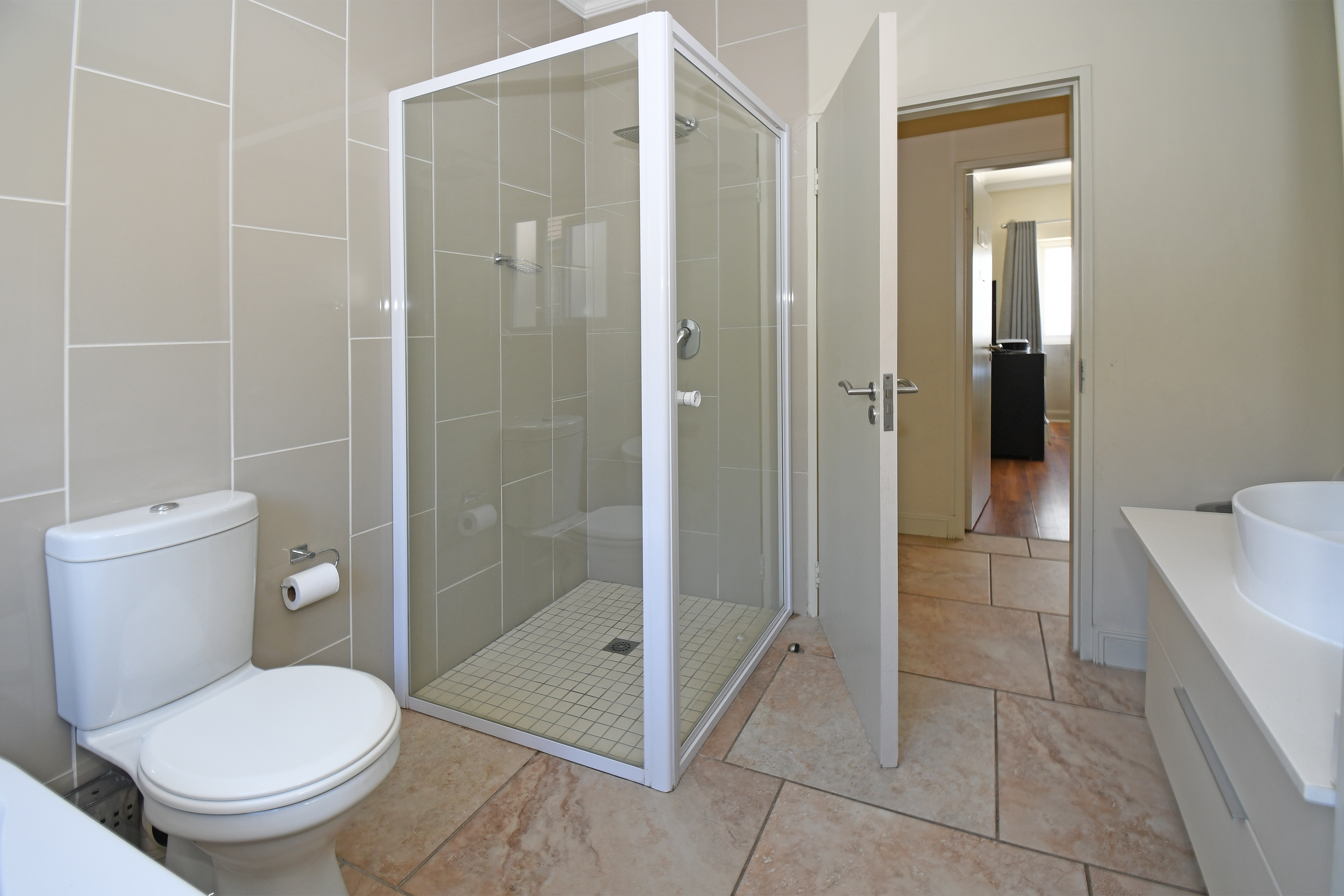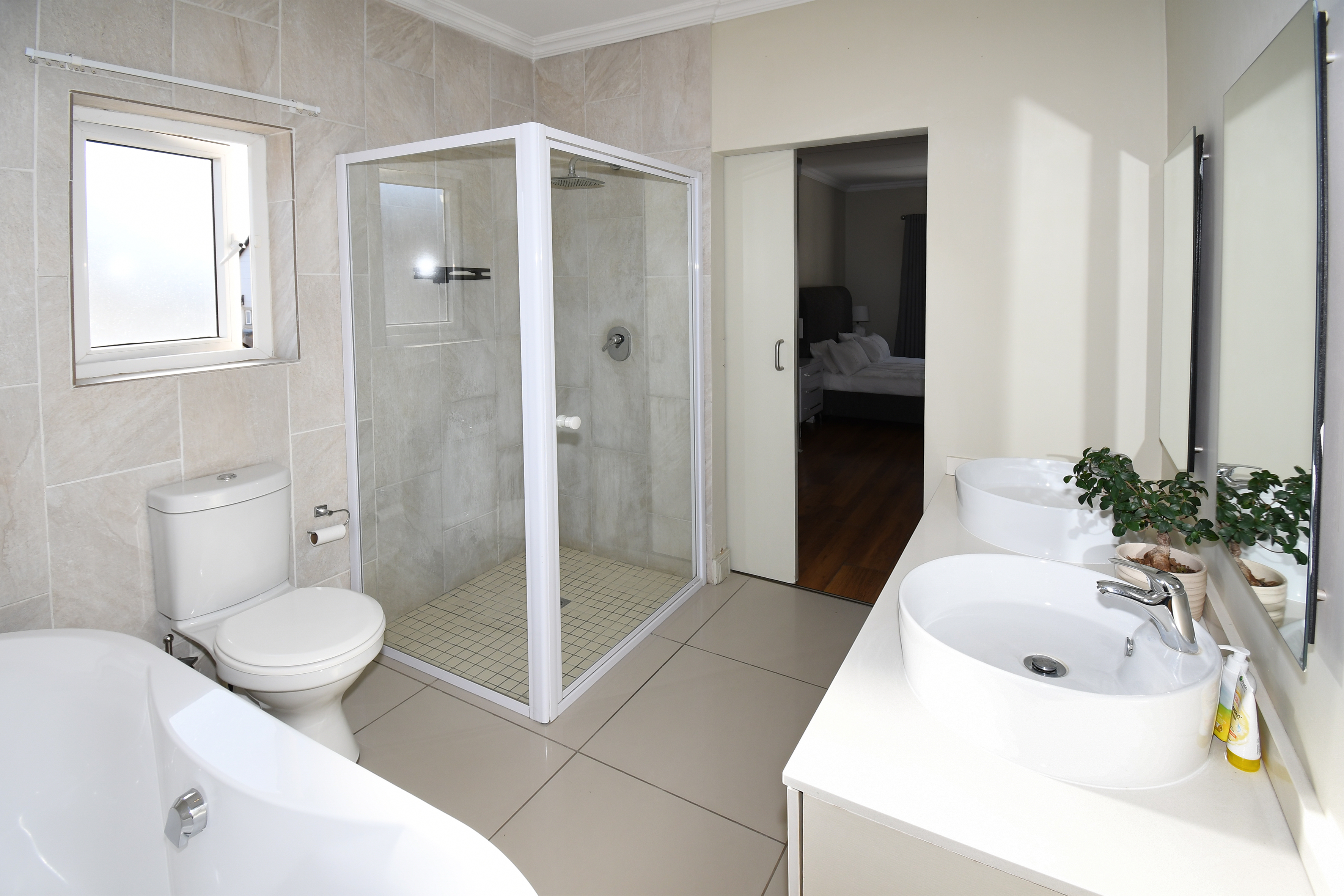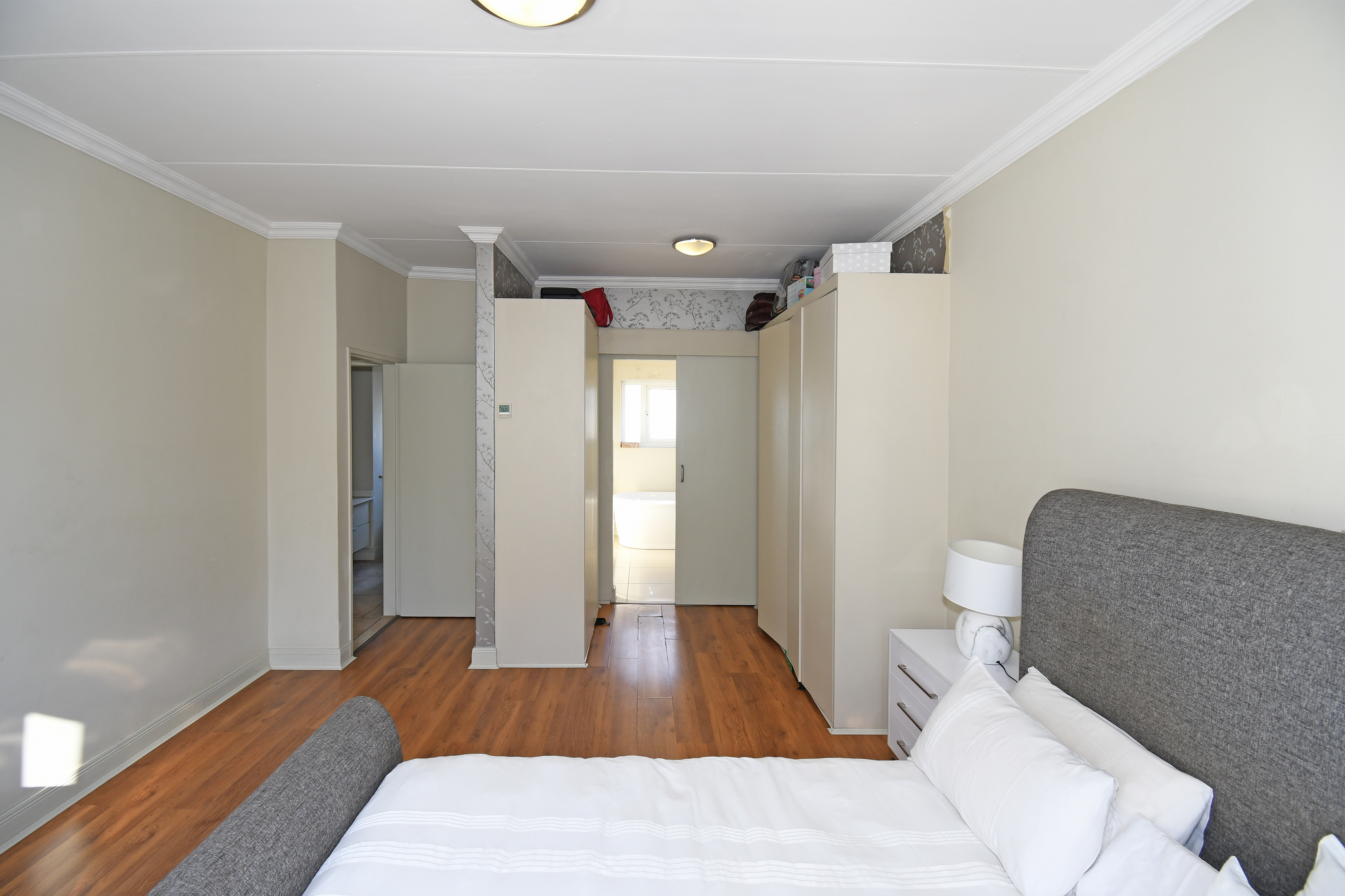 Upstairs, you'll find three well-appointed bedrooms. The main suite features a luxurious full en-suite bathroom. The second bathroom serves the two additional bedrooms, all equipped with ample cupboard space and stylish laminate flooring.
