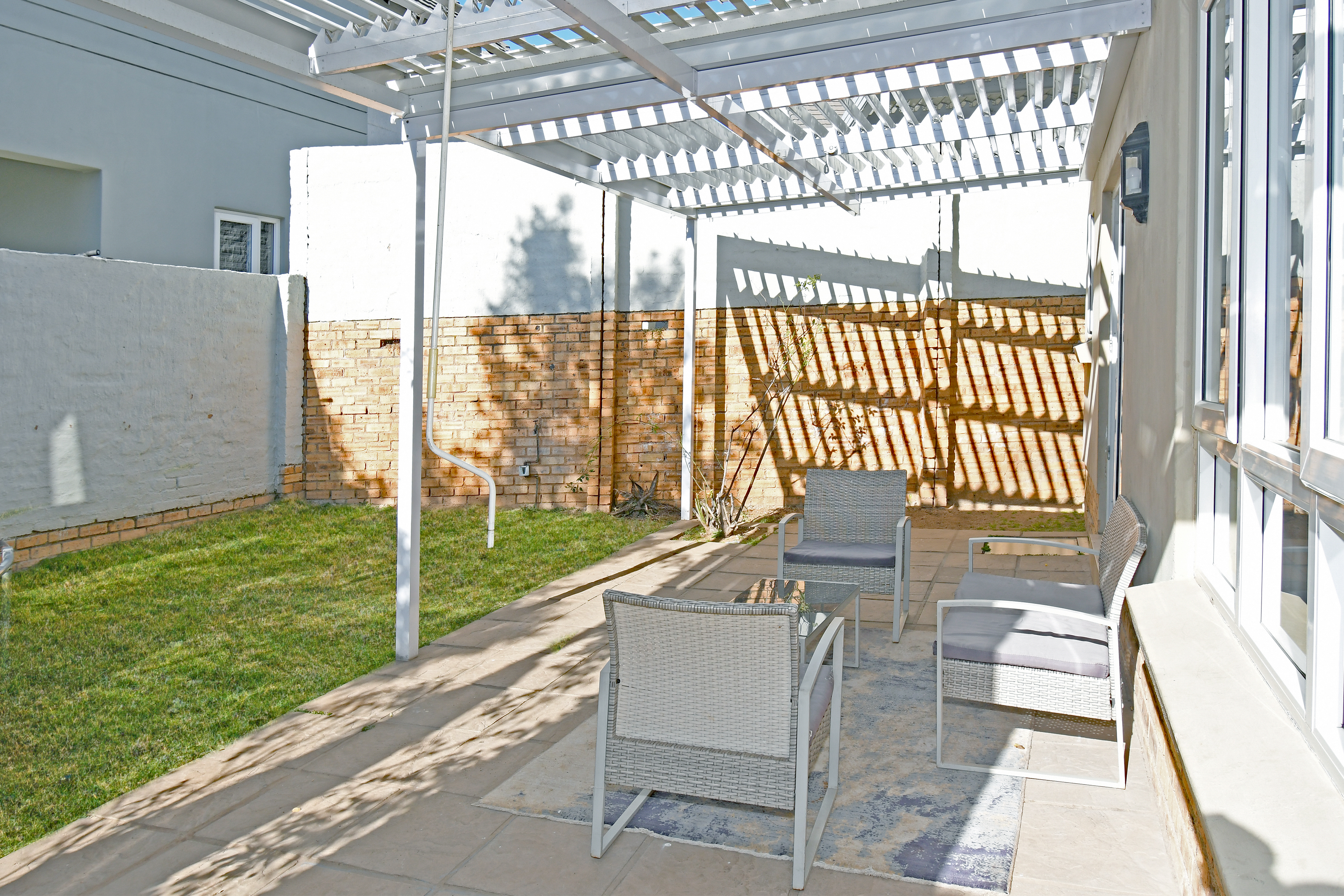 This exceptional home also includes a guest toilet on the lower level, a wrap-around pet-friendly garden, and an automated double garage. Enjoy peace of mind with 24-hour security and access control. The complex is conveniently situated close to major highways, Mall of Africa, Netcare Waterfall Hospital schools, a variety of amenities in the Kyalami and Waterfall areas.