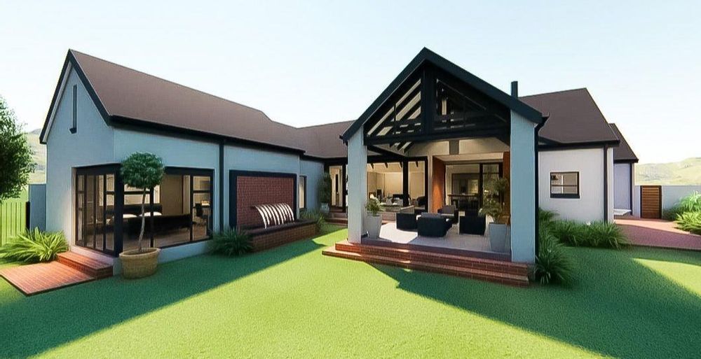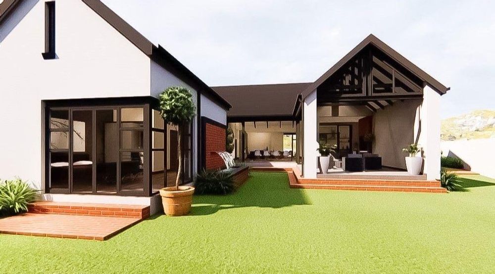 This Modern Farm style property offers 4 Bedrooms, 3 Bathrooms, kitchen with separate scullery, pantry, triple garages with open storage space, additional store-room and solar geyser plus panels. The design of the property is very modern and you will be part of the finishing process.