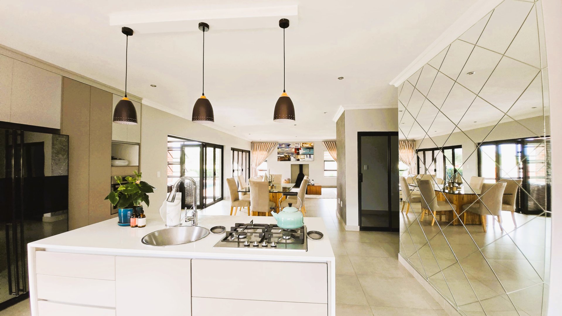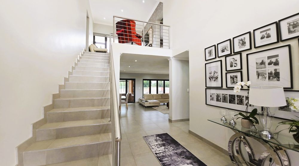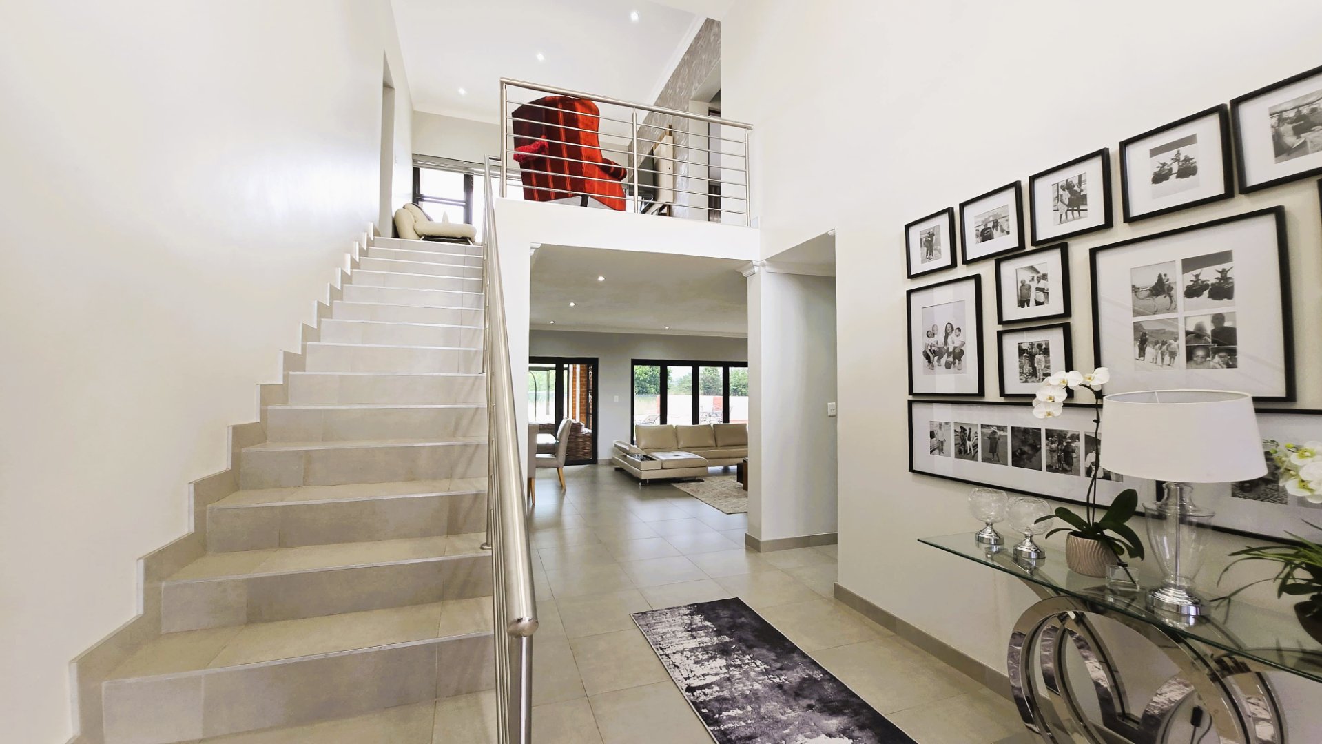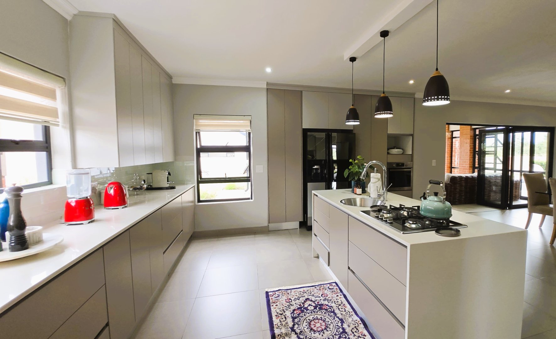 The front entrance opens to a spacious lobby that flows into a modern open-plan kitchen, dining, and lounge area. The kitchen features high-end finishes, a separate scullery, and a walk-in pantry - perfect for effortless entertaining and everyday convenience.