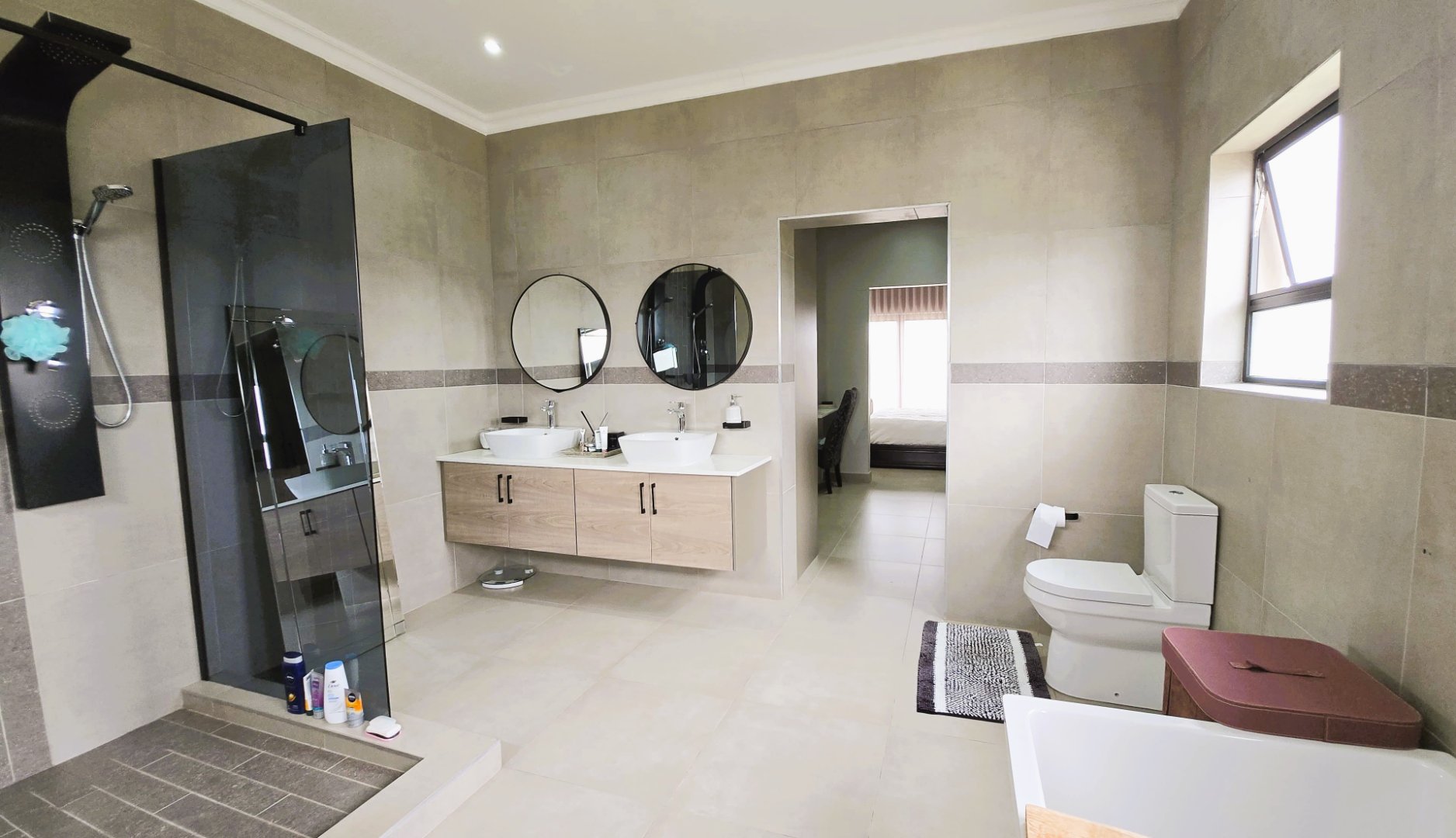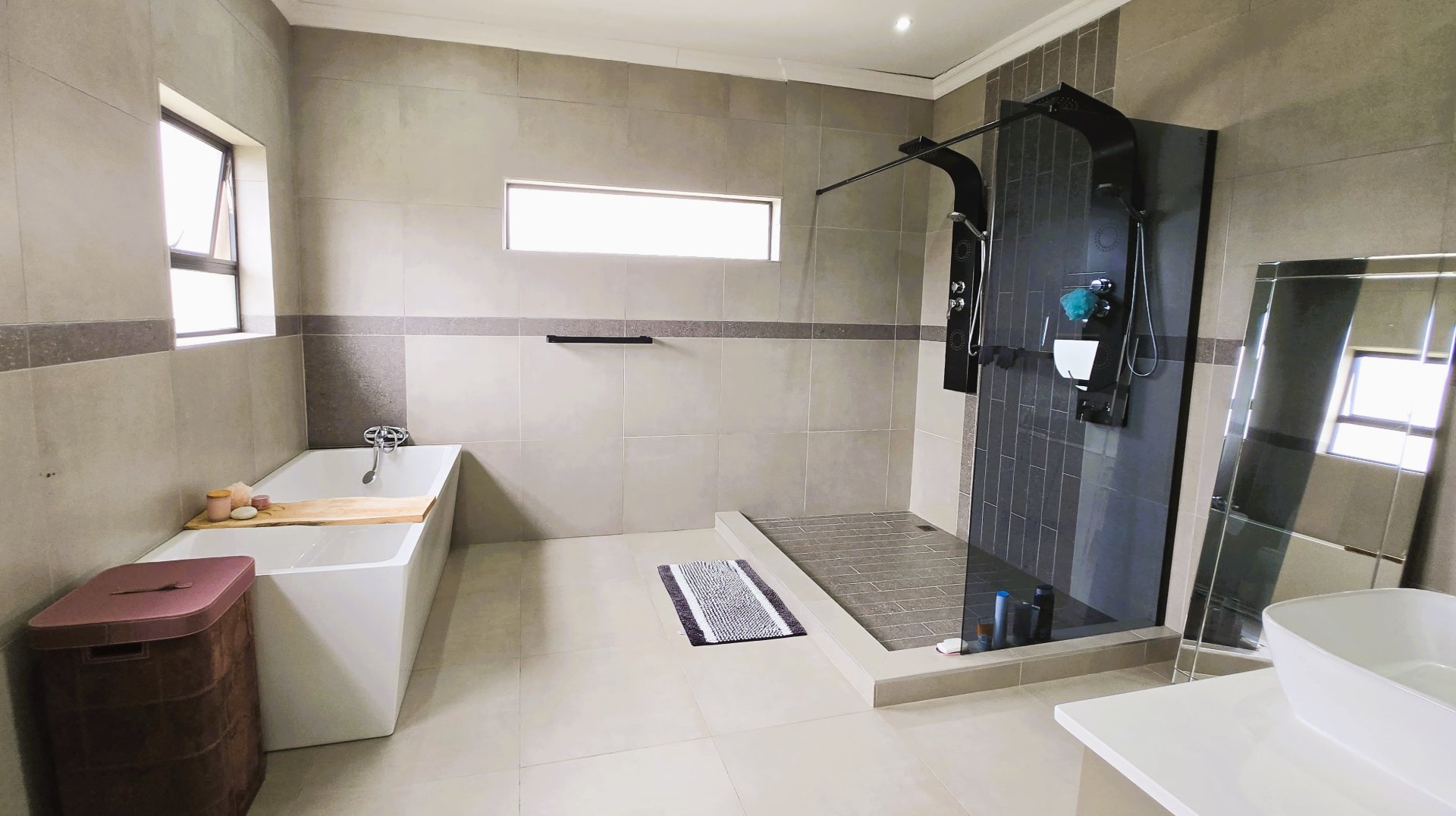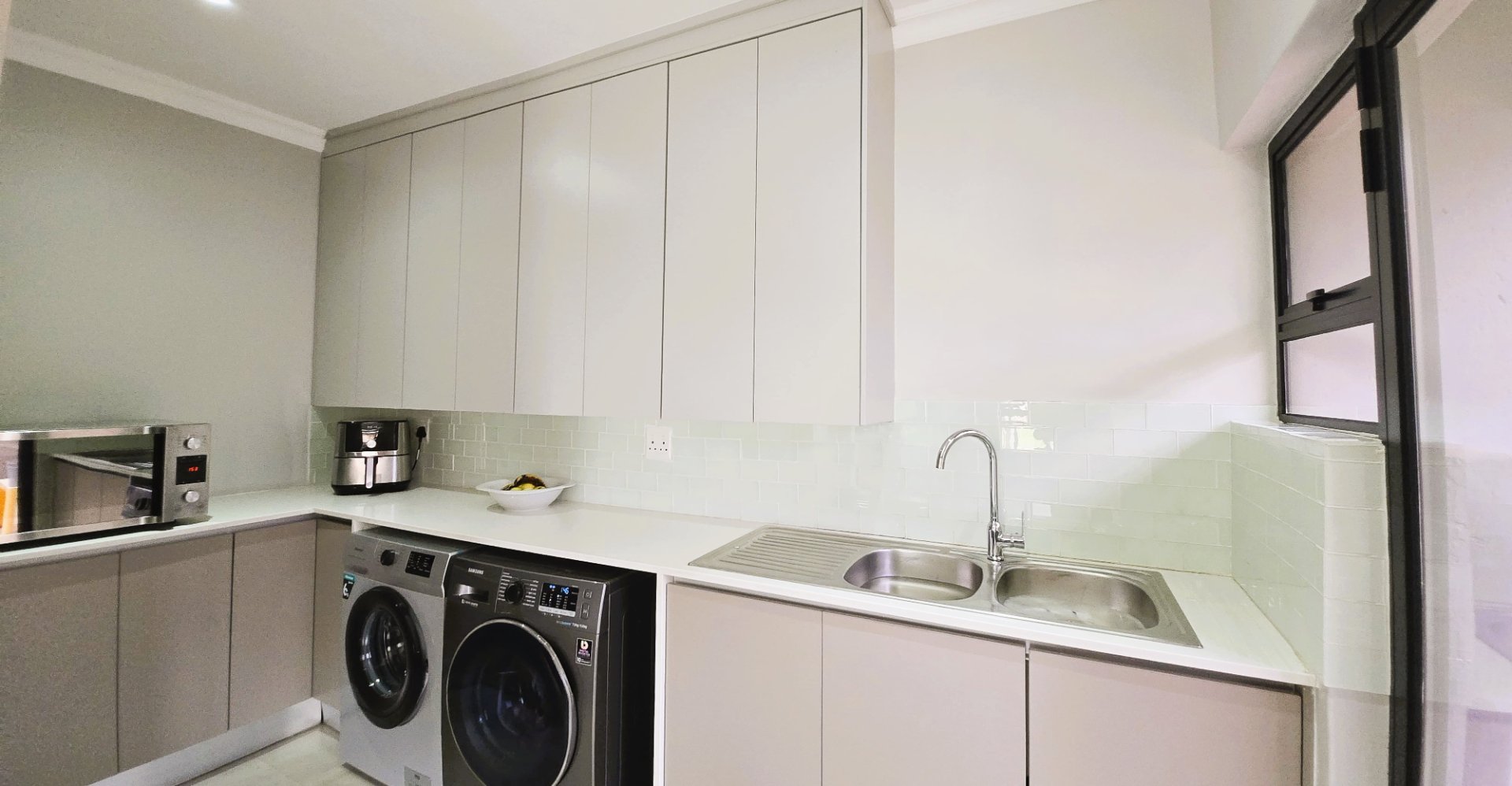The front entrance opens to a spacious lobby that flows into a modern open-plan kitchen, dining, and lounge area. The kitchen features high-end finishes, a separate scullery, and a walk-in pantry - perfect for effortless entertaining and everyday convenience.