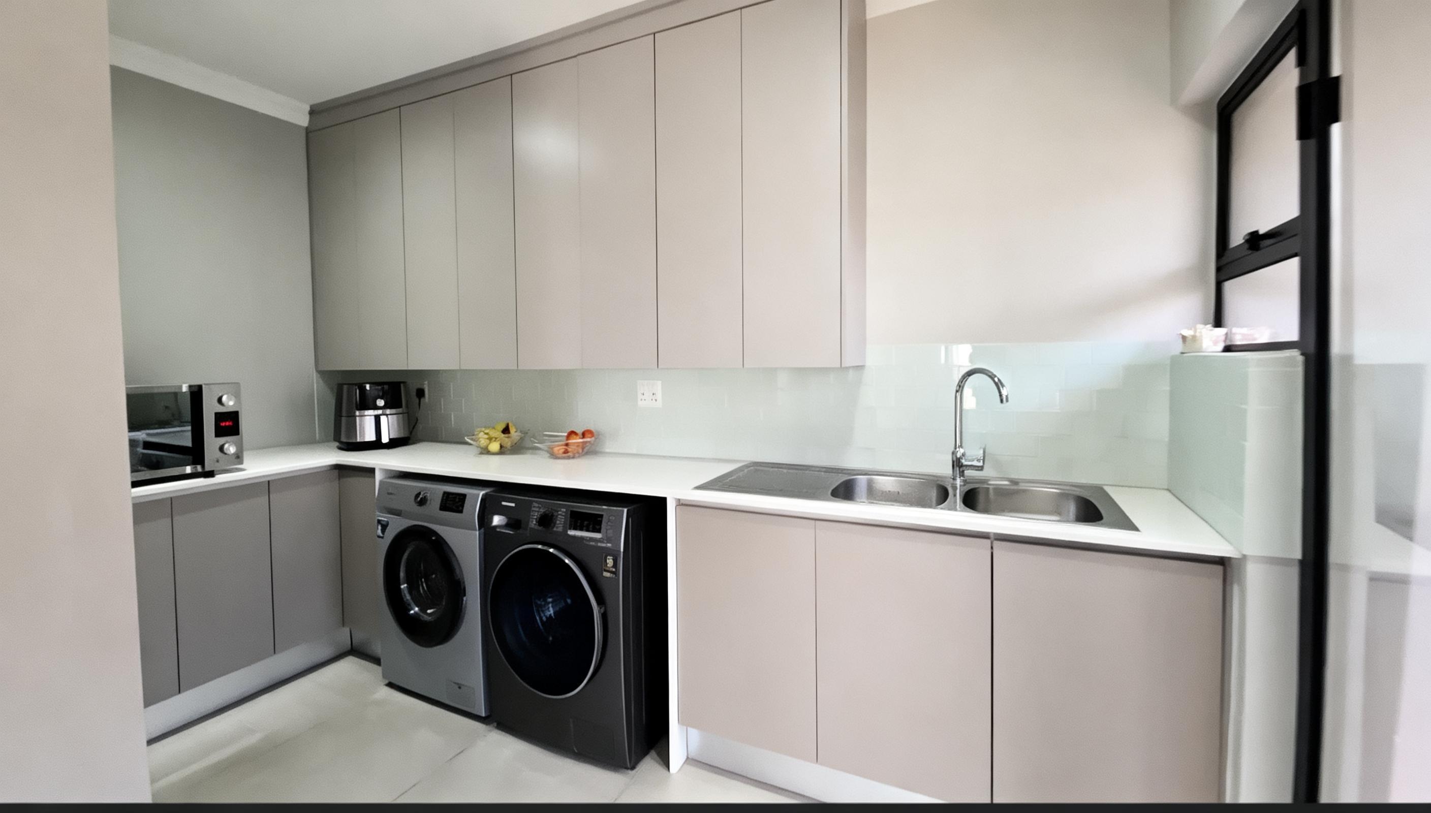 The grand entrance lobby welcomes you into a beautifully flowing open-plan living environment, where the lounge and dining areas seamlessly connect to a designer kitchen fitted with modern premium finishes, a separate scullery, and a spacious pantry—perfect for effortless entertaining and everyday luxury.