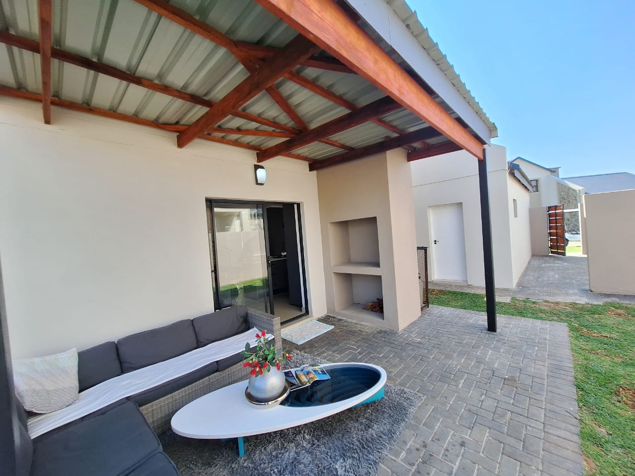THE PATIO OPEN SWITH ALUMINIUM SLIDING DOORS LEADING TO BRAAI AREA AND SPASIOUS, LAND SCAPED GARDEN.