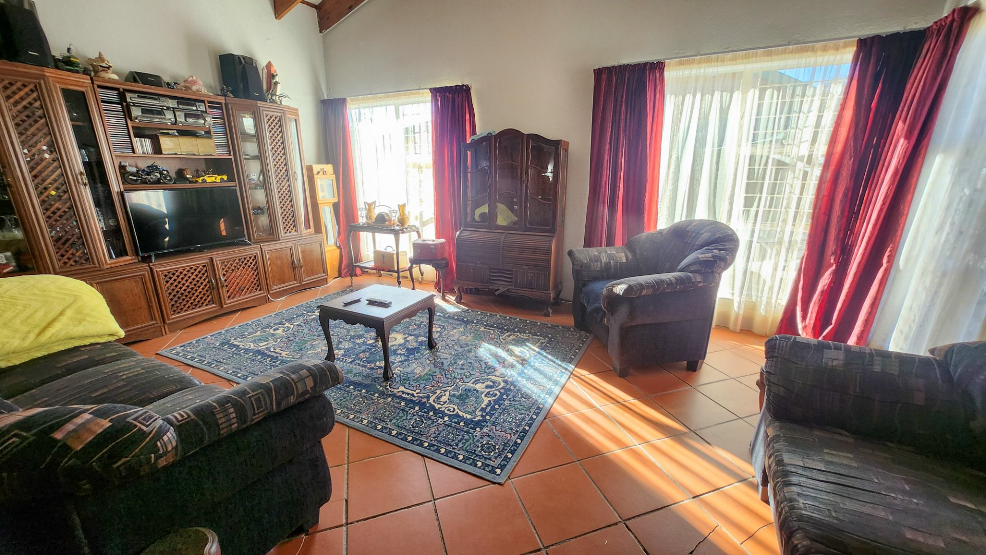 The living areas include a lounge, dining area, tv room and kitchen, all with a functional layout that could easily be modernised. Outside, the double garage offers secure parking, and the yard provides space for a garden or entertainment area.