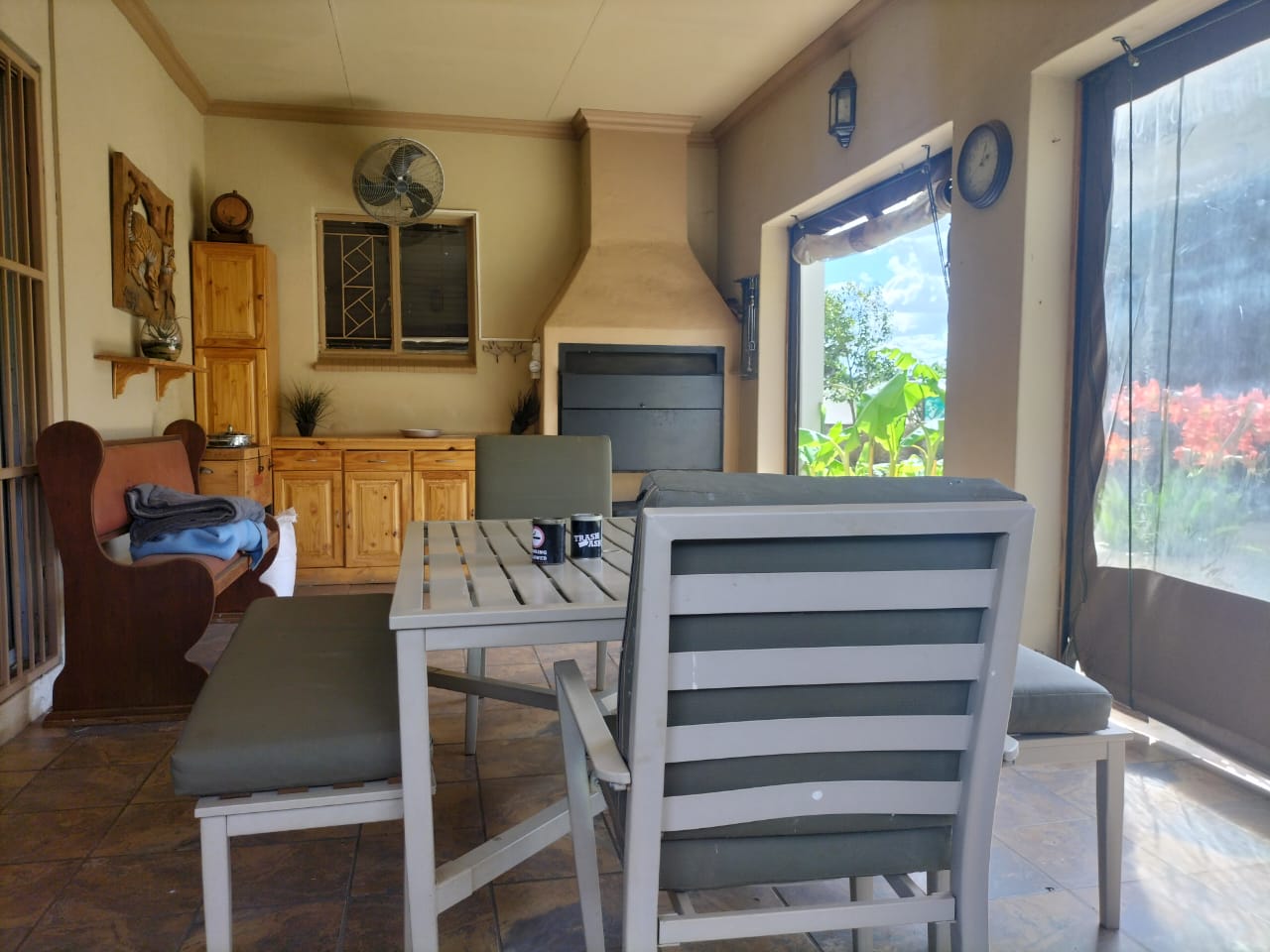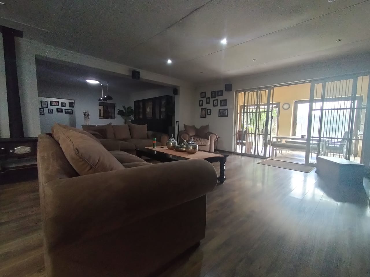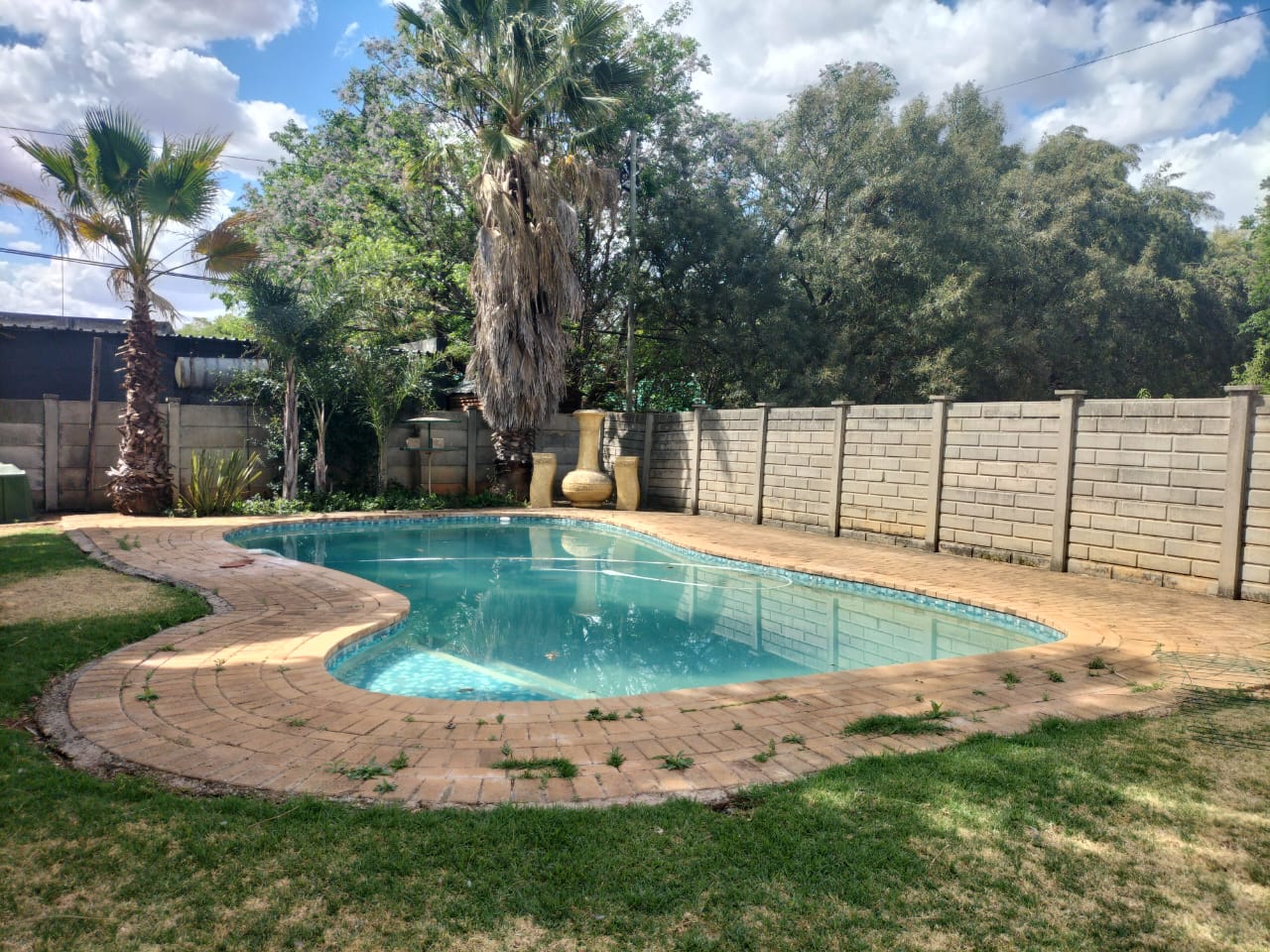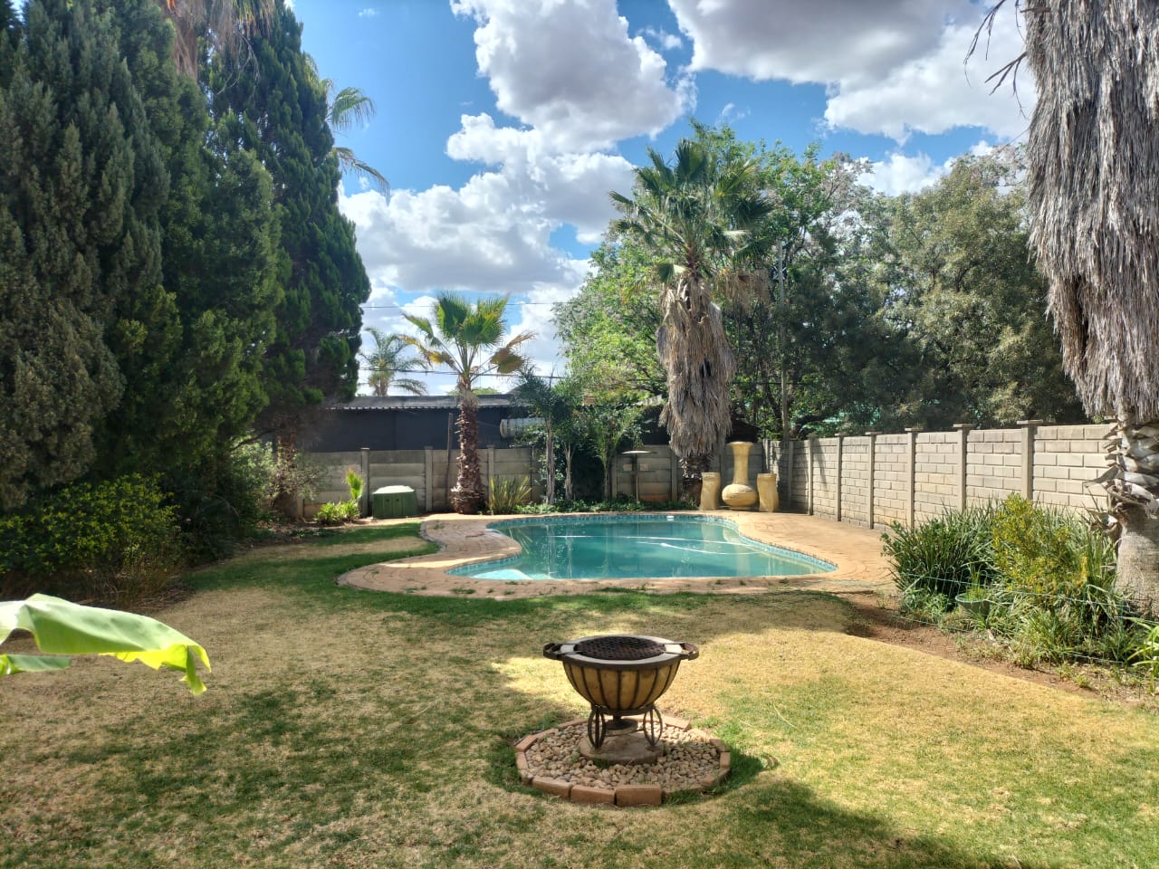 Discover the epitome of comfort and entertainment in this exquisite 4-bedroom, 2-bathroom home. The spacious kitchen boasts ample built-in cupboards, a pantry, scullery, and laundry area. Entertain guests in style with a generous open-plan bar and entertainment room, complete with a pool table area. A separate lounge and dining room offer more intimate gatherings, while a dedicated study provides a quiet workspace. Step outside to a verandah with roller blinds and a built-in braai, overlooking a sparkling swimming pool, vegetable garden, and a charming arbour under shade netting. Added conveniences include 5 garages, an electric gate, CCTV security, and a borehole.