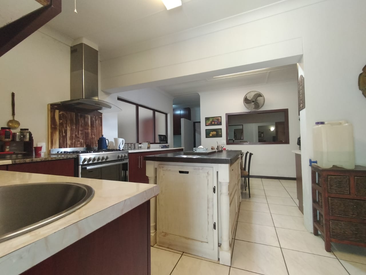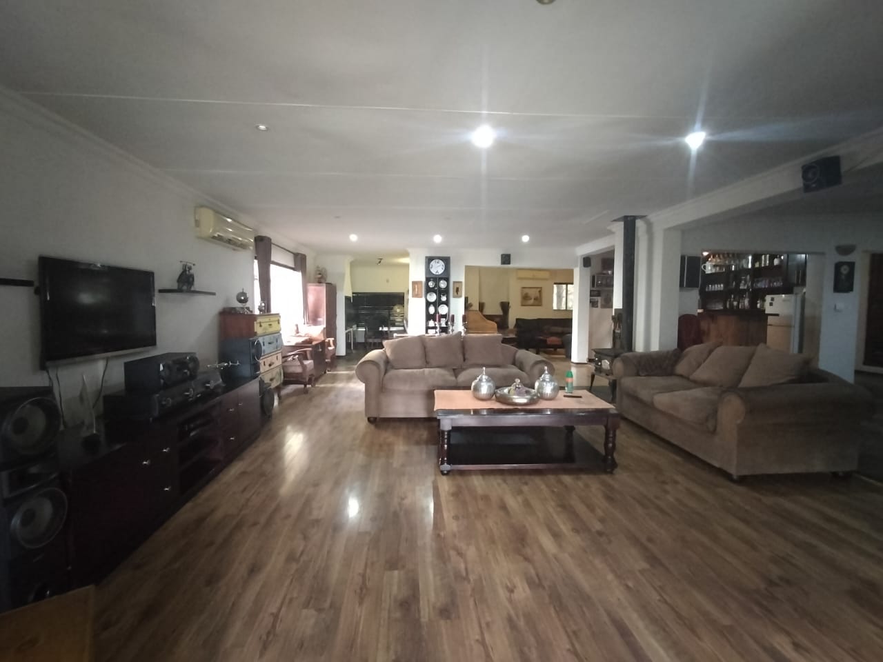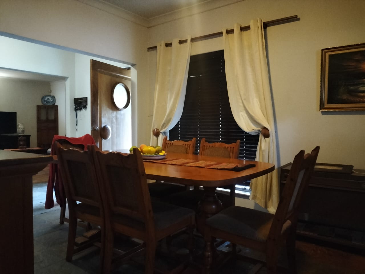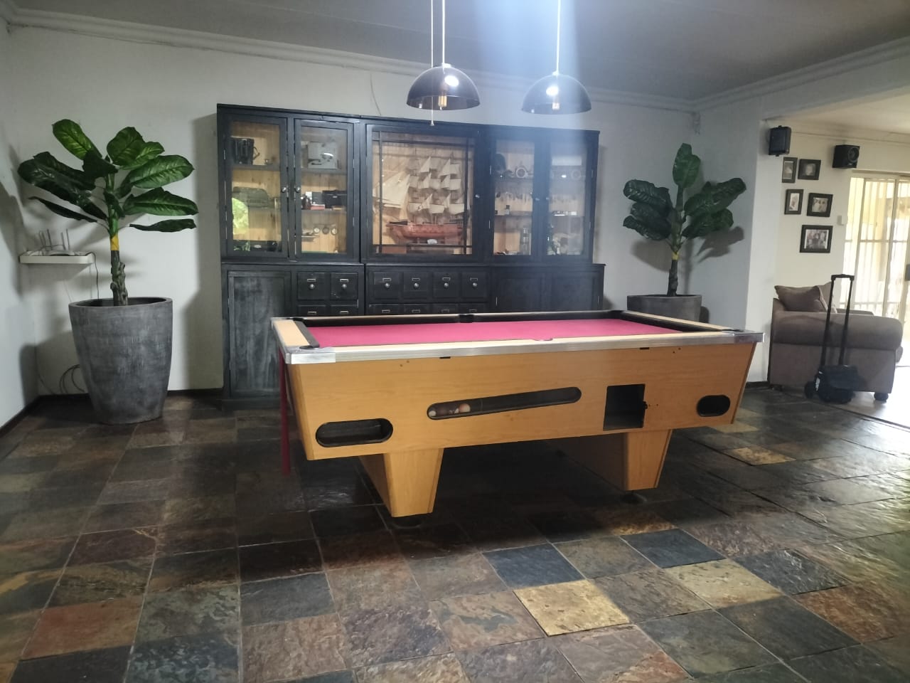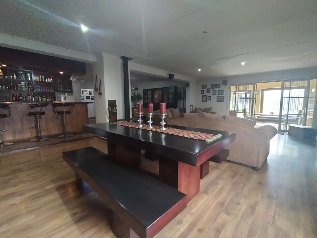 Discover the epitome of comfort and entertainment in this exquisite 4-bedroom, 2-bathroom home. The spacious kitchen boasts ample built-in cupboards, a pantry, scullery, and laundry area. Entertain guests in style with a generous open-plan bar and entertainment room, complete with a pool table area. A separate lounge and dining room offer more intimate gatherings, while a dedicated study provides a quiet workspace. Step outside to a verandah with roller blinds and a built-in braai, overlooking a sparkling swimming pool, vegetable garden, and a charming arbour under shade netting. Added conveniences include 5 garages, an electric gate, CCTV security, and a borehole.
