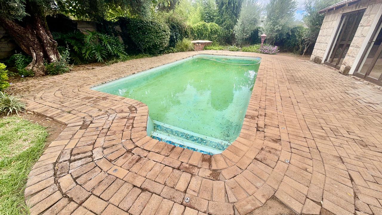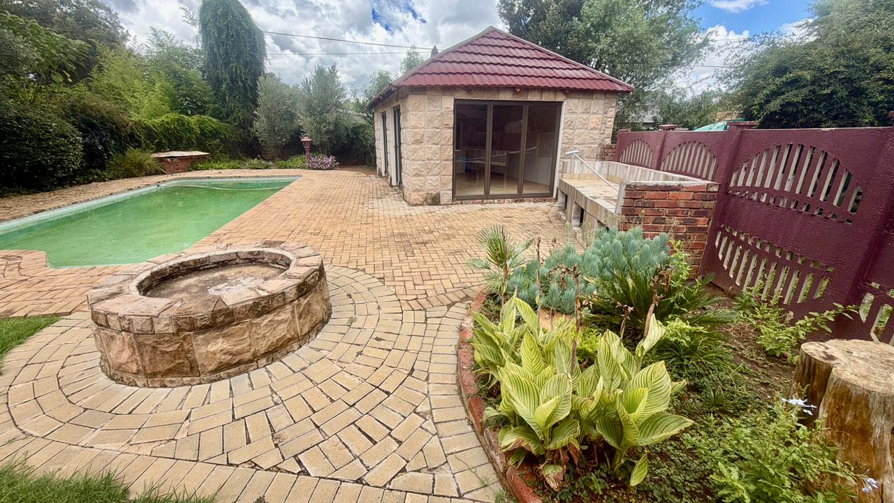 Enclosed braai room with built-in braai opening directly onto the sparkling swimming pool
