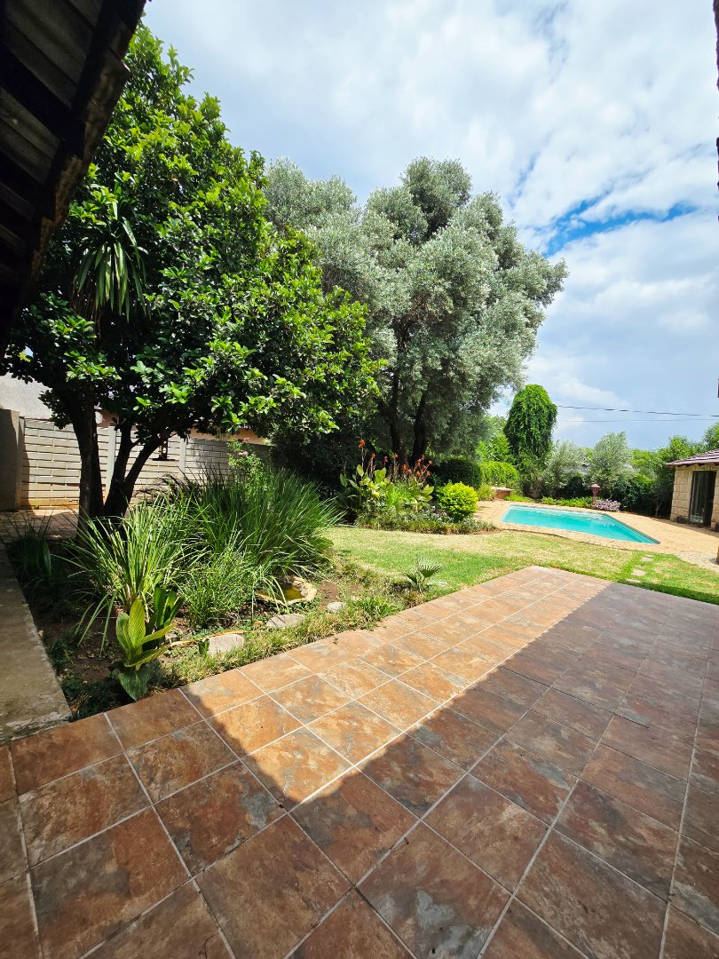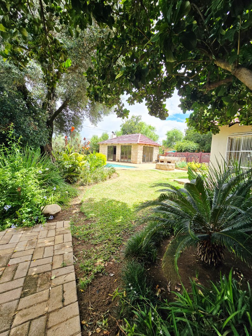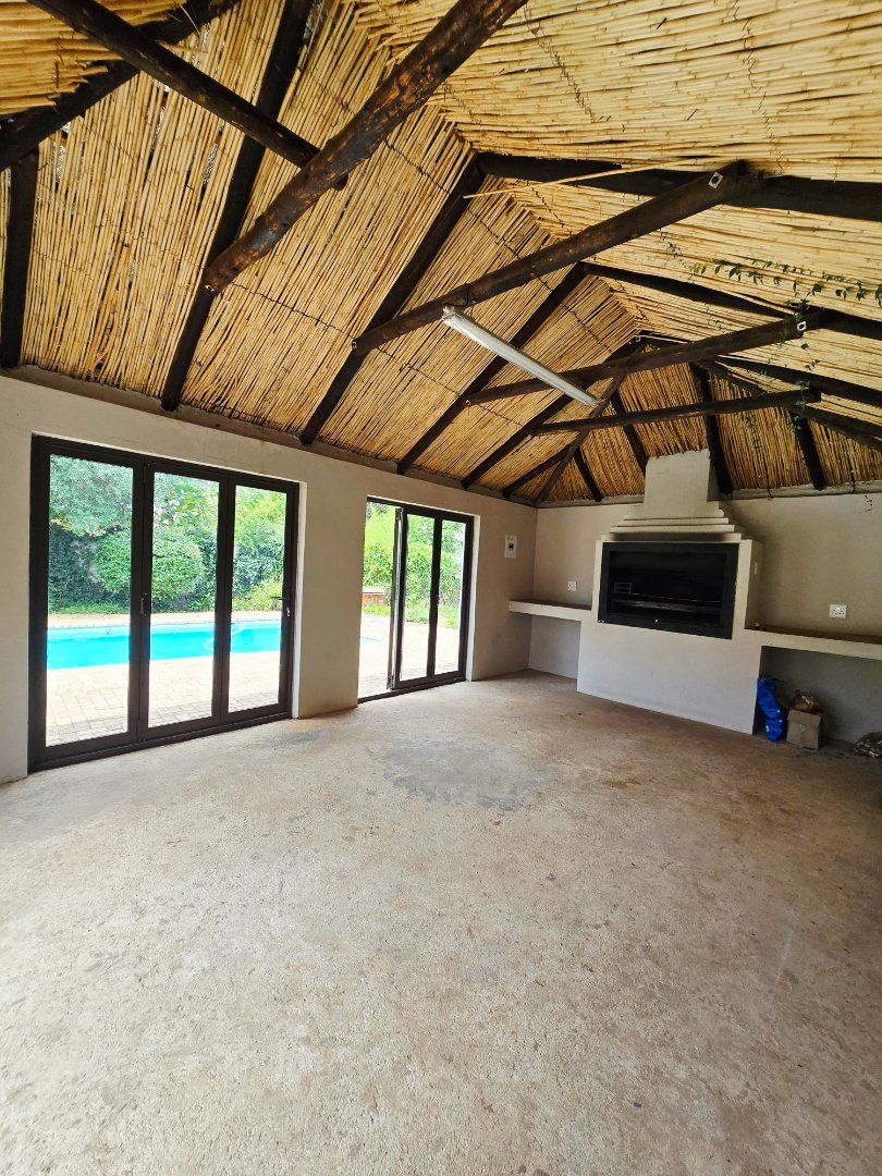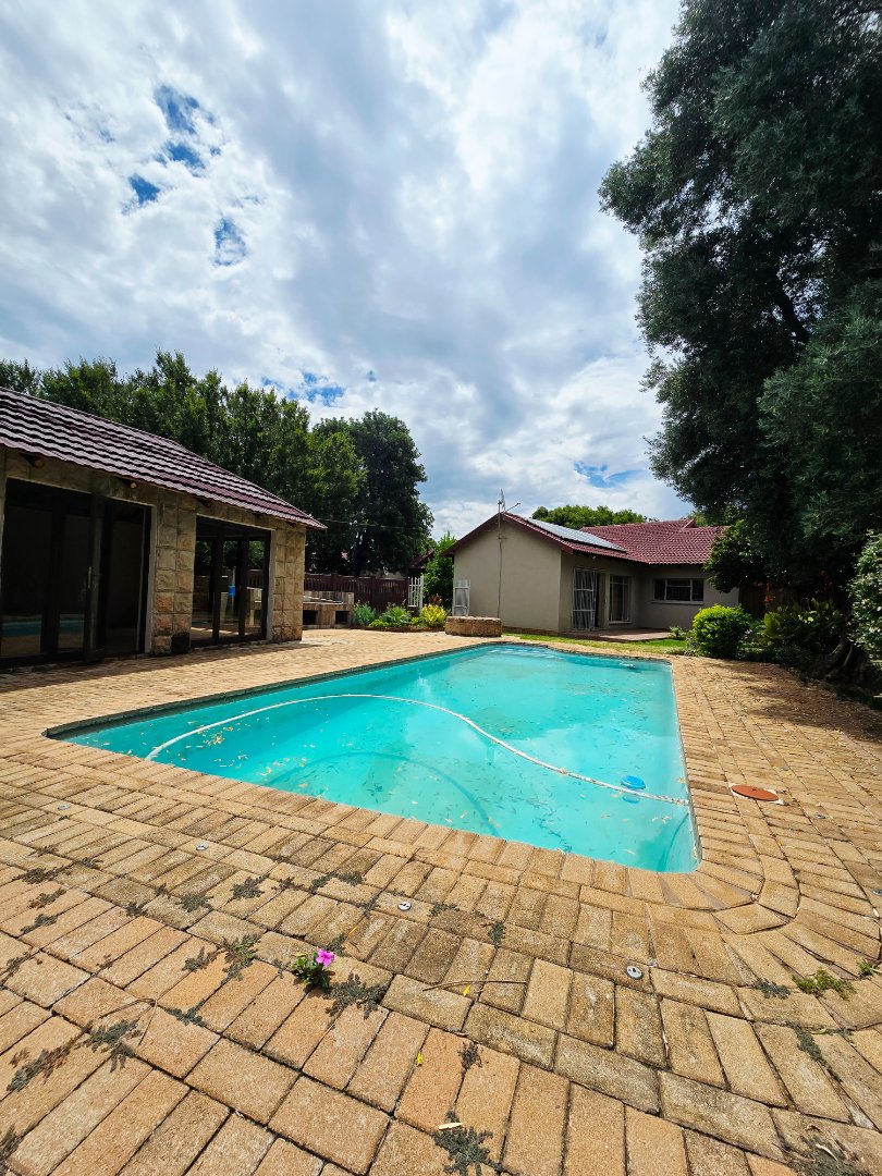 An entertainer’s dream awaits with a covered braai room featuring a built-in braai, opening directly onto a sparkling swimming pool. The large, well-maintained garden offers plenty of space for kids, pets, and outdoor gatherings. Added value comes from a strong borehole and a 5,000-liter water tank, supplying both the home and garden.