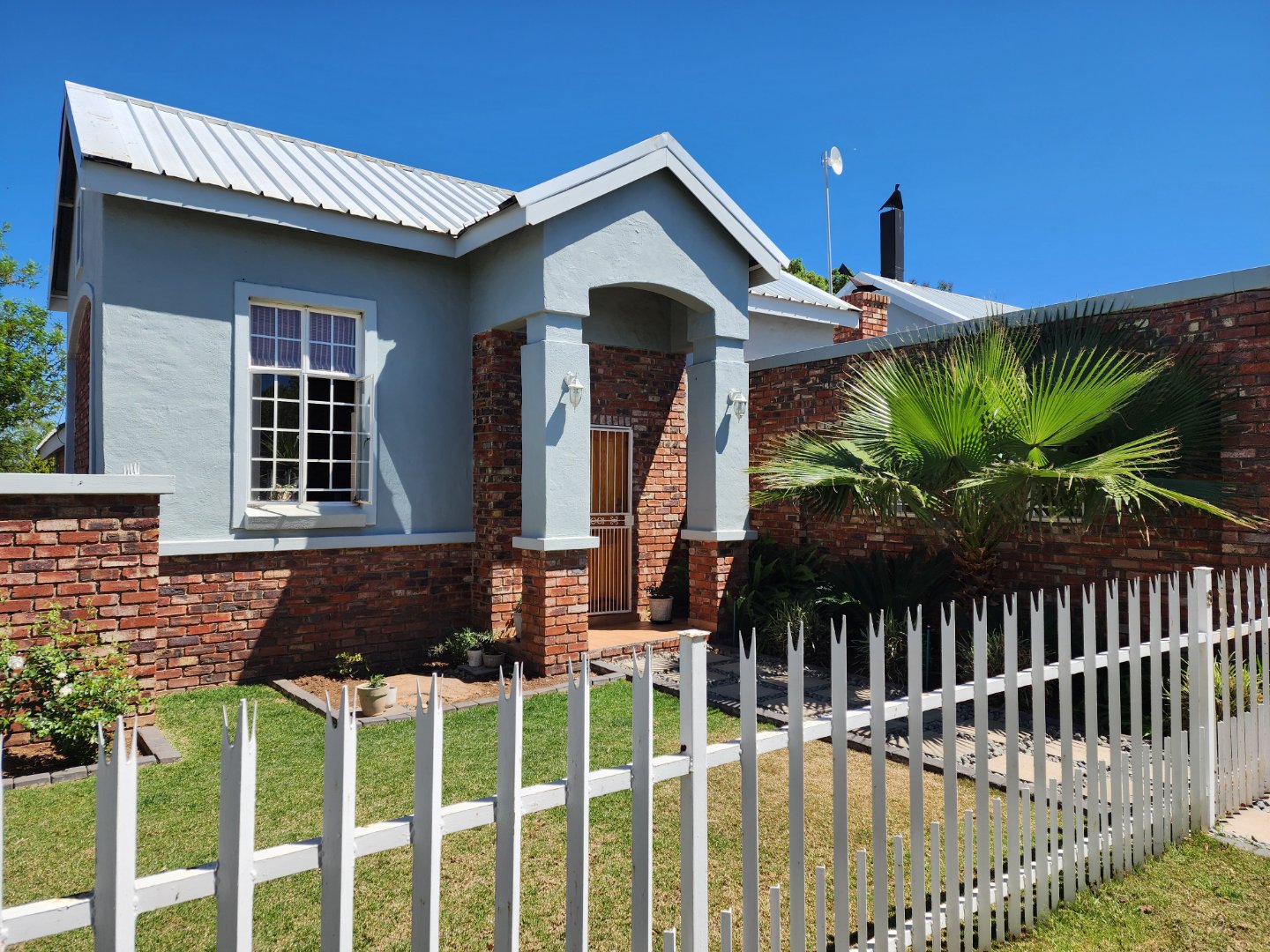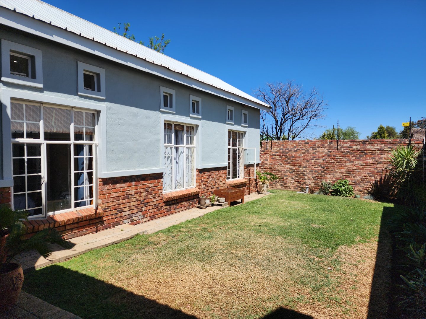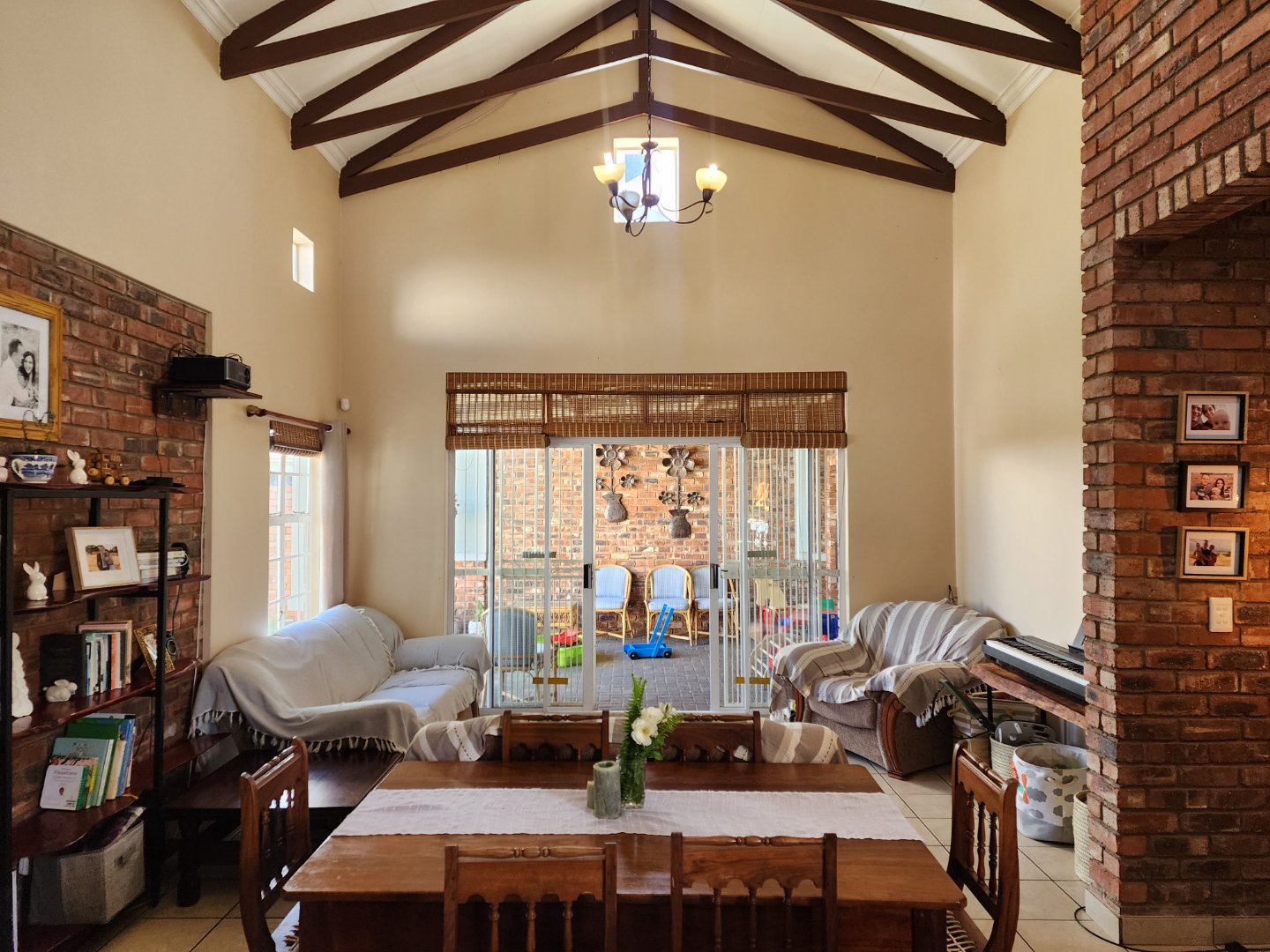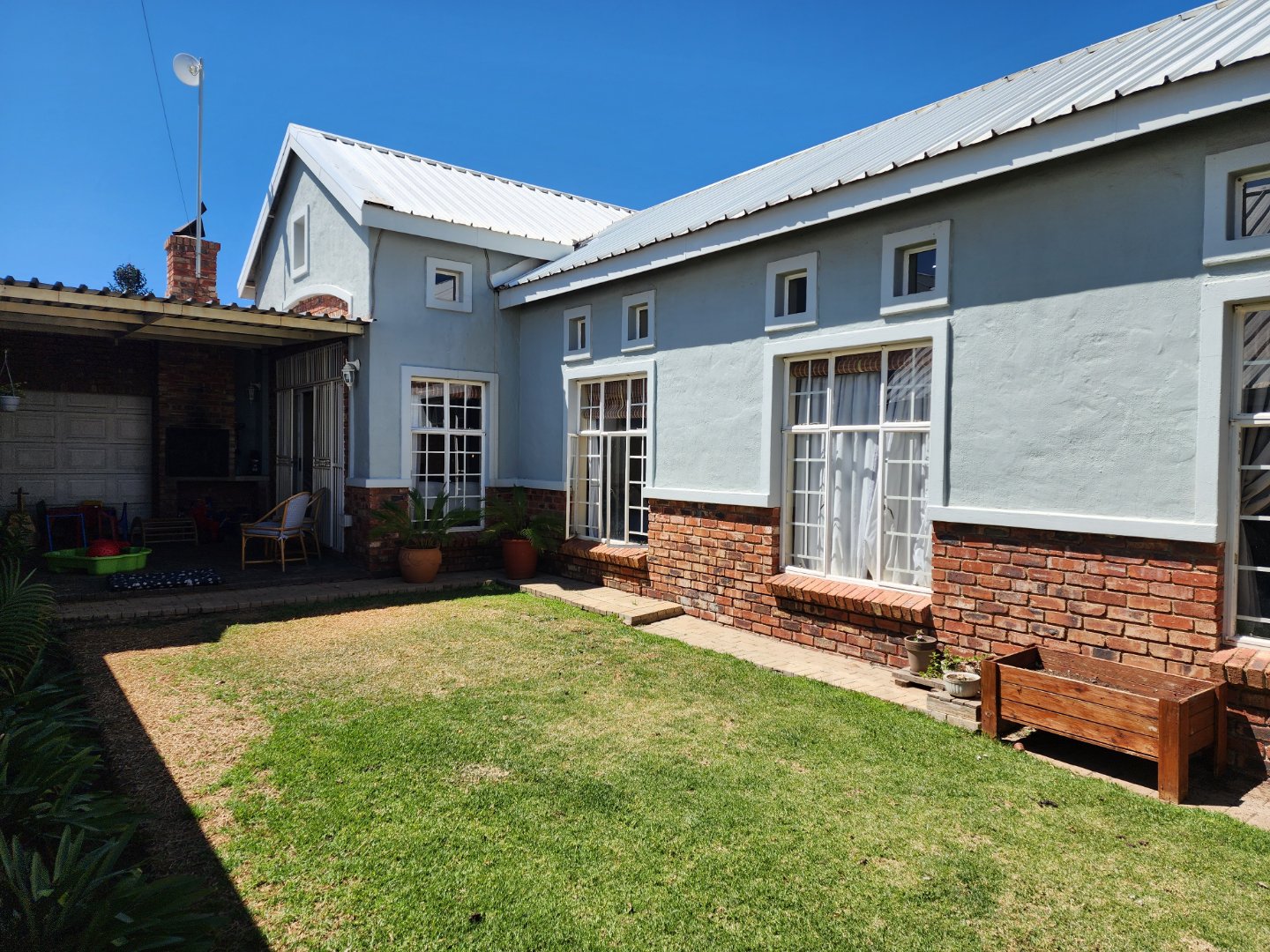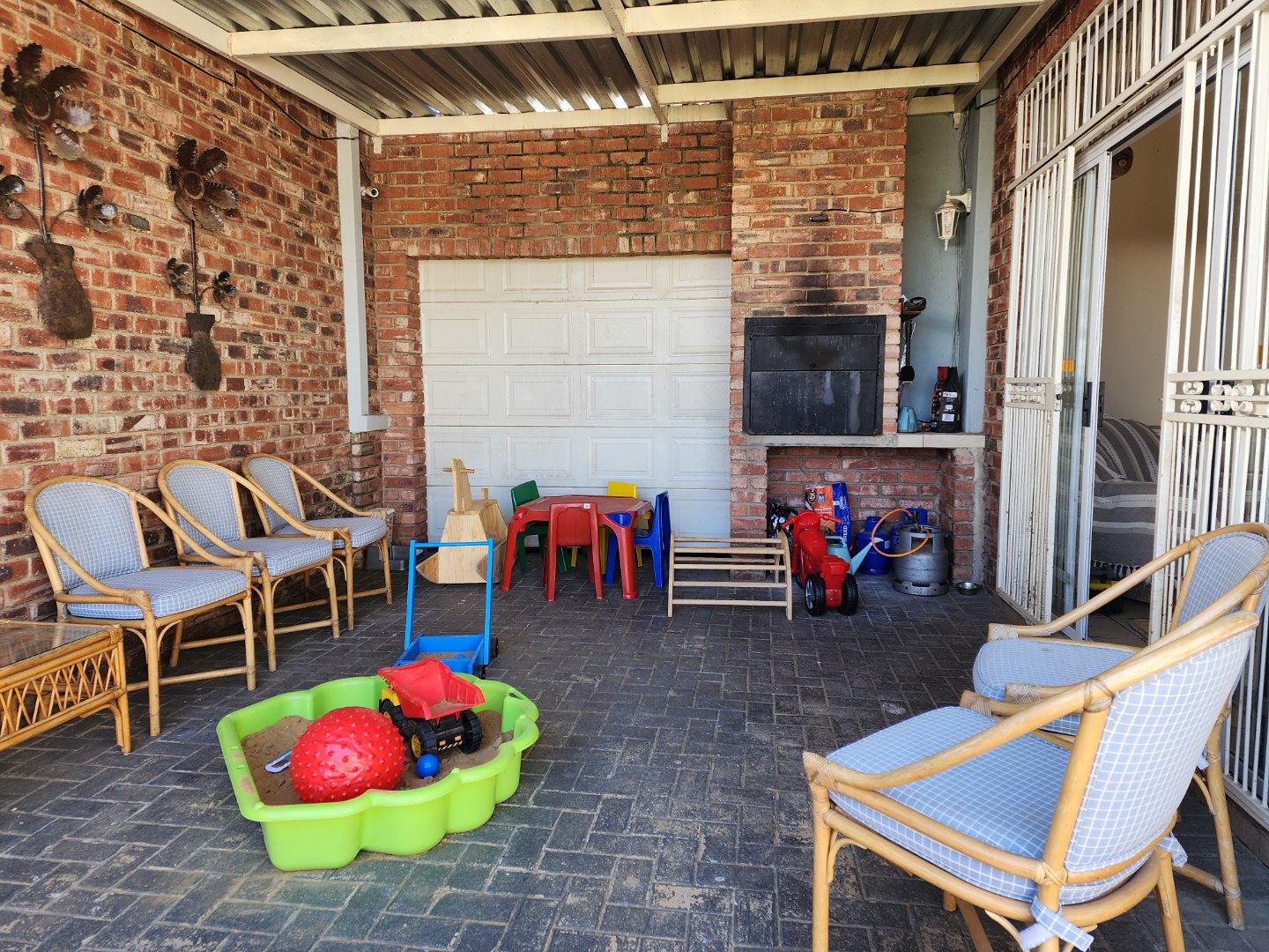 * Covered patio with built-in braai, overlooking a small private garden.