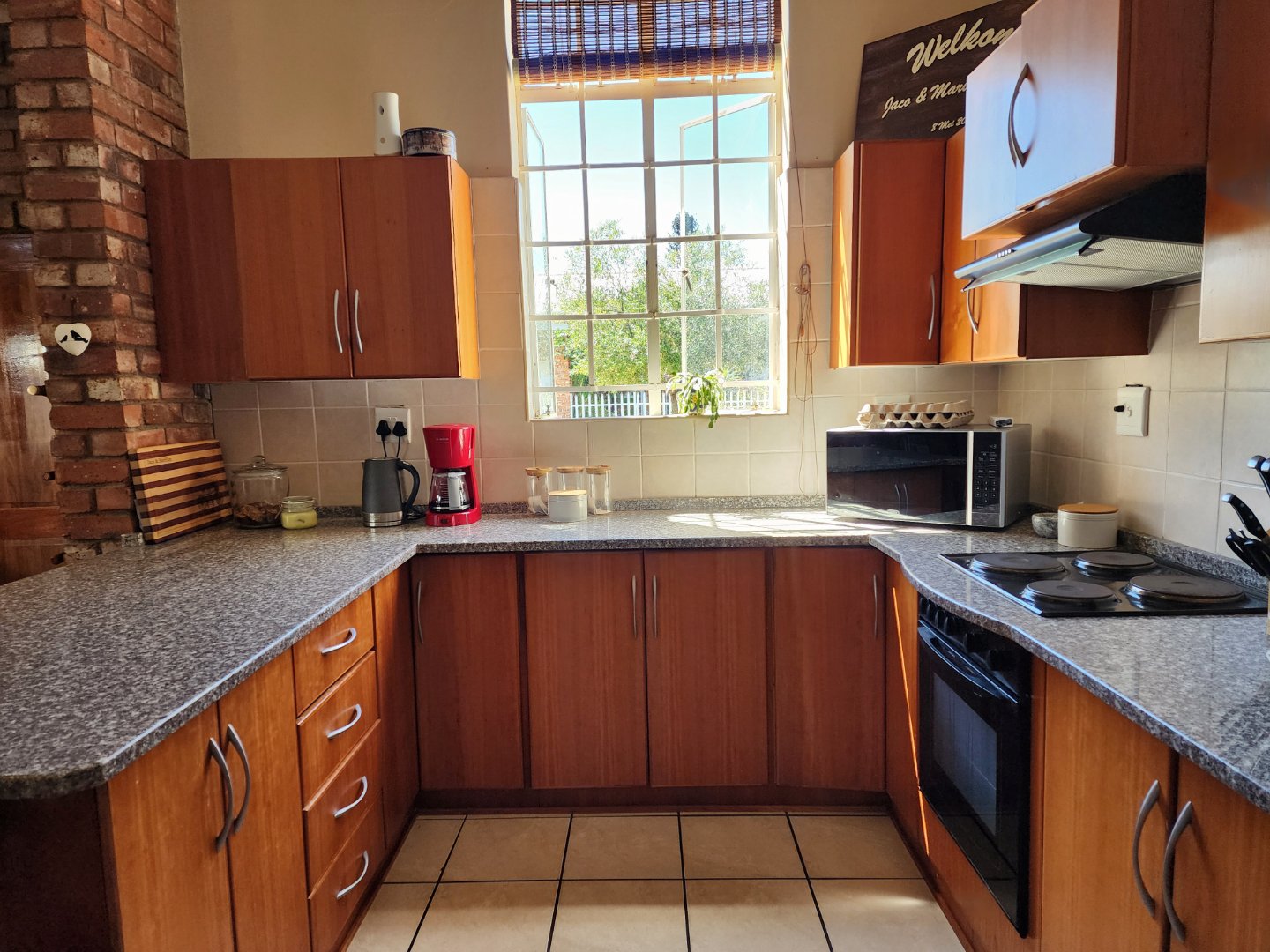 * Kitchen fitted with quality built-in cabinets and granite tops.