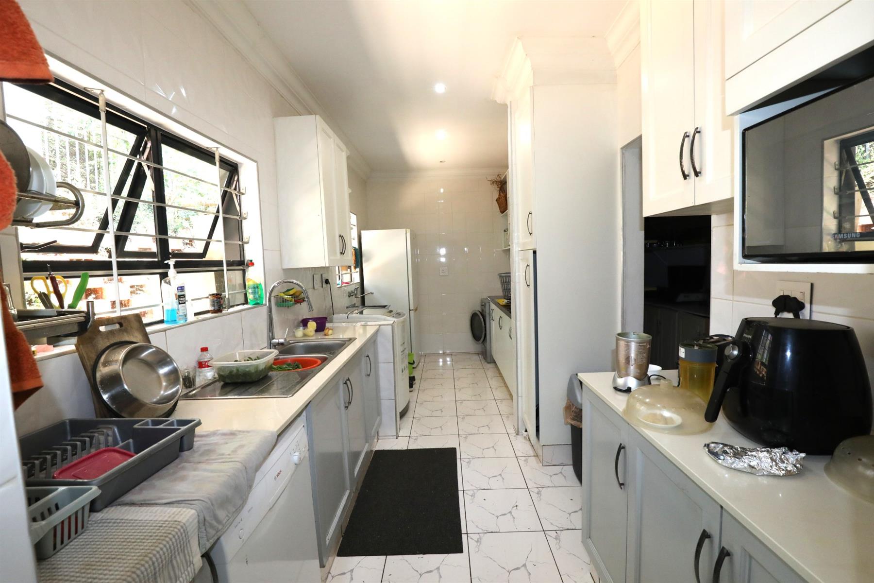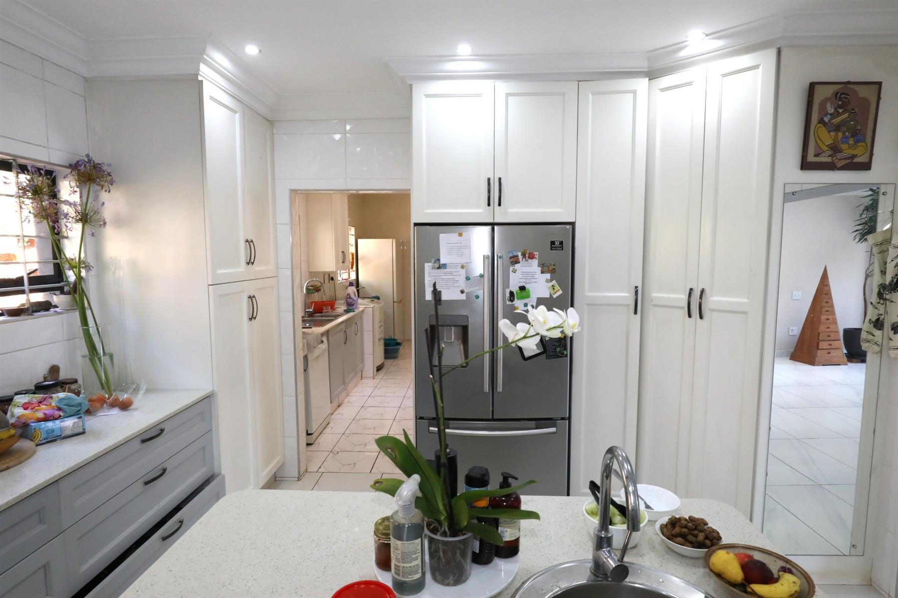 This property doesn`t just stop at beautiful interiors. It comes with practical amenities such as a scullery and a laundry room, making household chores more manageable. Additional features include air conditioning for those warm summer days, automated garage doors for your convenience, and secure parking options, including a double garage and a carport.