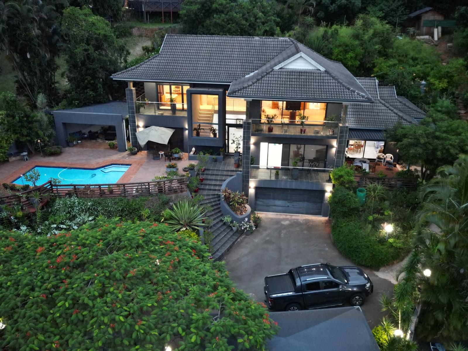 Whether you are hosting gatherings or enjoying quiet family evenings, this La Lucia gem offers everything you need for a comfortable and stylish lifestyle. Enjoy the luxury of a splash pool, outdoor toilet, and the convenience of dishwasher and washing machine connections, all within a charming yard that invites you to create lasting memories.