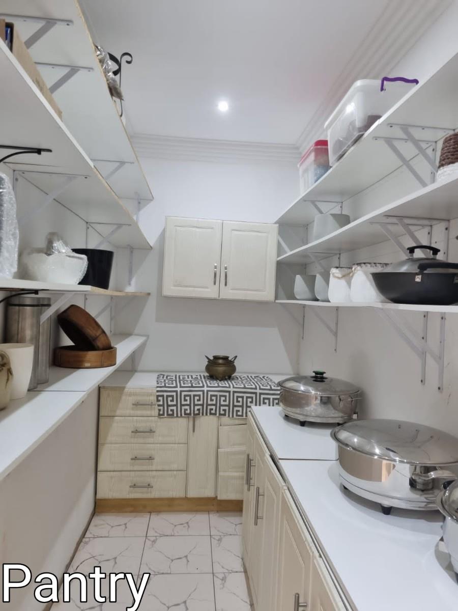 The heart of this home is an inviting open-plan kitchen, complete with granite tops, an oven and hob, and a pantry for all your culinary needs. Adjacent to the kitchen is a cozy lounge, perfect for family gatherings, and a dining room that offers an ideal space for entertaining guests. Step outside to the lovely veranda, which overlooks a landscaped garden and a refreshing pool, offering a tranquil retreat for outdoor enjoyment.