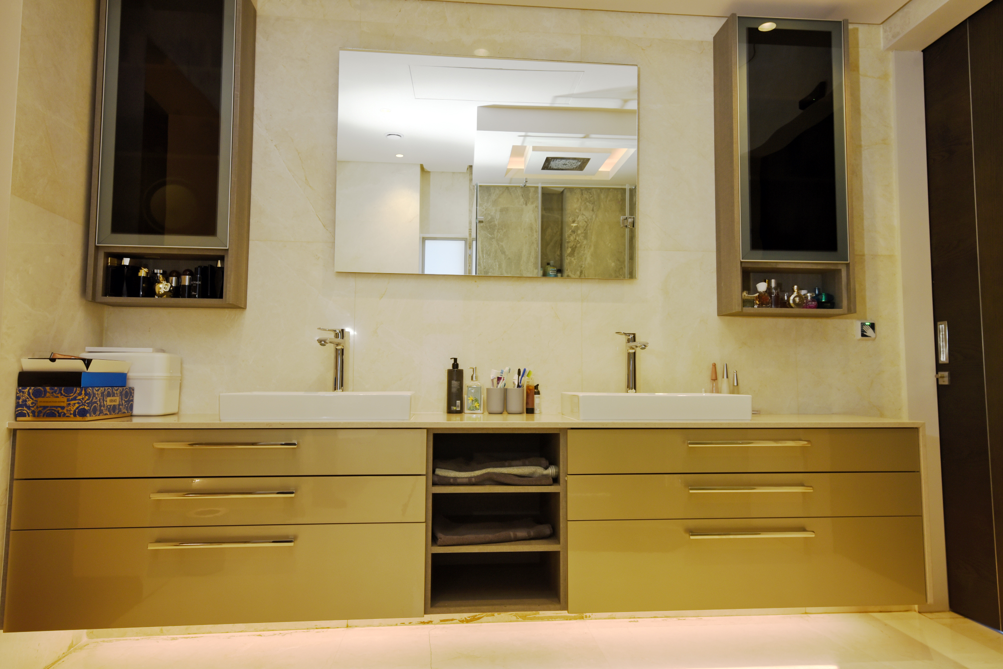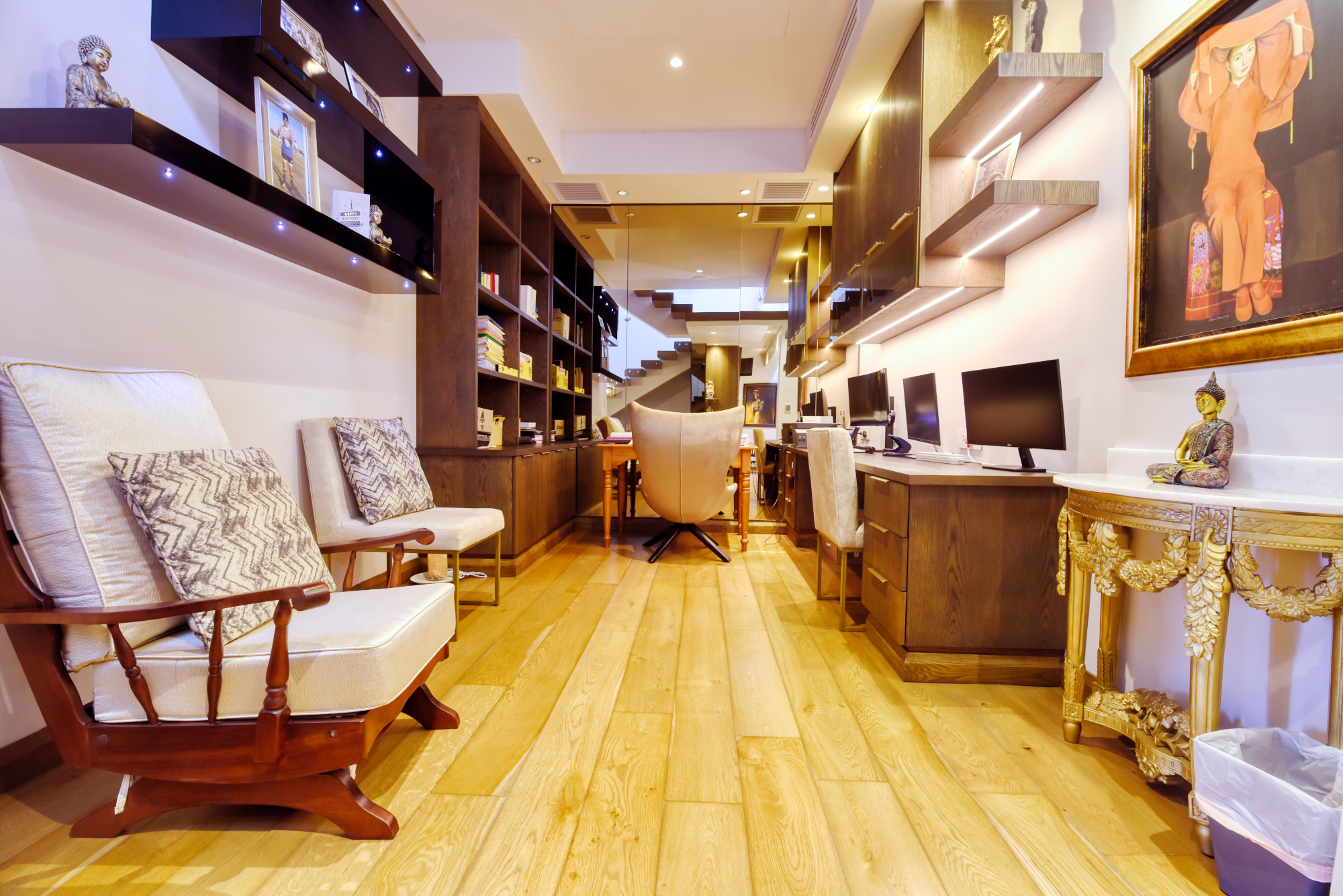 A generous mirrored study is also located on the middle floor, with a double volume reading and relaxation area.