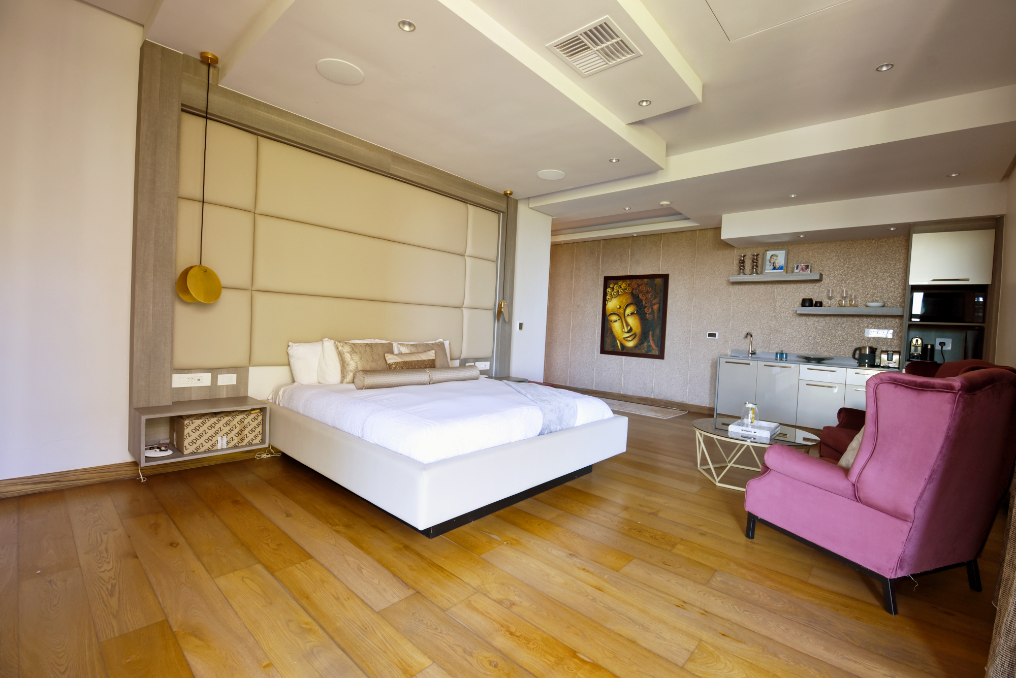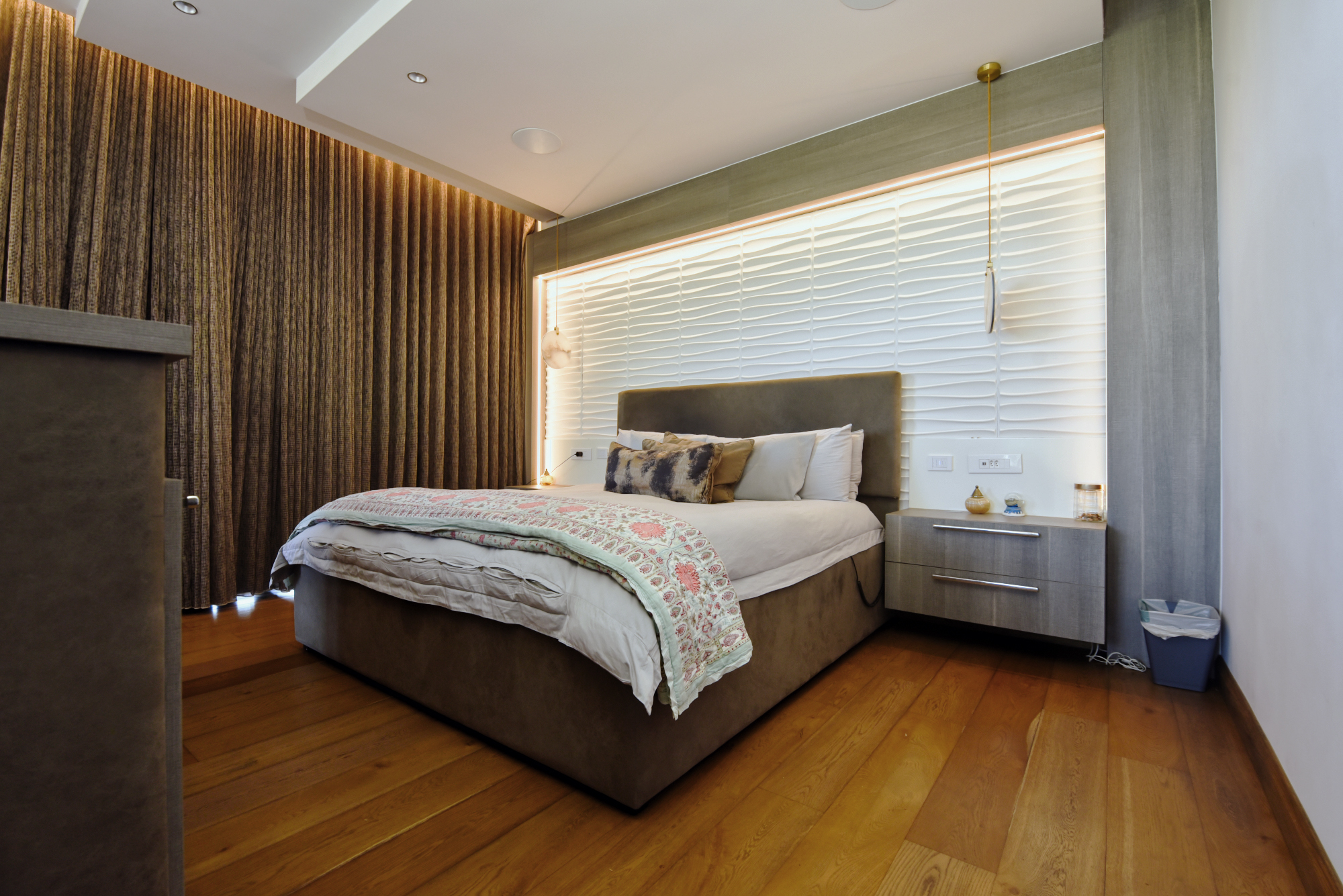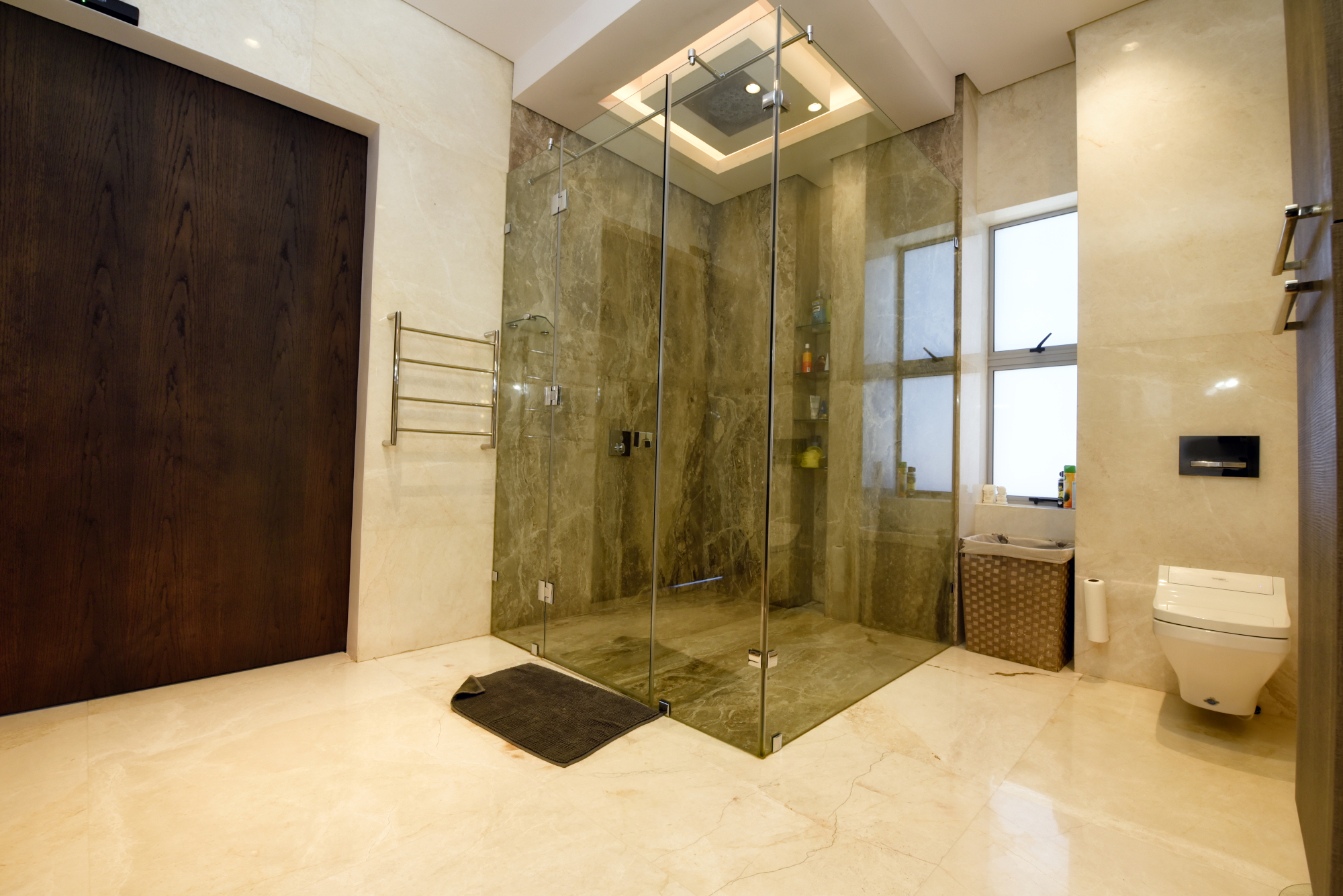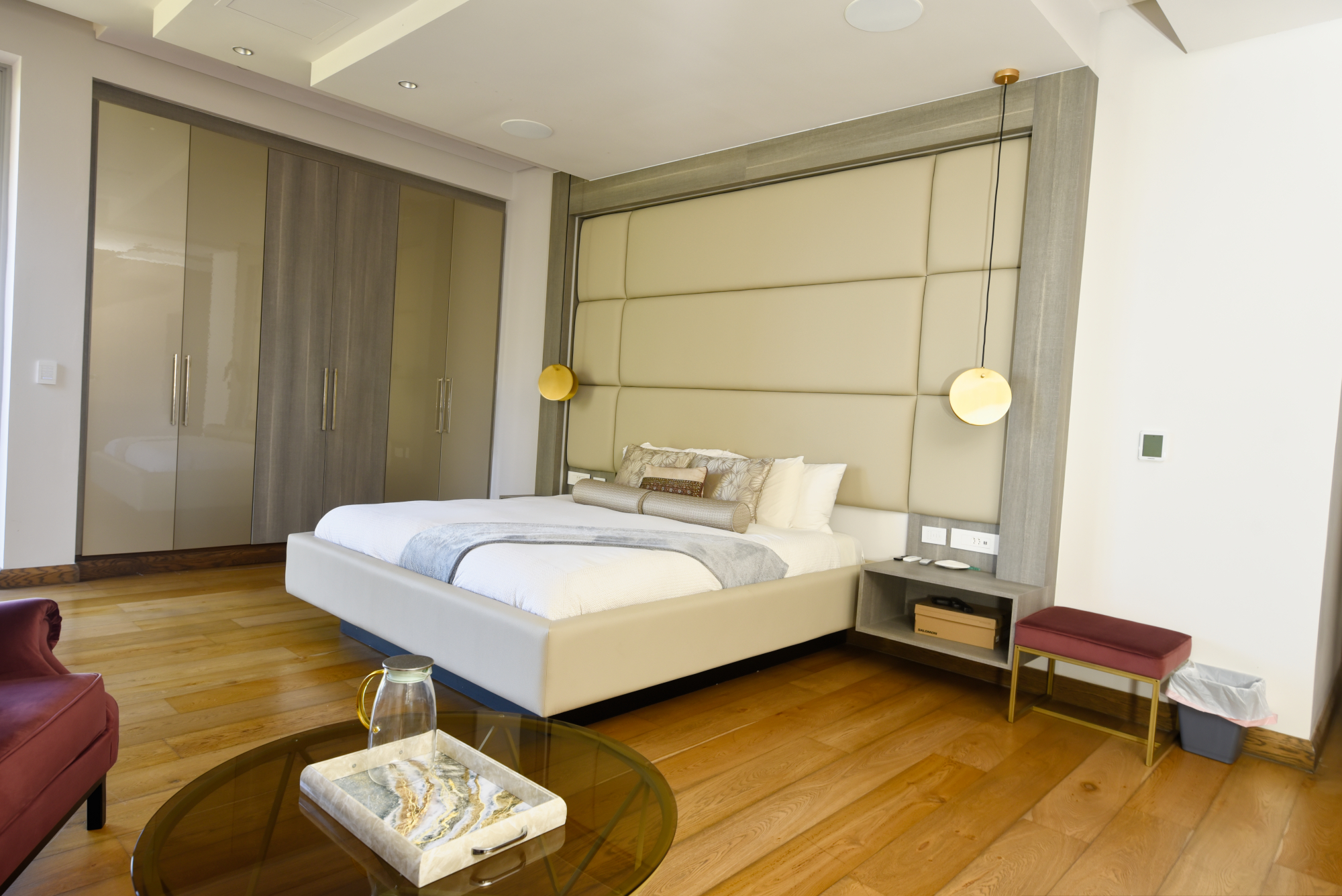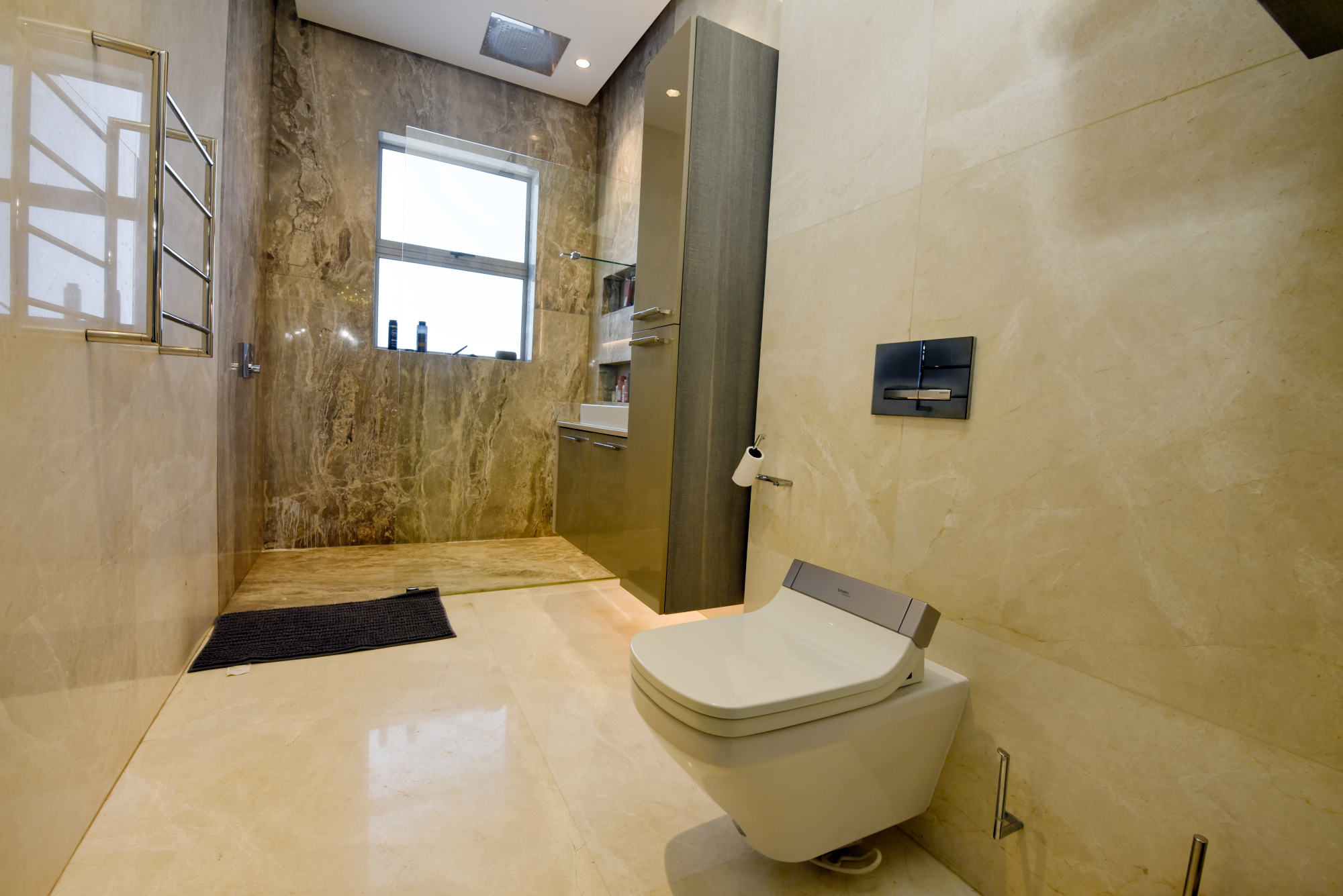 The middle level comprises 4 spacious bedrooms, one with its own separate entrance. The master bedroom is the star of the show with a large Hollywood style dressing room. Each bedroom has stunning super modern en suite bathrooms, as well as coffee/brunch stations with integrated bar fridges.