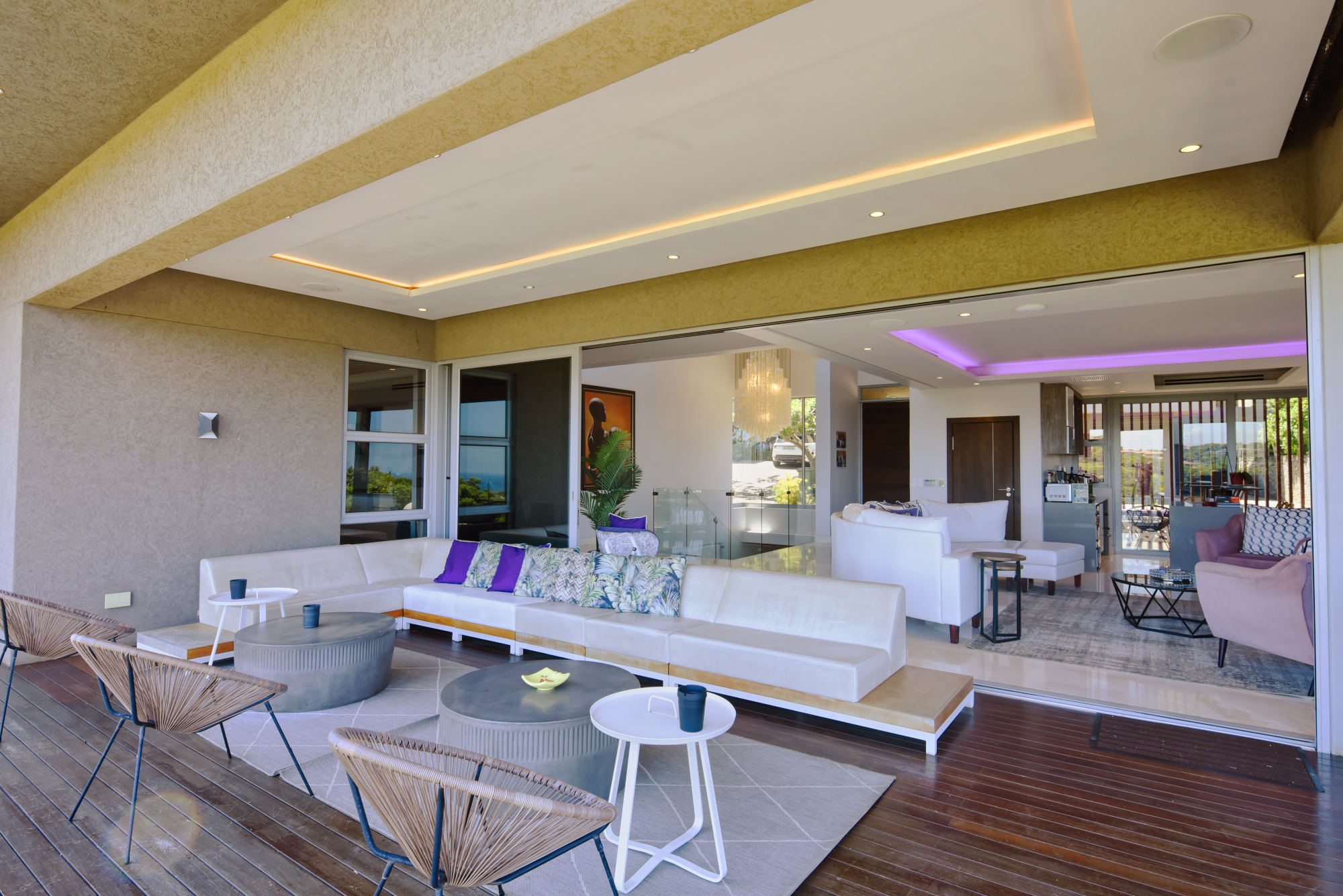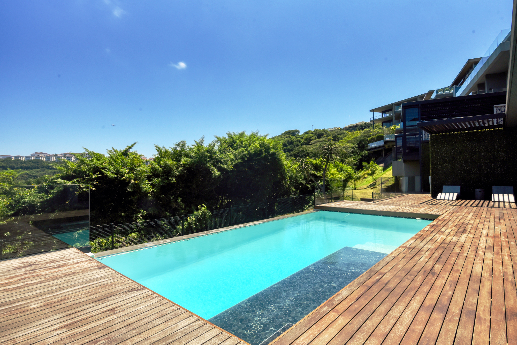 A landscaped garden is located below the pool area with direct access to the conservancy. A Fifth separate living area with en suite bathroom, patio, kitchen (fitted with Bosch appliances) and dressing area leads off the ground floor patio.