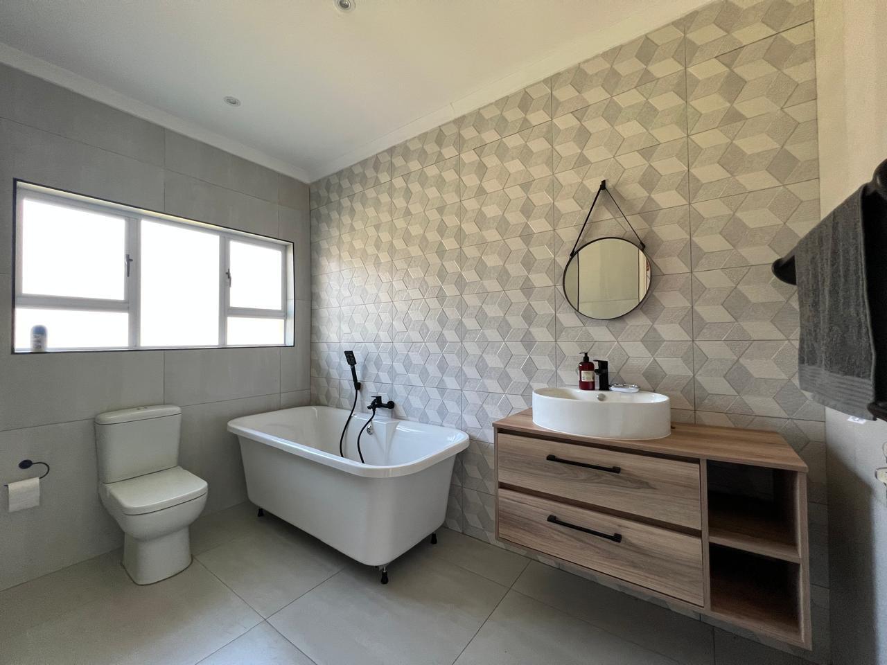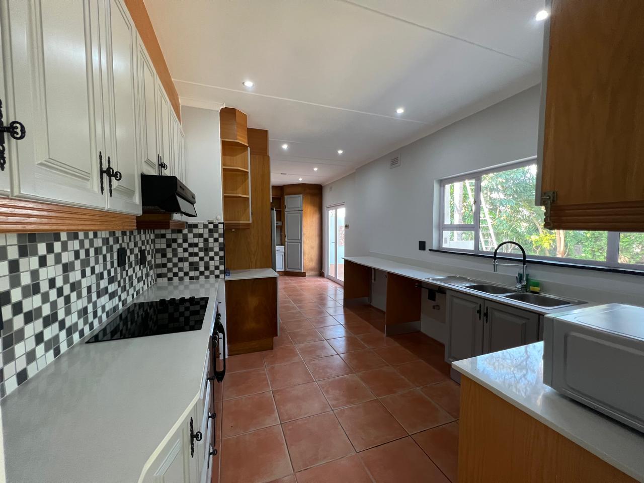 Set on a level stand, this spacious home has 4 bedrooms with 3 bathrooms. All have built in cupboards, the main is air conditioned with a full en suite bathroom. The 4th bedroom can be utilised as a flatlet or guest suite as it has a kitchenette and en suite bathroom with private access. The lounge and dining room open to a covered patio overlooking the low maintenance garden and pool area, perfect for all breeds of dogs. The kitchen is roomy and well fitted with an adjoining scullery.