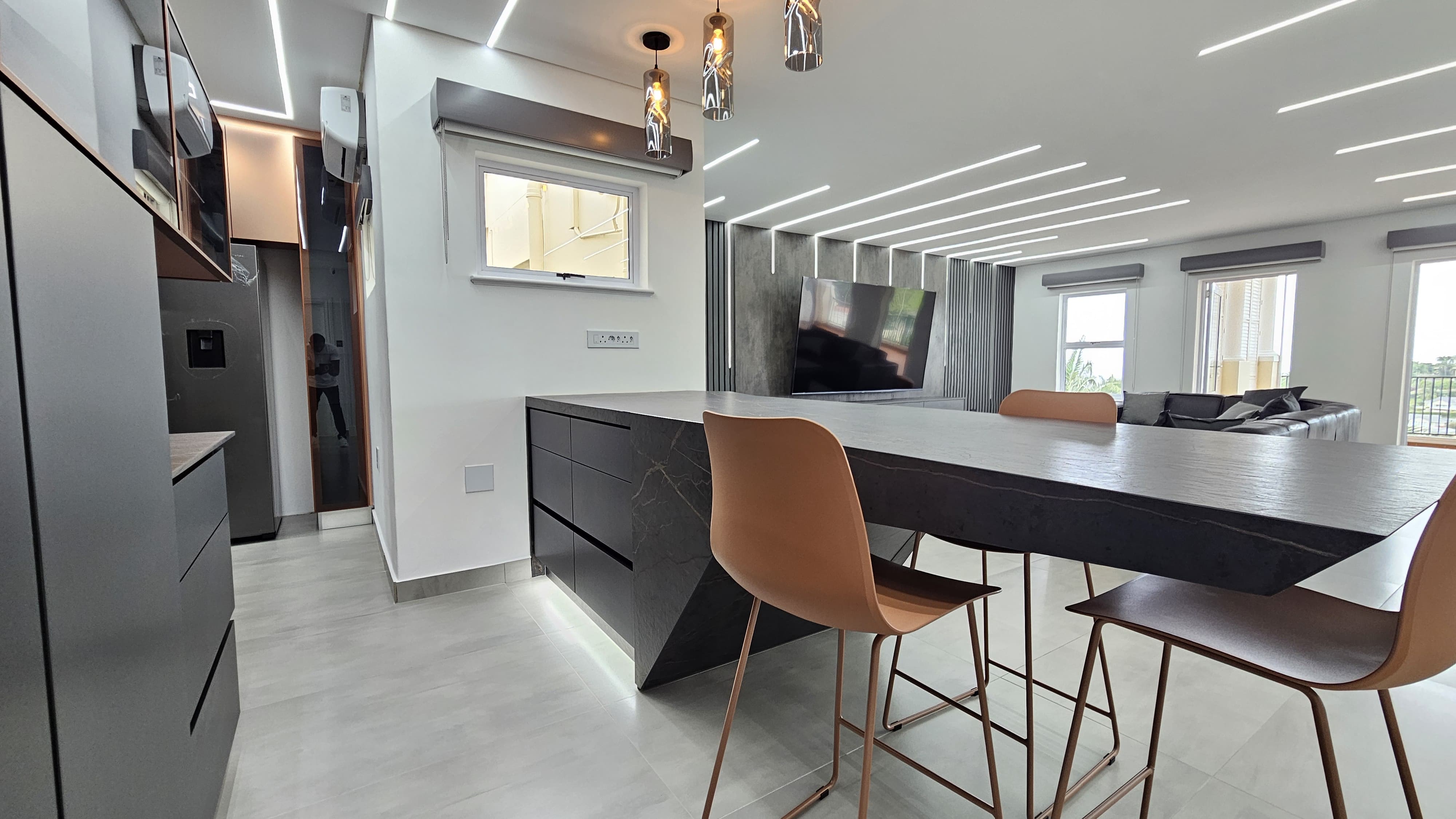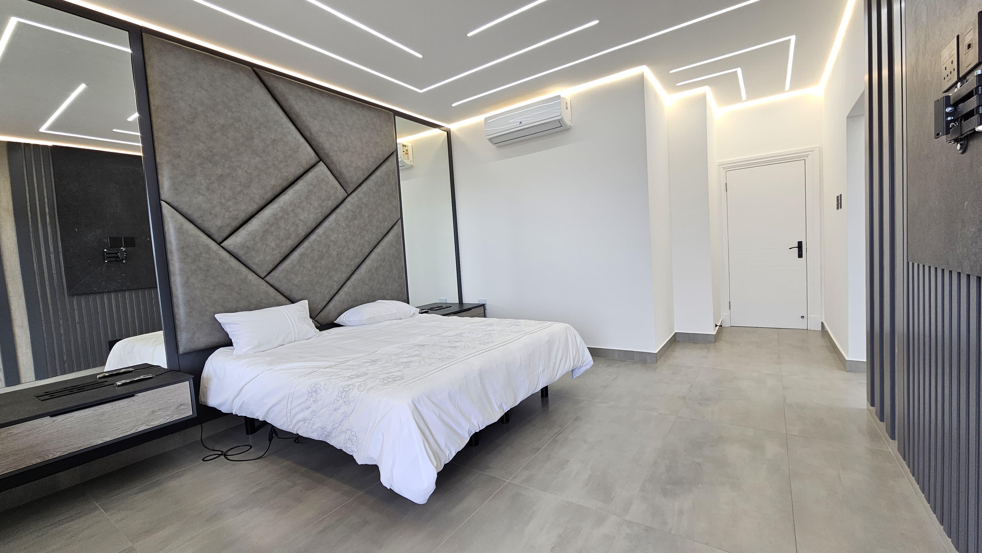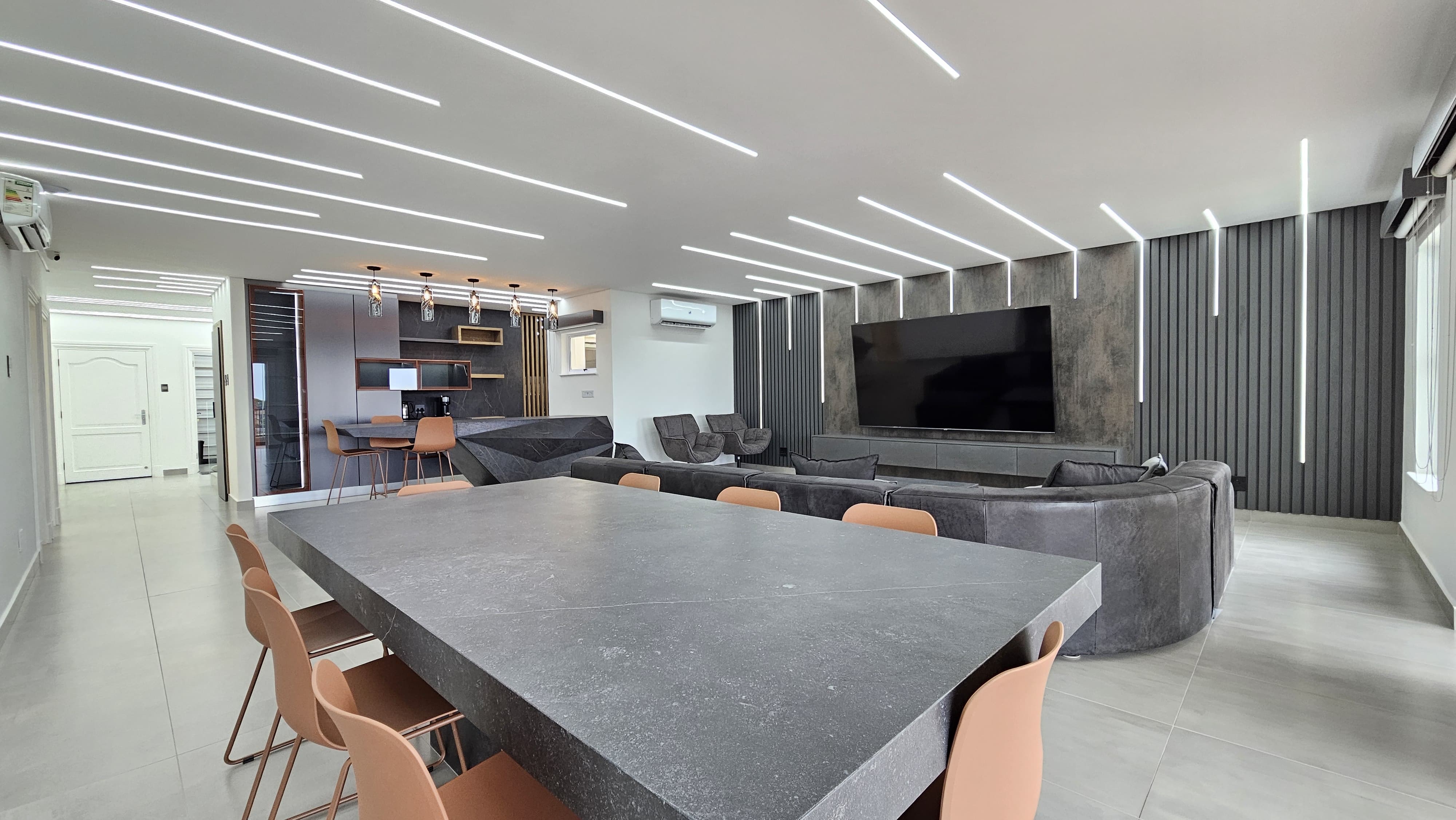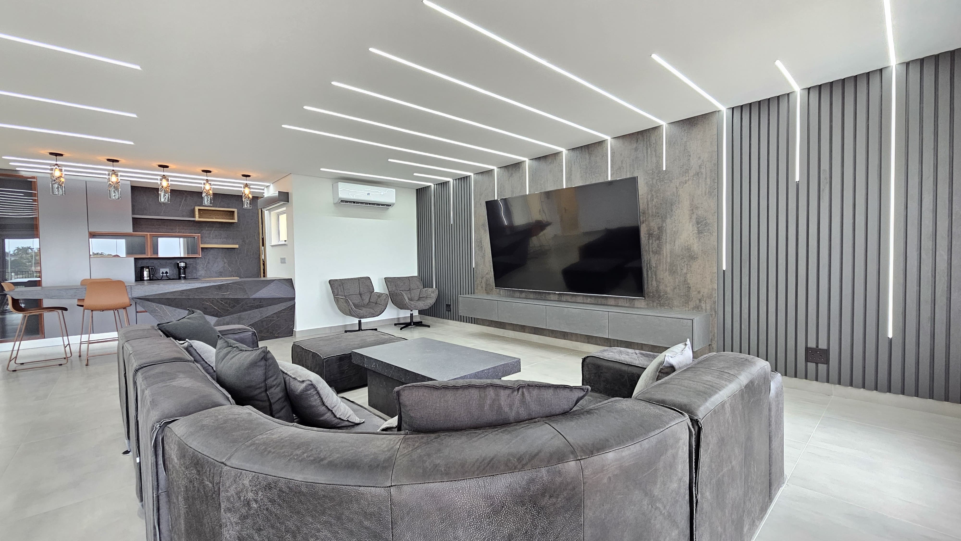 Designer lighting throughout, including mood lighting and app-controlled fixtures in selected areas.